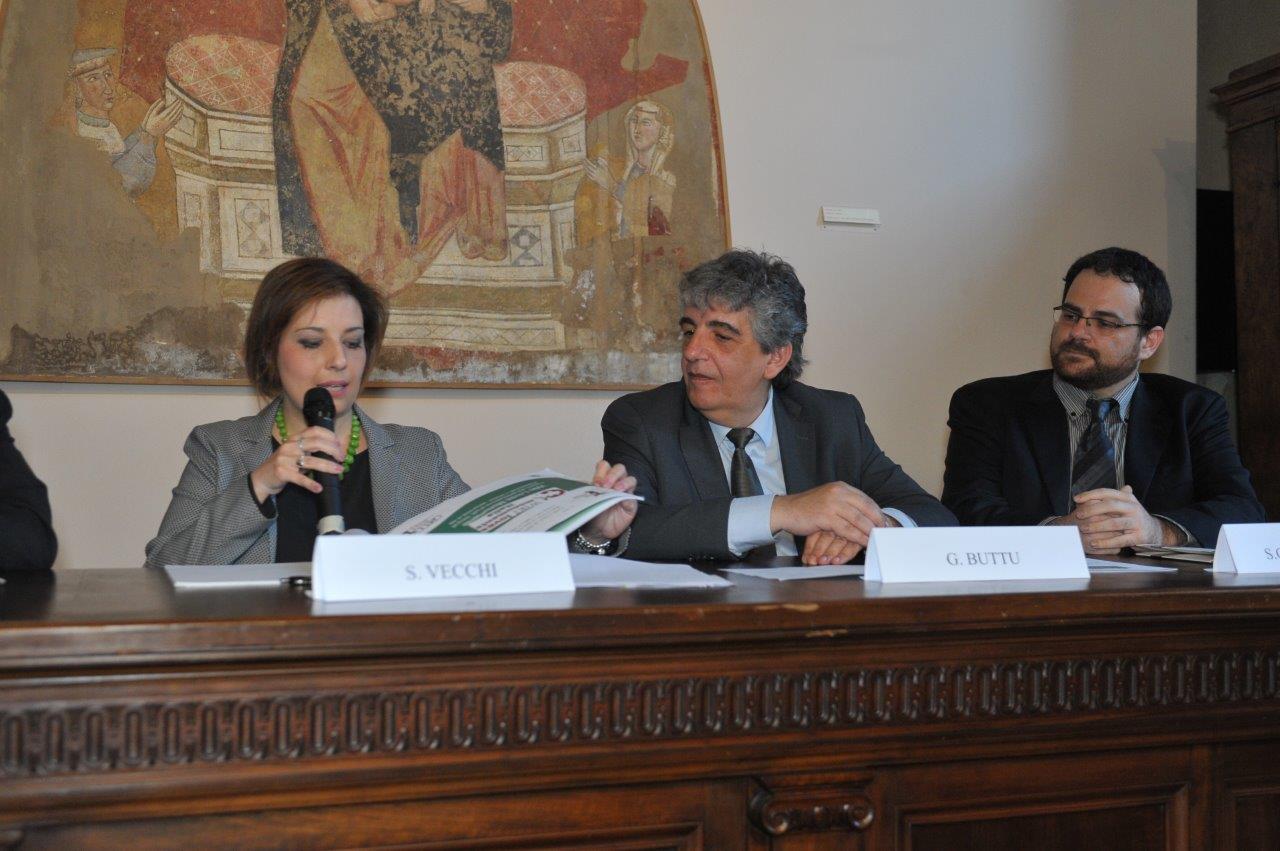 Ad illustrare il progetto, Saverio Giulio Malatesta, membro del direttivo nazionale di Wikimedia Italia, e il coordinatore regionale Sardegna Gianfranco Buttu.