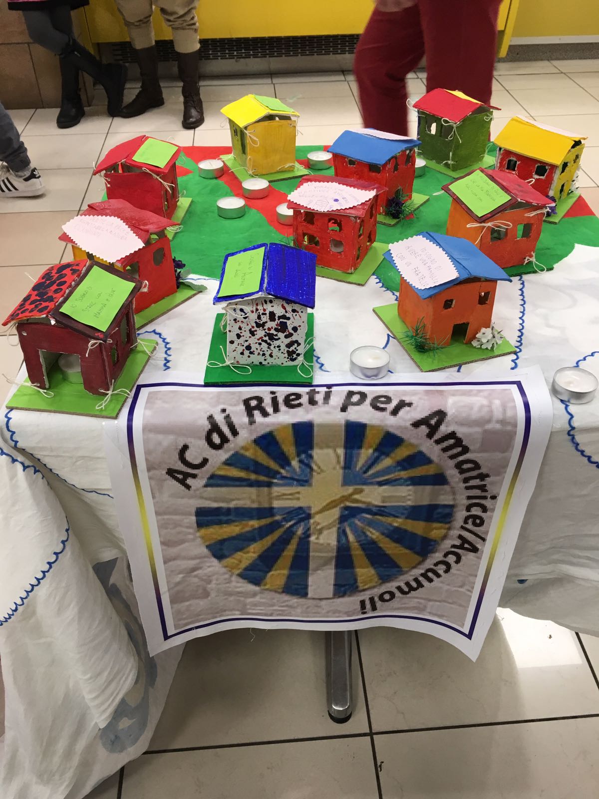 Nella giornata di domenica, una rappresentanza di bambini con alcuni educatori si è recata nei corridoi del centro commerciale Perseo per condividere con i passanti questa esperienza. E accanto allo striscione esposto, gli acierrini hanno proposto di acquistare le “casette” realizzate, in cambio di un’offerta da devolvere a favore del progetto che l’Azione Cattolica reatina sta lanciando in questi giorni a sostegno delle zone terremotate: “l’adozione” a una cooperativa di allevatori di Illica, quale segno di solidarietà verso un territorio che ha bisogno di ripartire dopo un disastro che ha azzerato anche la piccola economia.