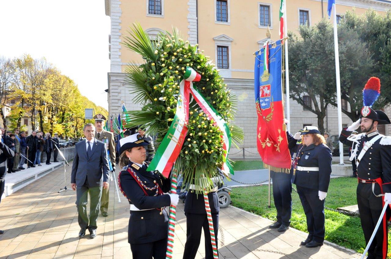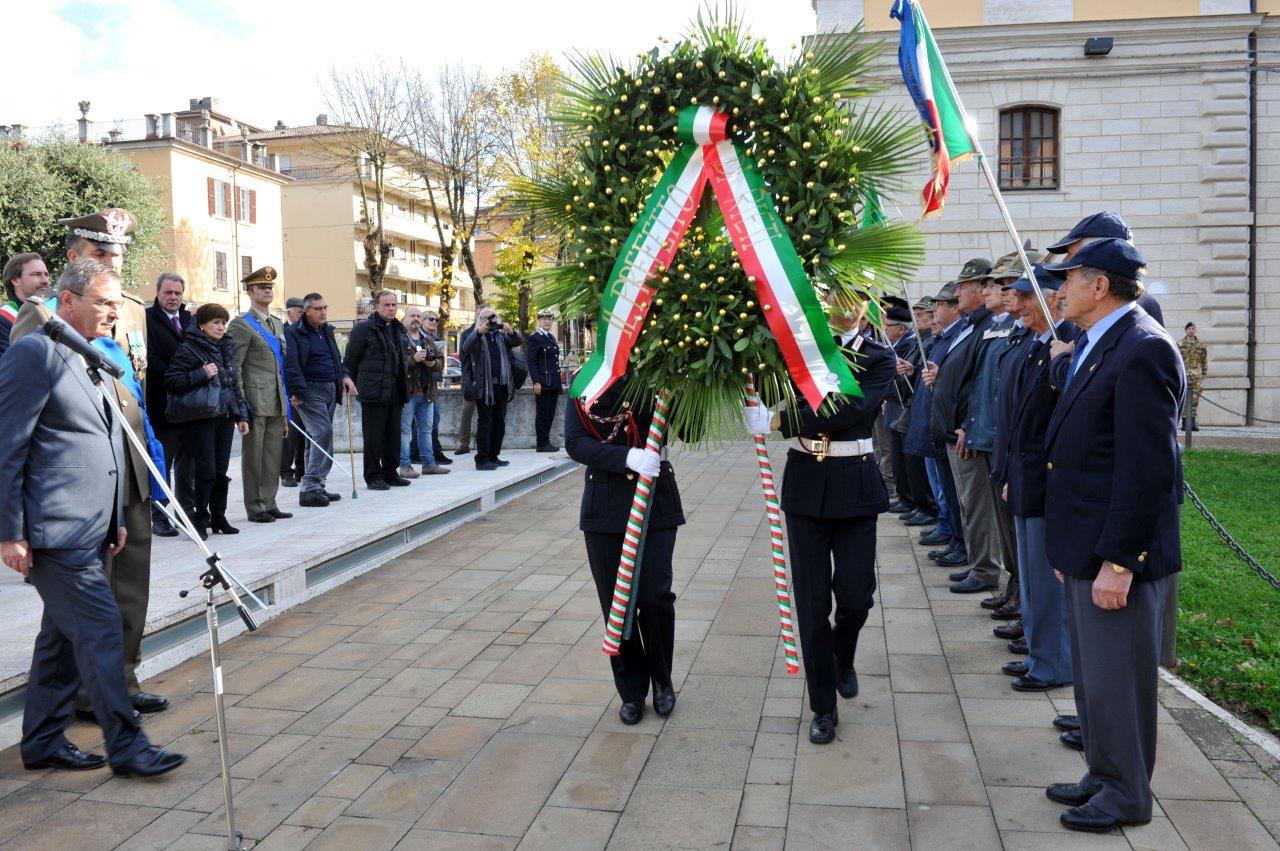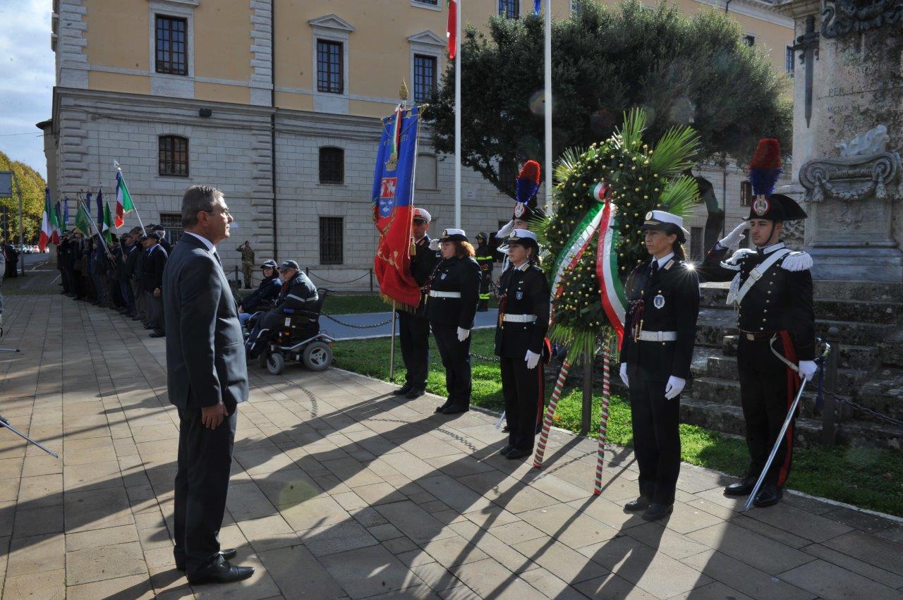 Le celebrazioni del 4 novembre, a Rieti, si sono svolte in piazza Mazzini, alla presenza delle massime Autorità civili, militari e religiose. Di fronte al Monumento ai Caduti, anche i rappresentanti della Provincia e dei Comuni di Rieti e Poggio Bustone con i gonfaloni, e delle Associazioni Combattentistiche e d’Arma.