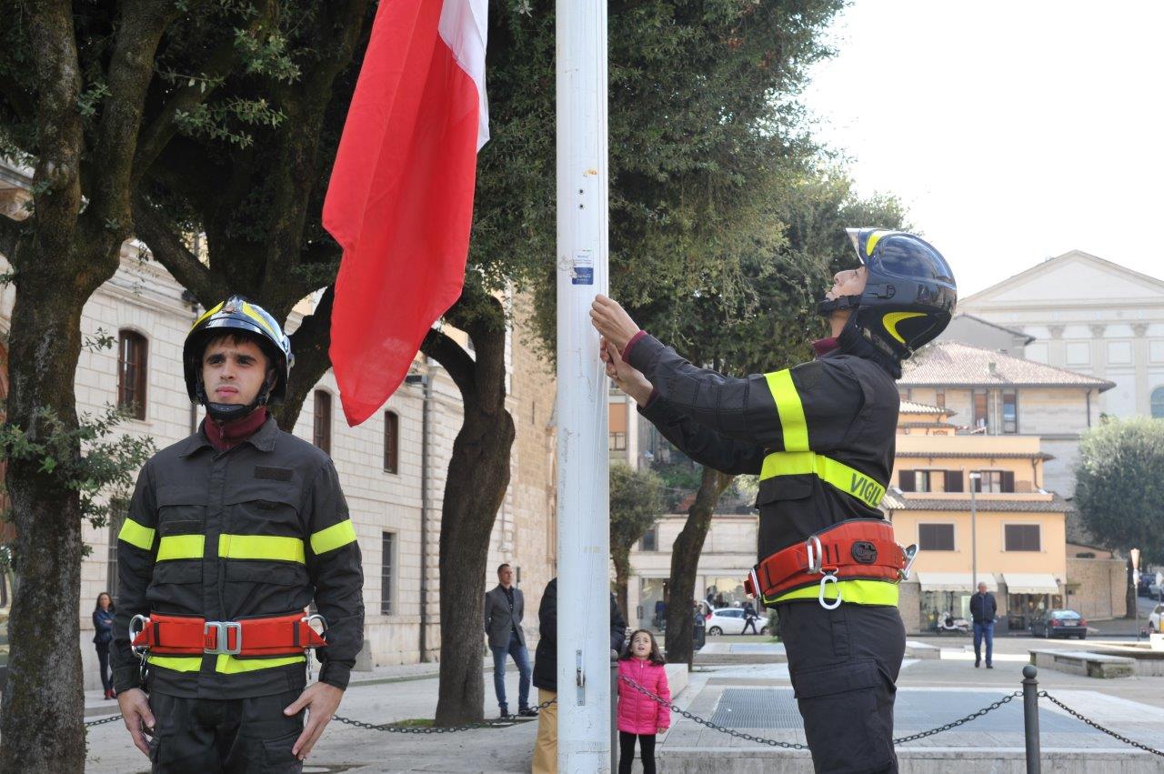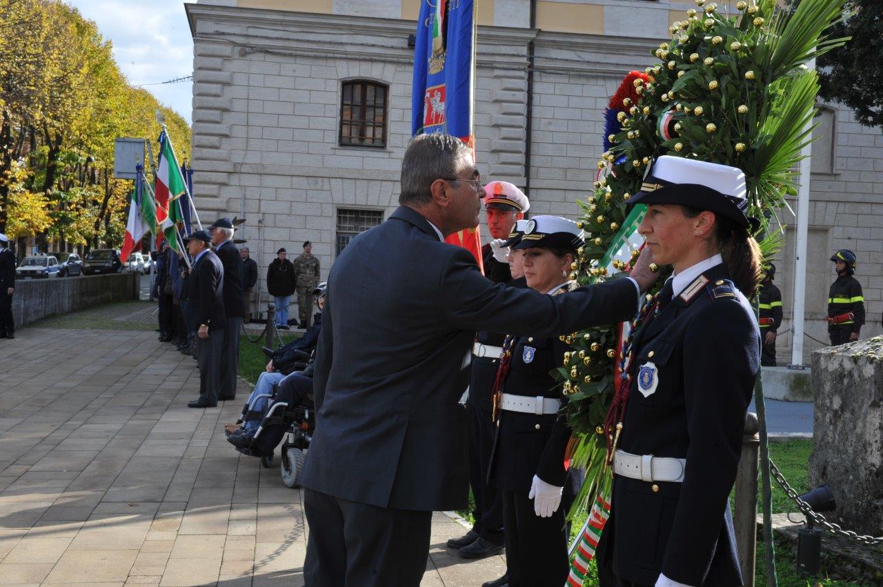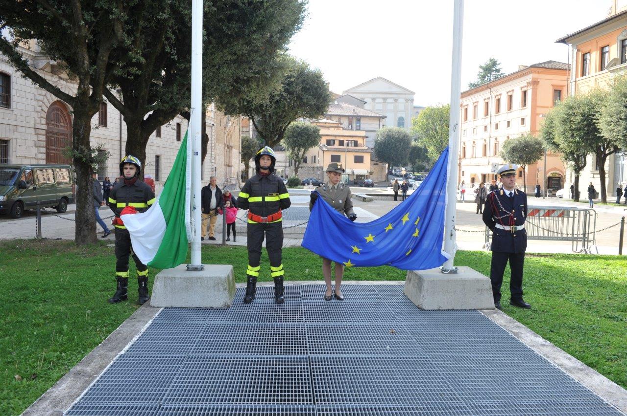 Le celebrazioni del 4 novembre, a Rieti, si sono svolte in piazza Mazzini, alla presenza delle massime Autorità civili, militari e religiose. Di fronte al Monumento ai Caduti, anche i rappresentanti della Provincia e dei Comuni di Rieti e Poggio Bustone con i gonfaloni, e delle Associazioni Combattentistiche e d’Arma.