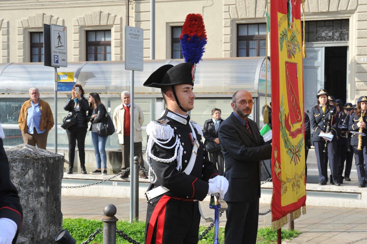 Il cerimoniale ha previsto la consueta cerimonia dell’Alzabandiera, con la deposizione di una corona presso il Monumento ai Caduti. Durante la cerimonia sono sati eseguiti dalla Banda di Lisciano gli inni nazionale ed europeo.