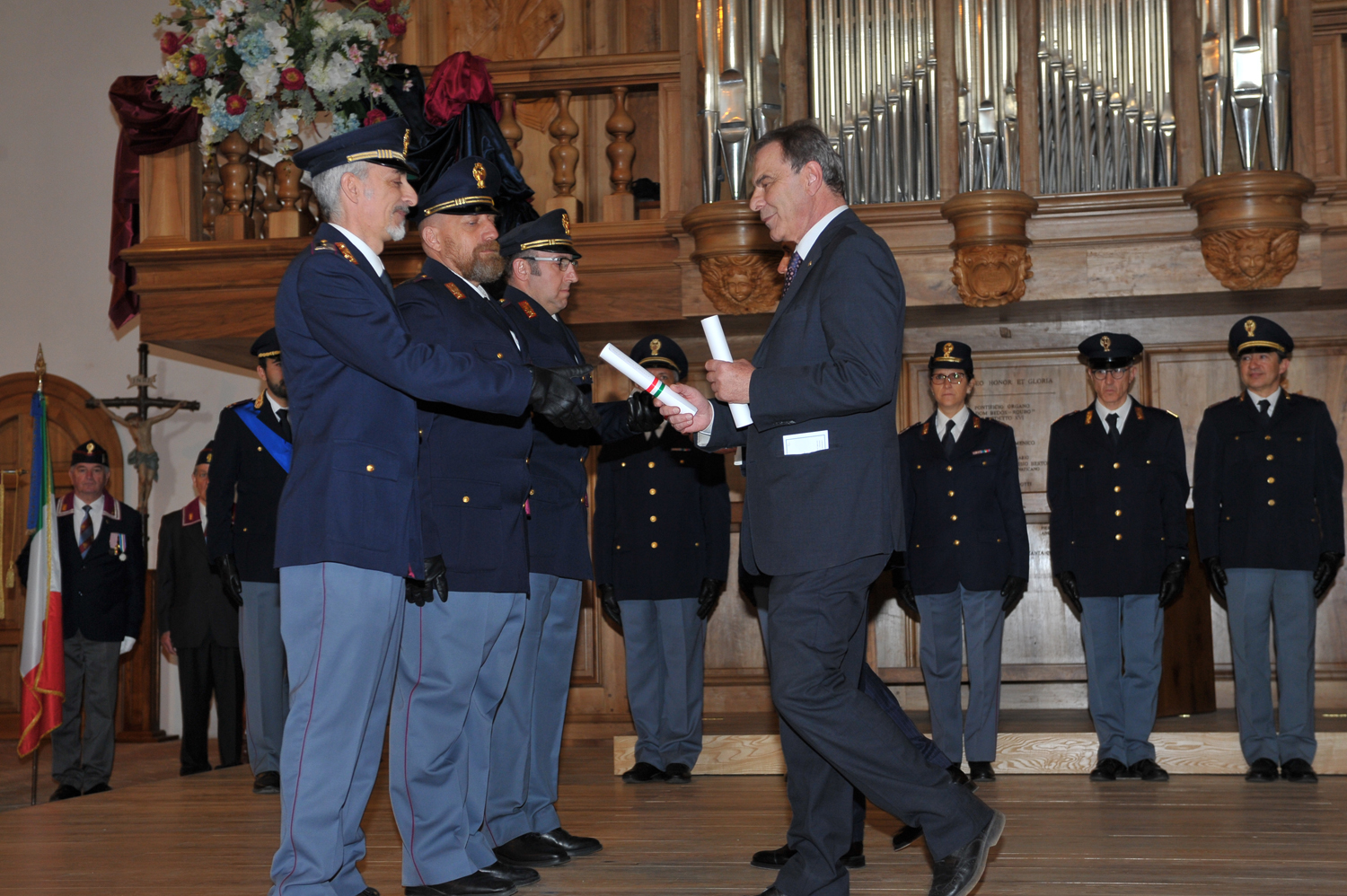 È al suono dell’organo Dom Bedos-Roubo che la Polizia di Stato ha festeggiato nella chiesa reatina di San Domenico il 166° Anniversario della Fondazione. Una manifestazione che ha coinvolto tutte le forze dell’ordine e le rappresentanze istituzionali, ma anche la cittadinanza e le scuole, con i bambini che non hanno mancato di lasciarsi affascinare dai moderni dispositivi investigativi della Polizia Scientifica e dalla piccola ma significativa mostra dei veicoli della Polizia di Stato, anche di interesse storico, appositamente fatti arrivare dal Museo Storico della Polizia di Stato di Roma.