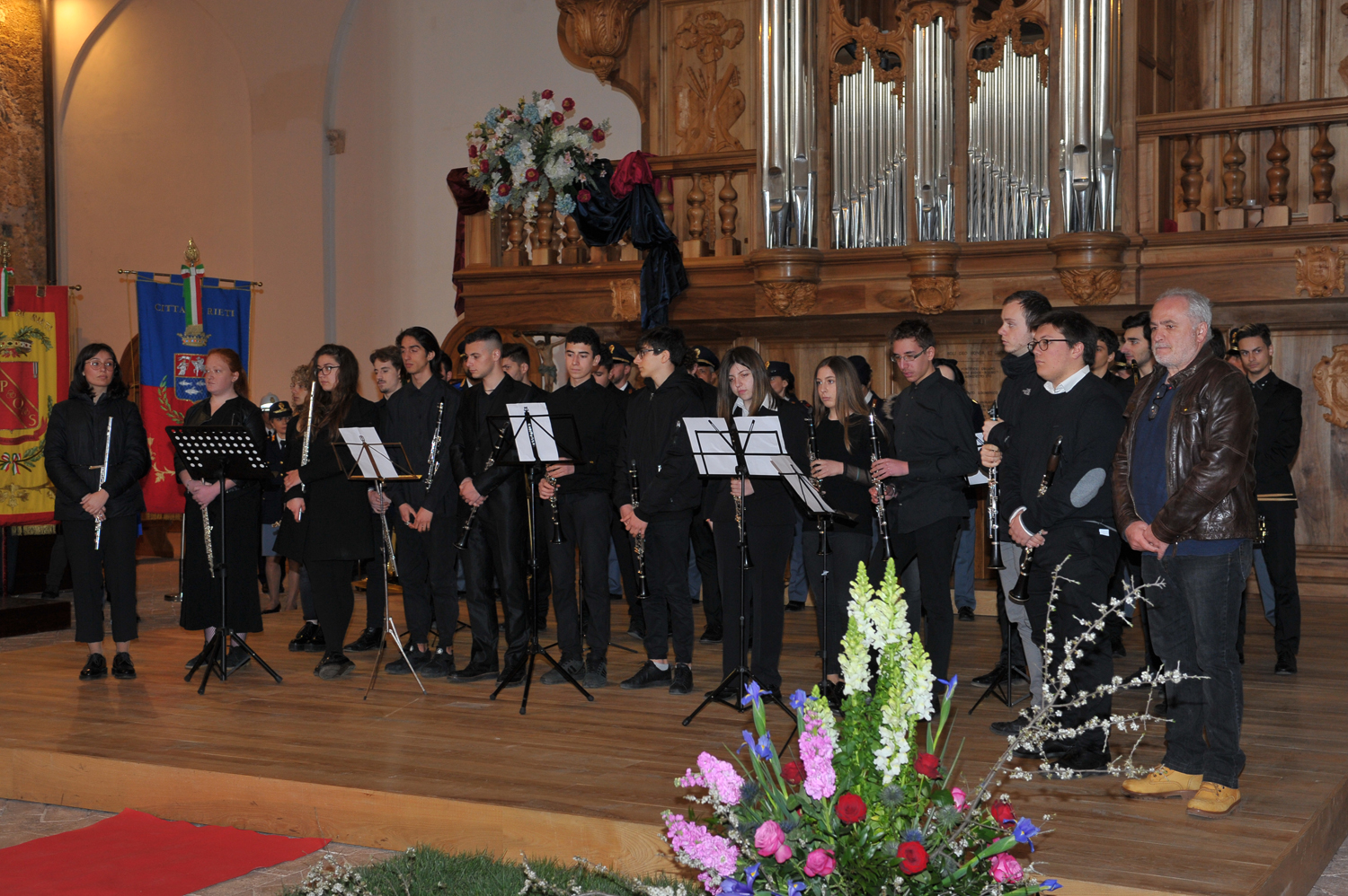 A far risuonare in San Domenico le note dell’organo monumentale è stato il Maestro reatino Paolo Paniconi, chiamato ad eseguire alcuni brani musicali accompagnando il canto del soprano Lucia Casagrande Raffi. L’Inno nazionale è stato invece affidato agli studenti del Liceo Musicale Elena Principessa di Napoli di Rieti.