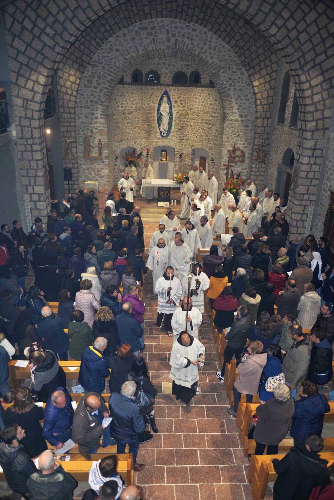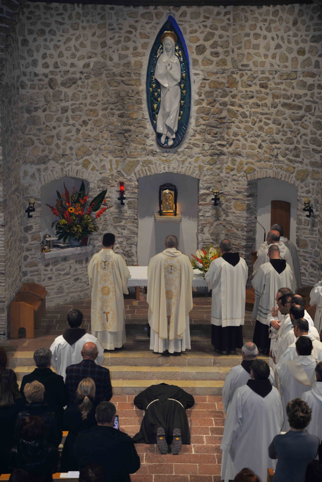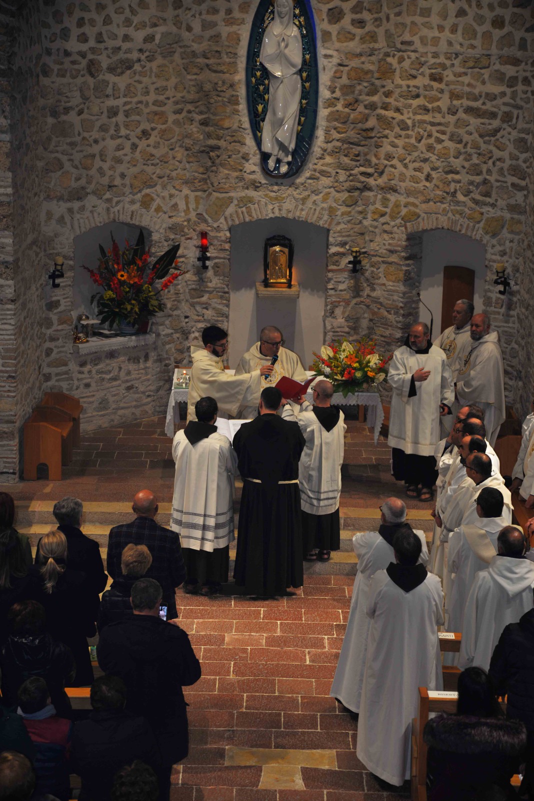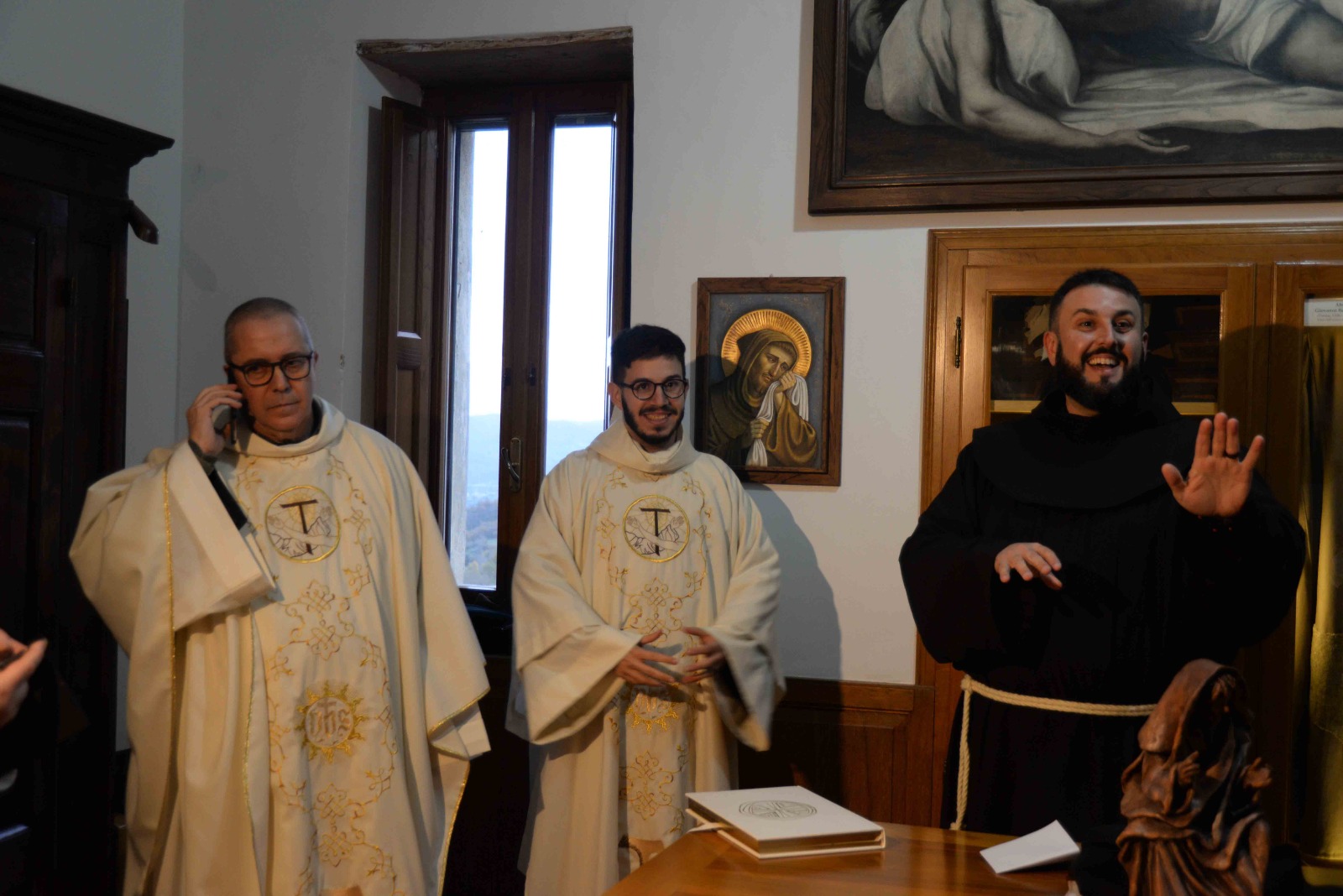 La passione per l’arte e la recitazione lo ha portato anche a vestire i panni di frate Leone nel musical Francesco e i suoi frati di fra Renzo Cocchi, più volte rappresentato anche a Rieti (l’ultima a San Domenico in occasione del festival francescano di ottobre). Leone era il frate più vicino a san Francesco. E l’immaginetta a ricordo della sua professione, che riproduce un dipinto di Casentini che si trova al santuario di Poggio Bustone, raffigura proprio il santo con frate Leone. Pensando a lui, che assieme a Rufino e Angelo si ritrovarono, dice la Leggenda dei tre compagni, a Greccio per rievocari i passi del Serafico Padre, si è disteso, sabato pomeriggio, nella chiesa dell’Immacolata del santuario grecciano, nell’invocare la benedizione del Signore sulla sua scelta di definitiva consacrazione religiosa. Benedizione che gli è stata impartita dal padre provinciale, Luigi Recchia, durante la Messa solenne concelebrata da tanti confratelli francescani e anche diversi sacerdoti del clero di Frosinone-Veroli-Ferentino, la sua diocesi di origine. Domenica Francesco spera di essere di nuovo lì, ad accogliere il Successore di Pietro nella sua seconda visita al santuario che parla di quella profonda umanità di Gesù così cara all’alter Christus che fu il santo di Assisi.
