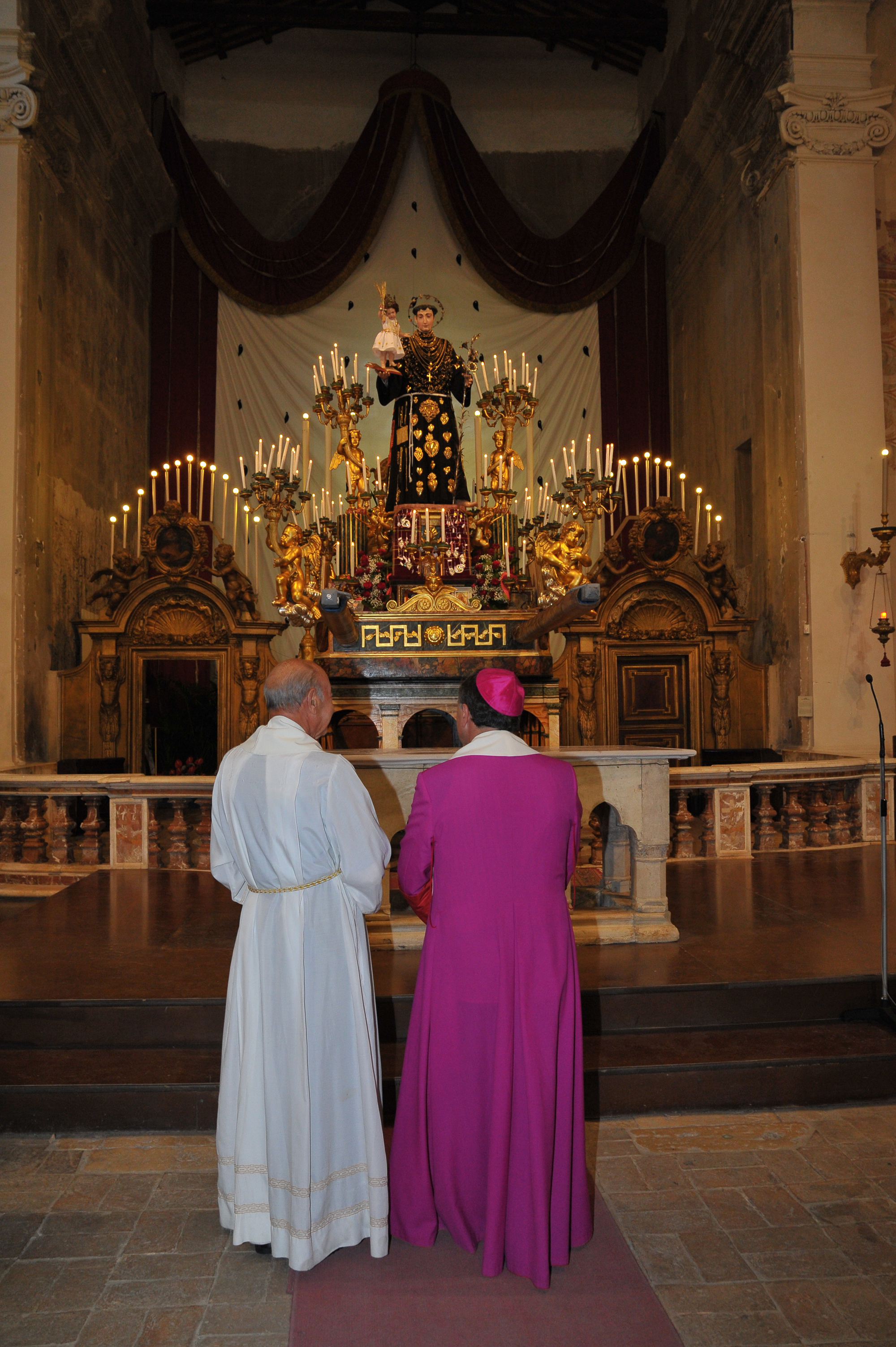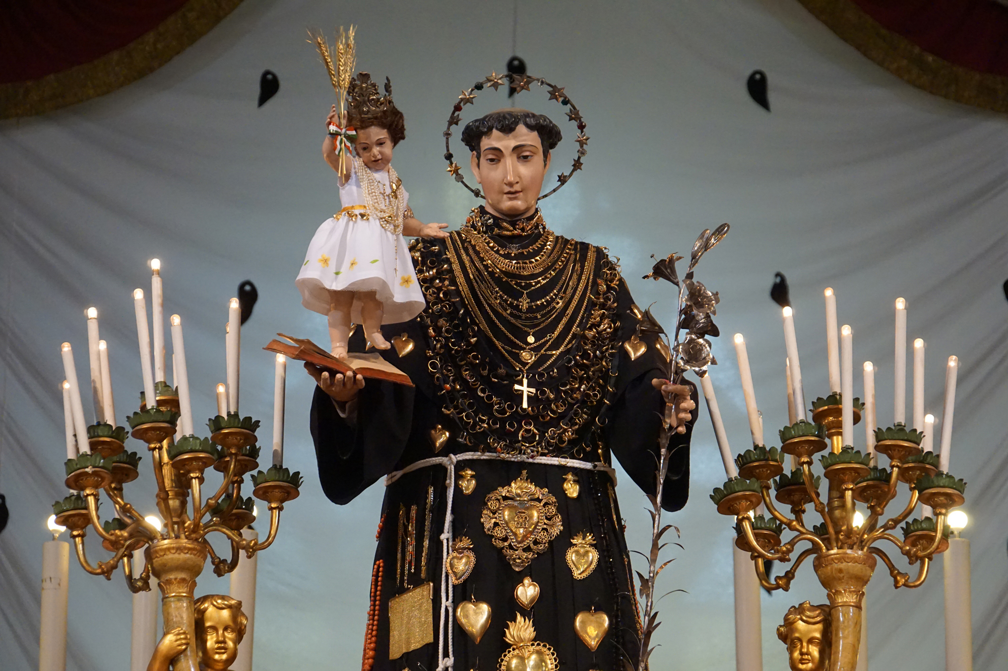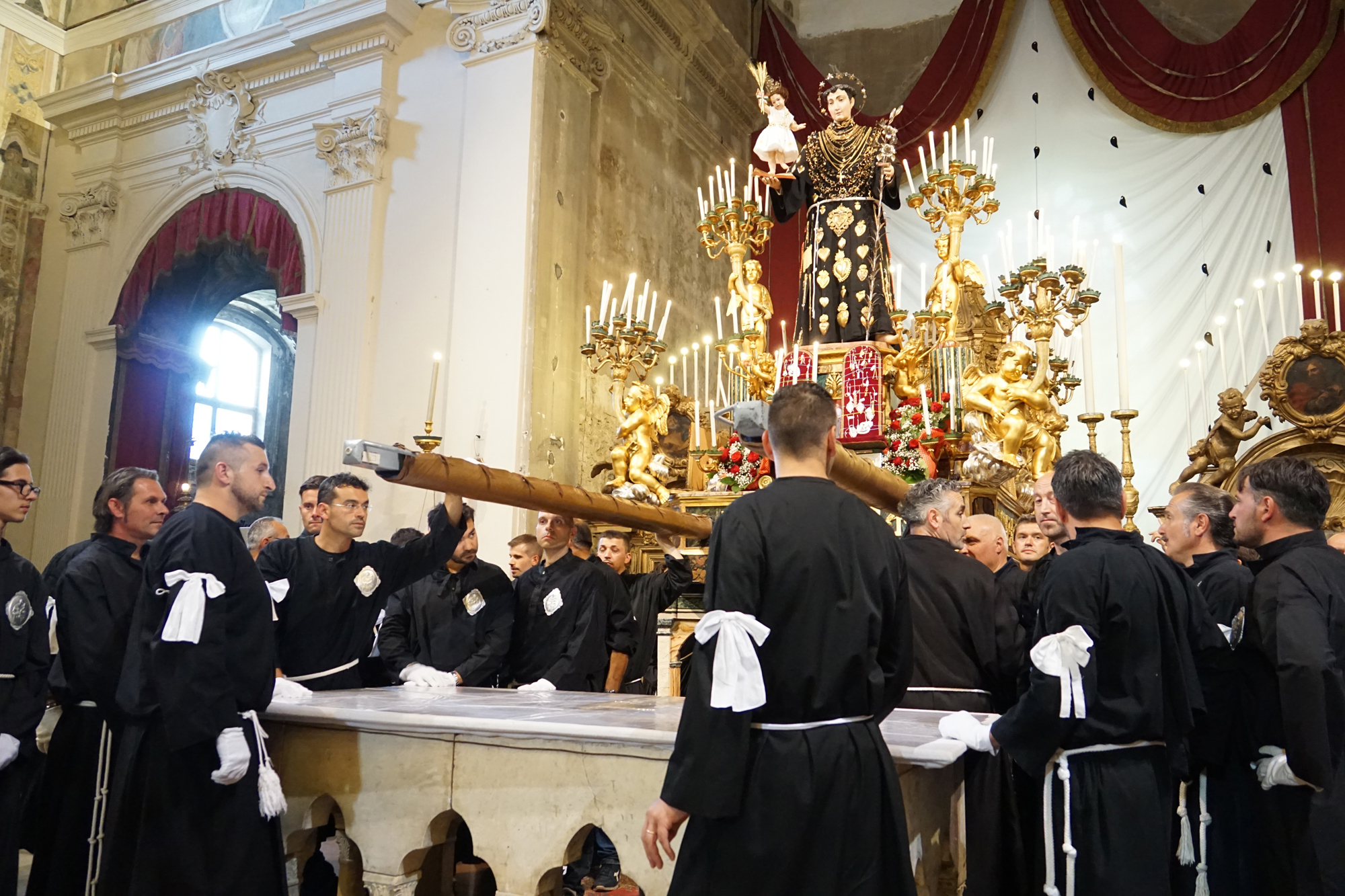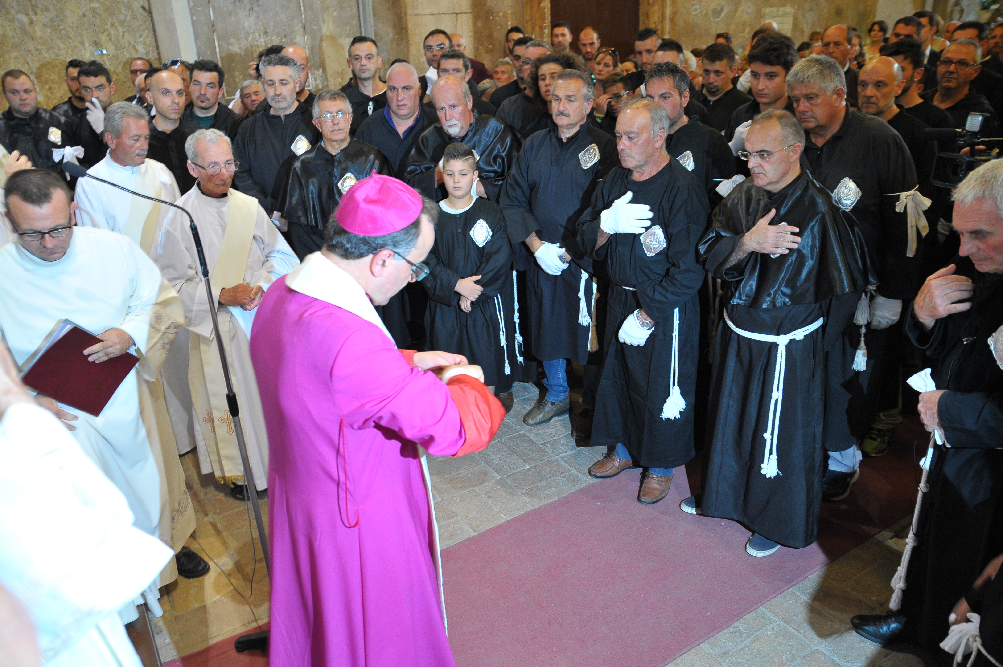 È stato guidato dal vescovo Domenico il momento della benedizione dei portatori, gli uomini della Pia Unione Sant’Antonio di Padova che ogni anno vengono estratti per portare a spalla, divisi in quattro squadre di 16 elementi ciascuna, la statua del Santo dei miracoli.