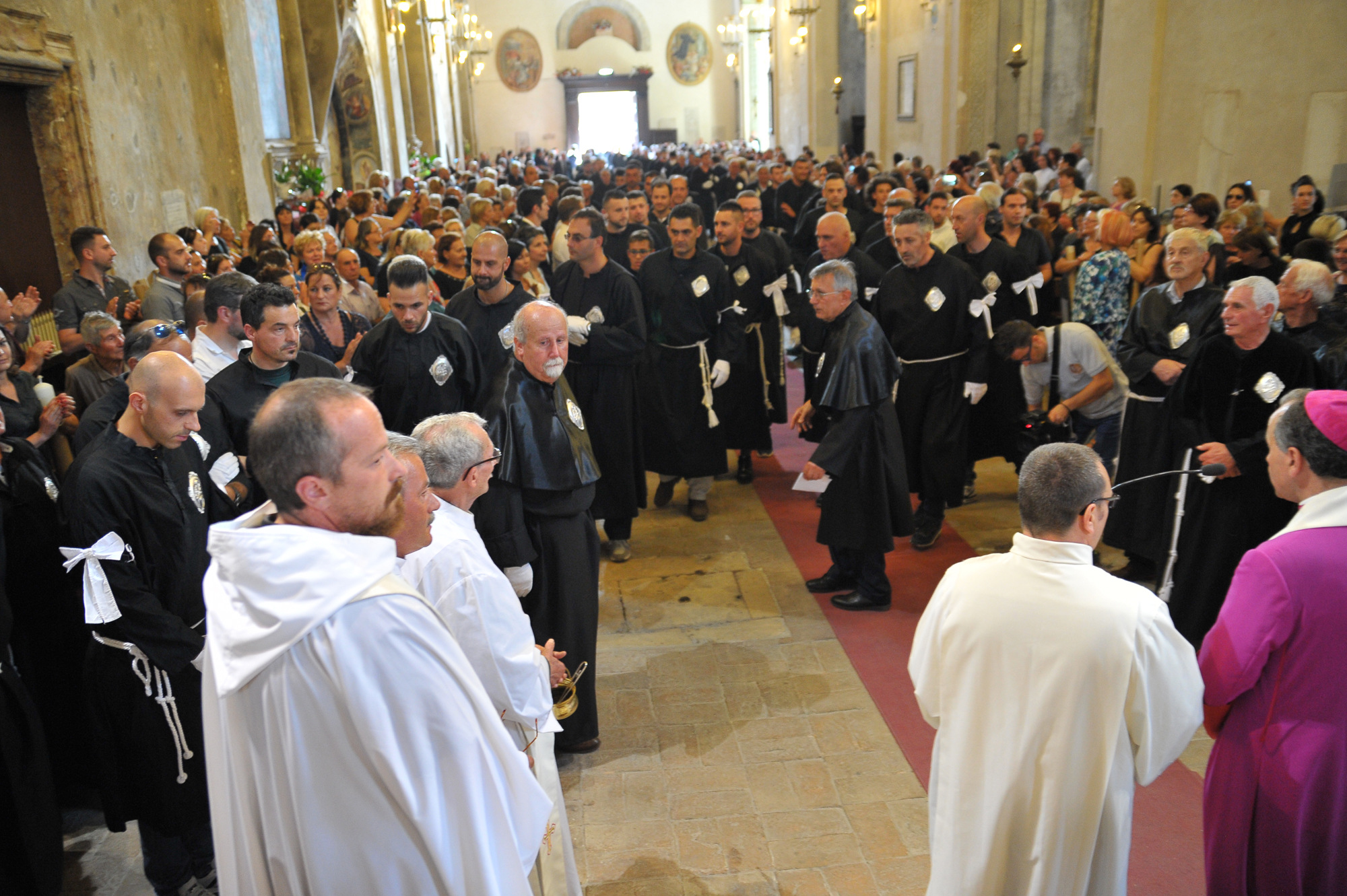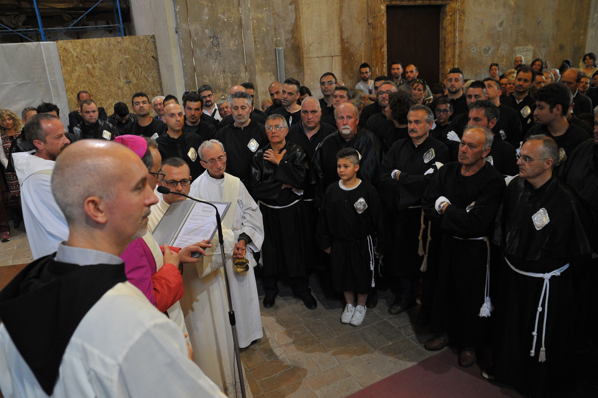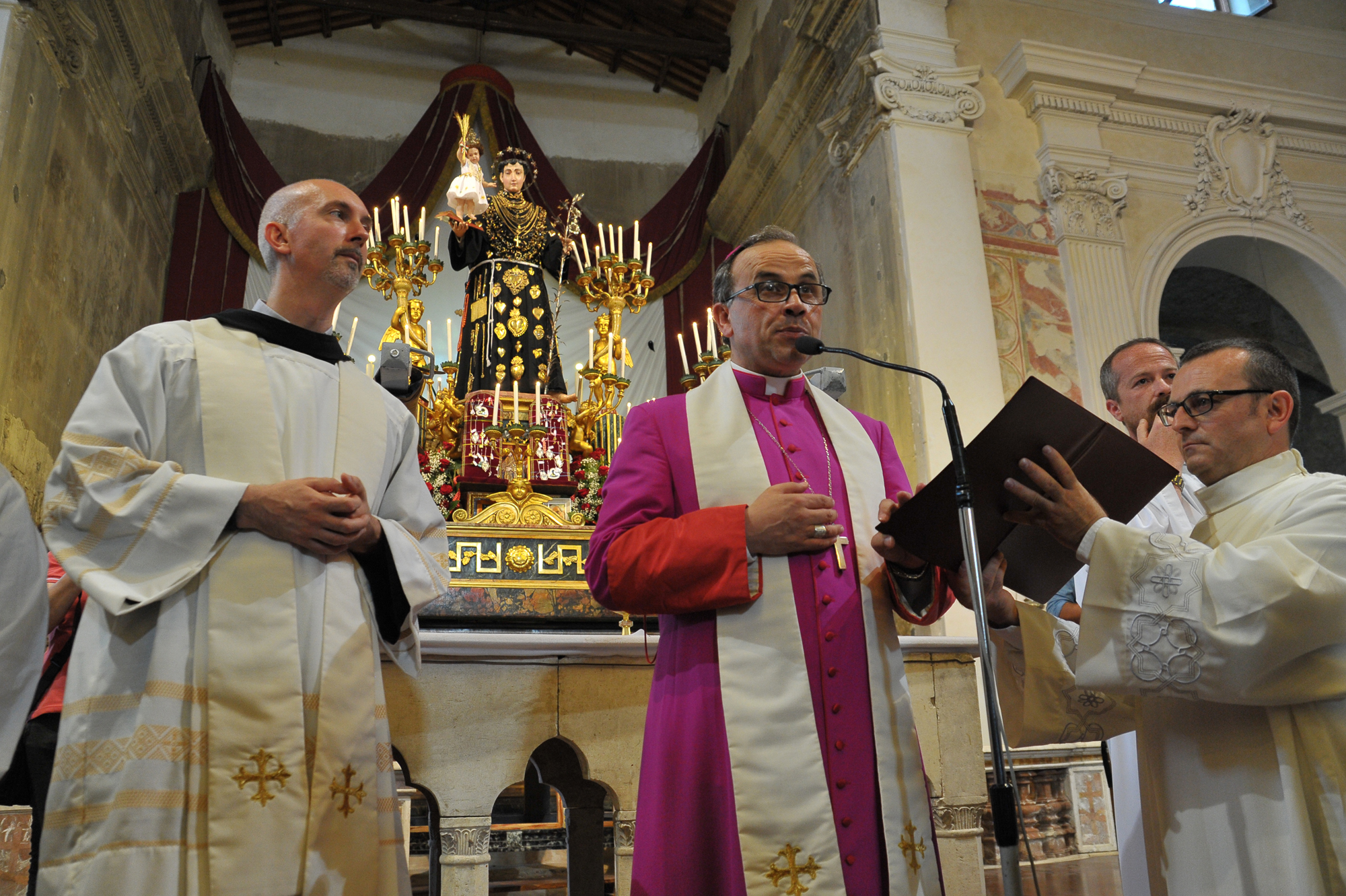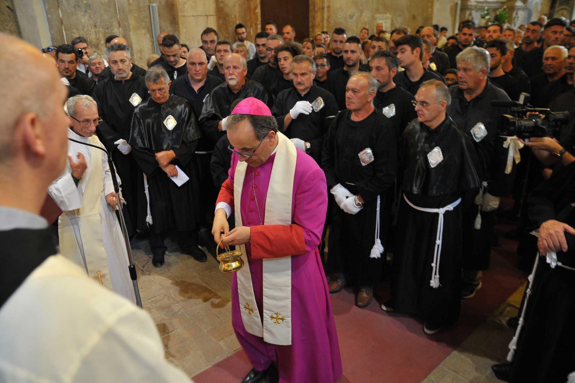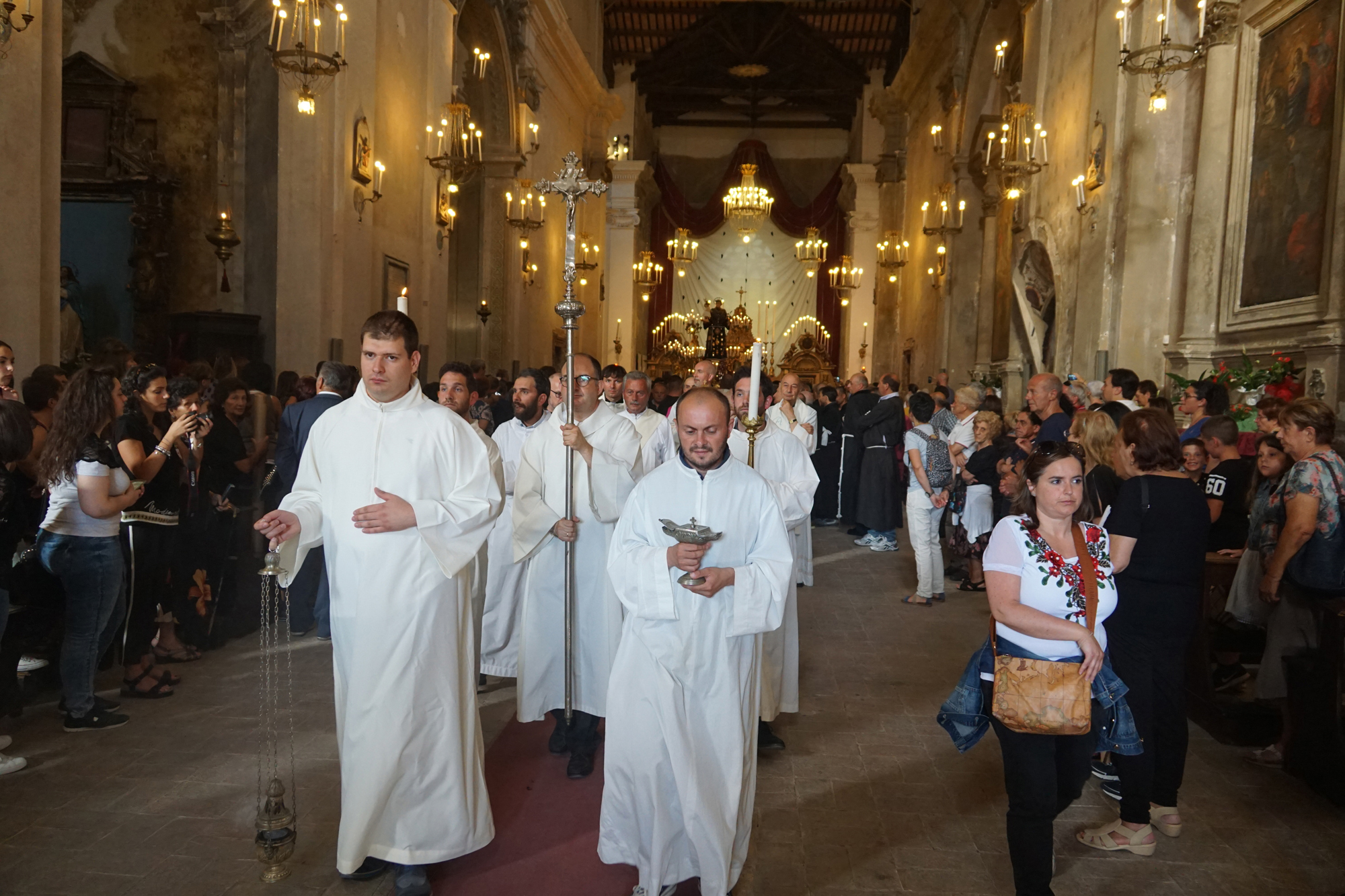 È stato guidato dal vescovo Domenico il momento della benedizione dei portatori, gli uomini della Pia Unione Sant’Antonio di Padova che ogni anno vengono estratti per portare a spalla, divisi in quattro squadre di 16 elementi ciascuna, la statua del Santo dei miracoli.