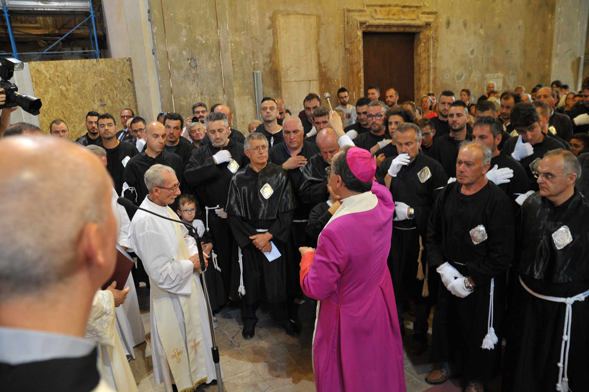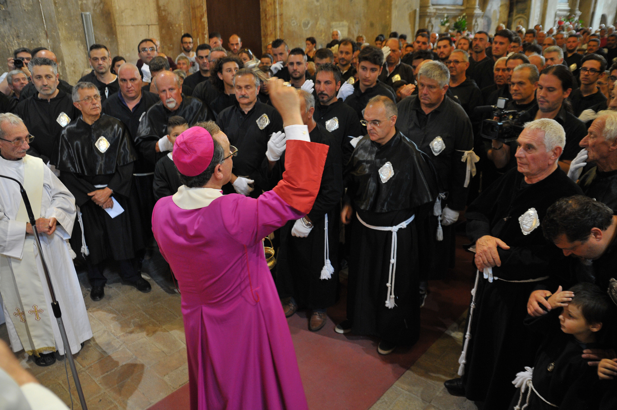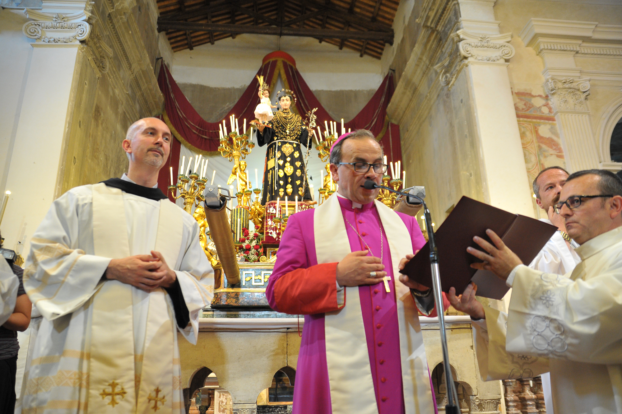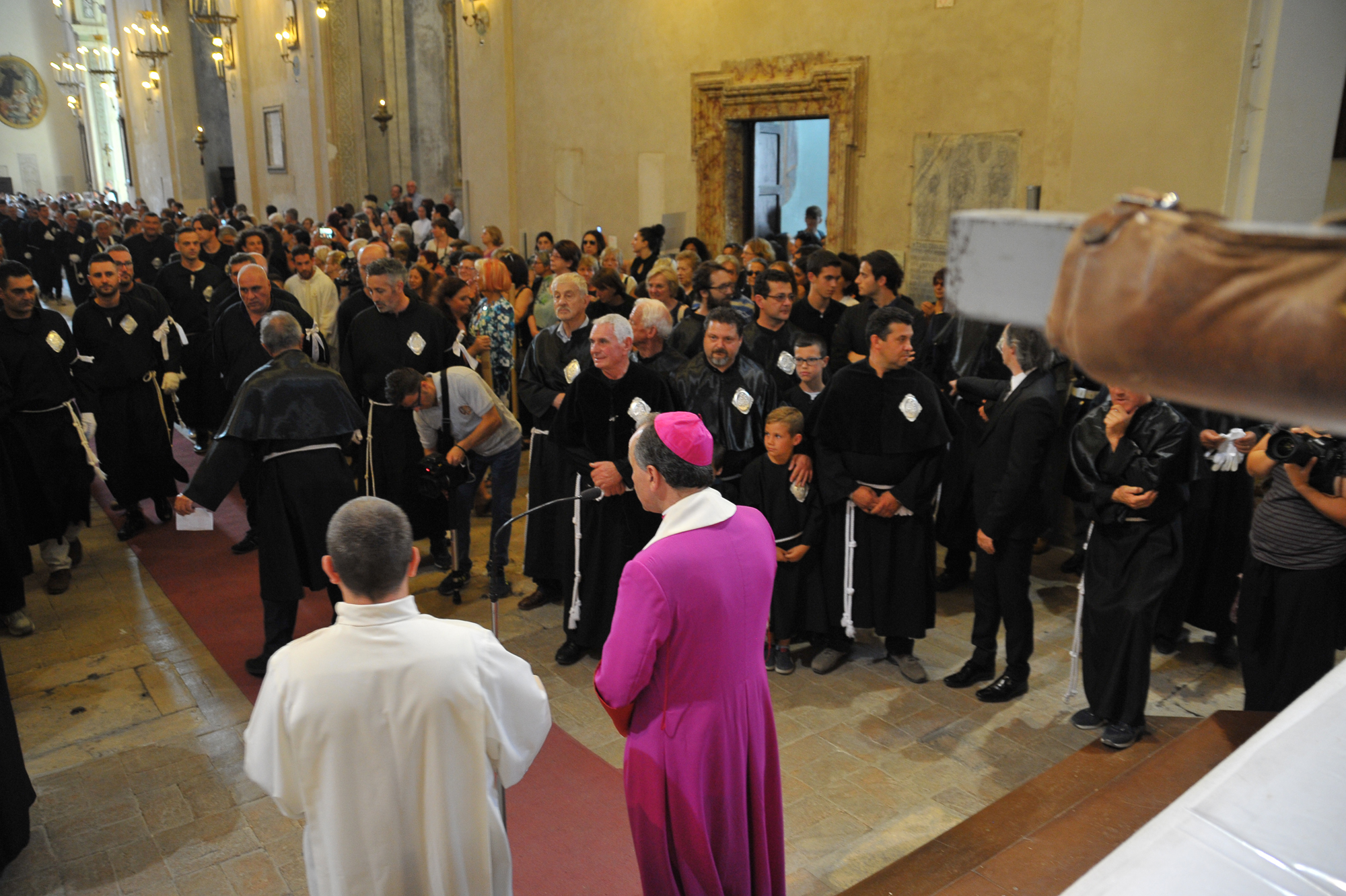 È stato guidato dal vescovo Domenico il momento della benedizione dei portatori, gli uomini della Pia Unione Sant’Antonio di Padova che ogni anno vengono estratti per portare a spalla, divisi in quattro squadre di 16 elementi ciascuna, la statua del Santo dei miracoli.