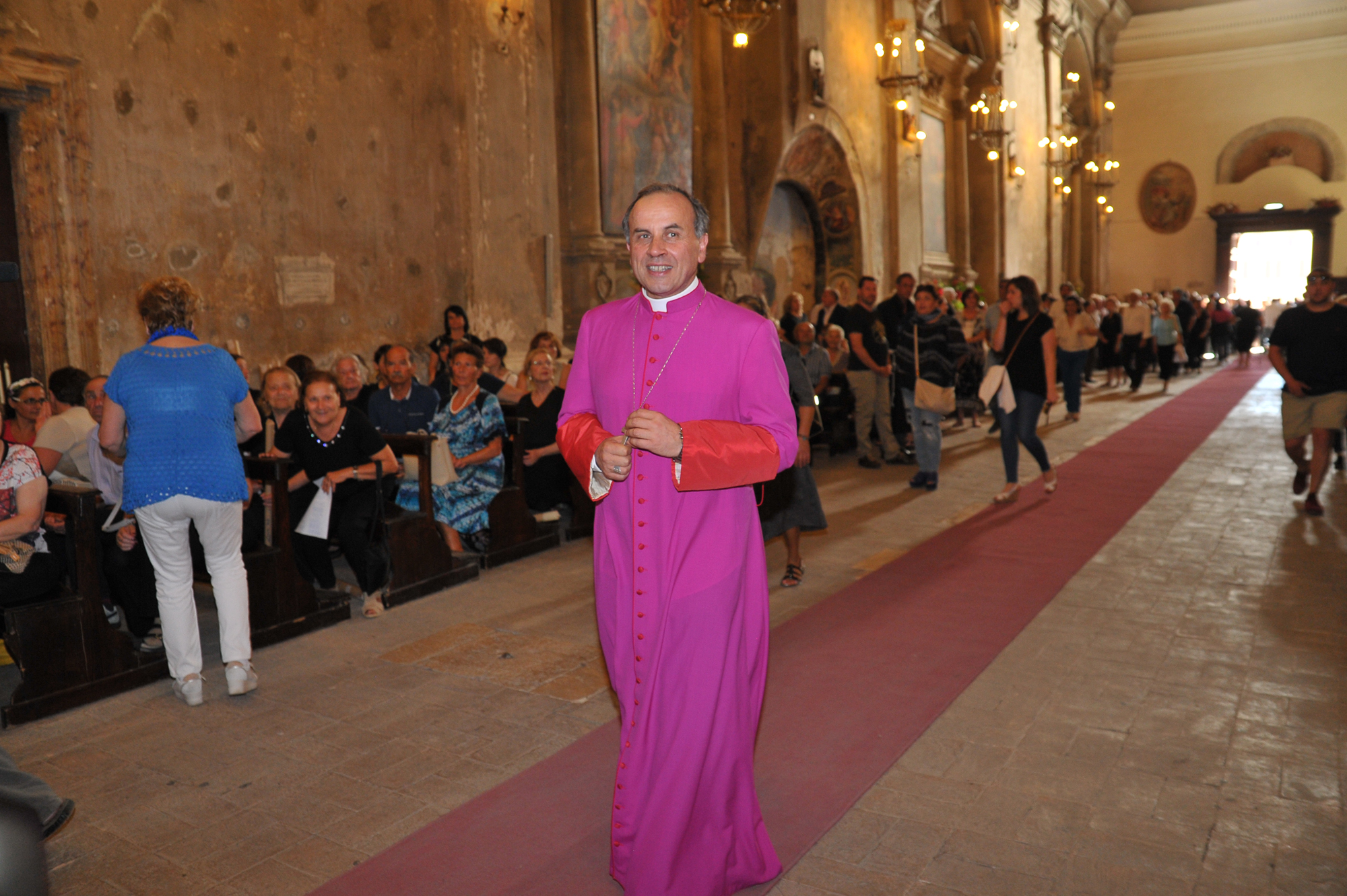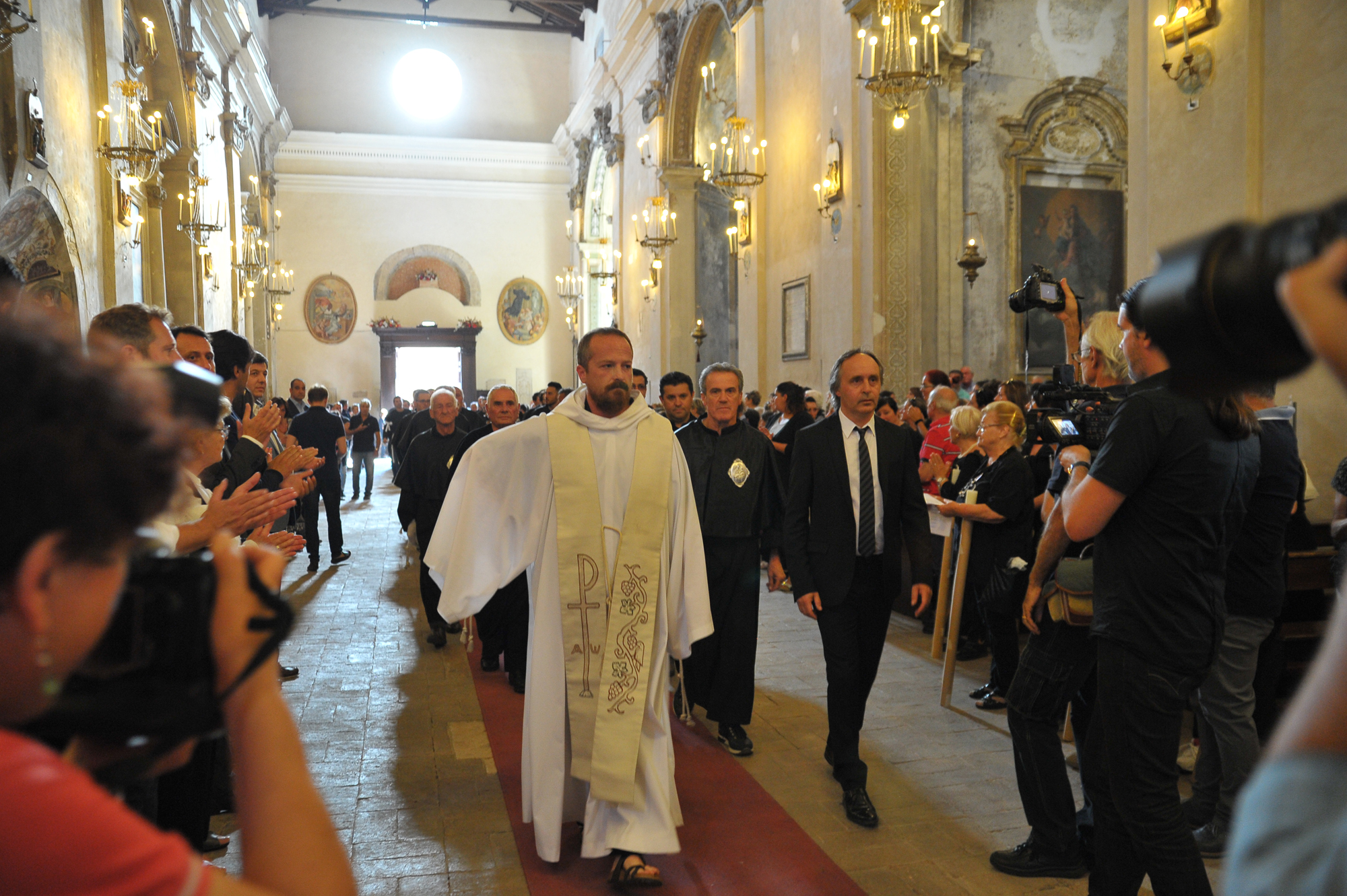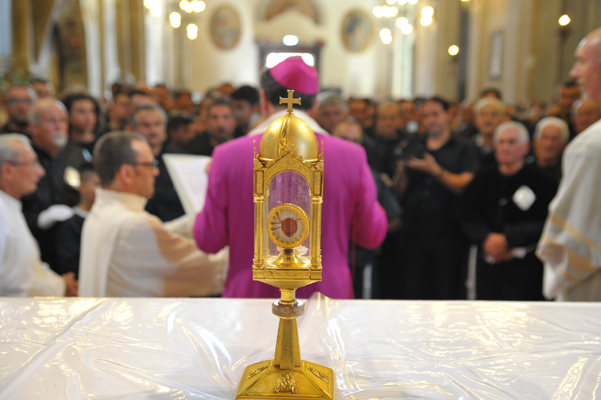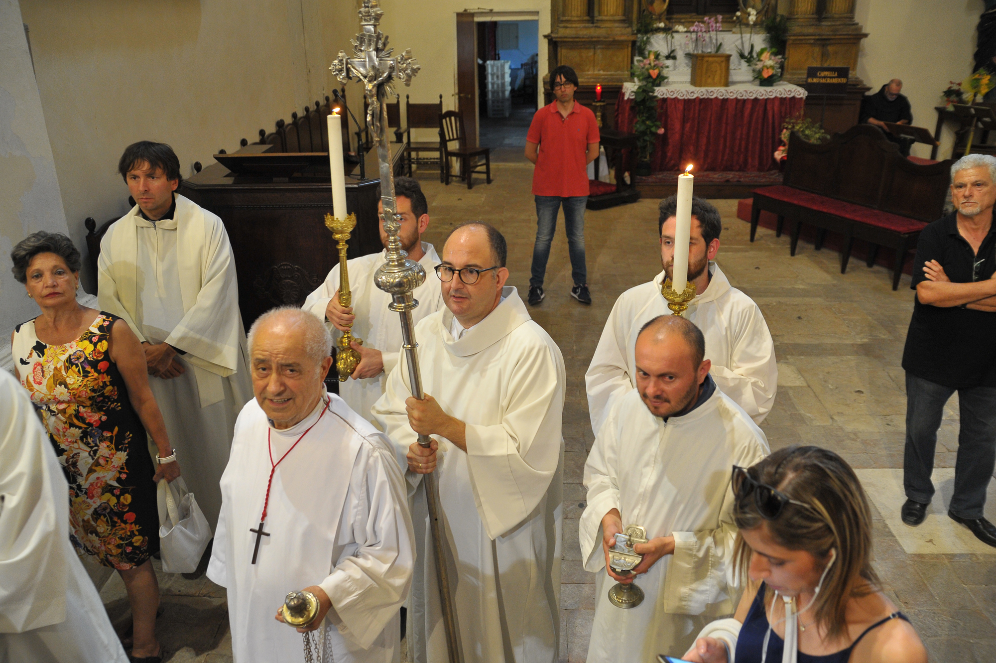 È stato guidato dal vescovo Domenico il momento della benedizione dei portatori, gli uomini della Pia Unione Sant’Antonio di Padova che ogni anno vengono estratti per portare a spalla, divisi in quattro squadre di 16 elementi ciascuna, la statua del Santo dei miracoli.