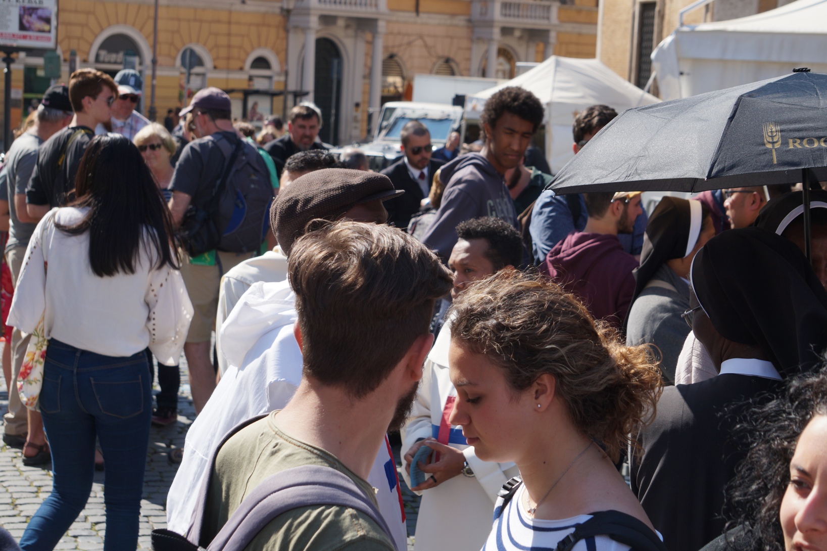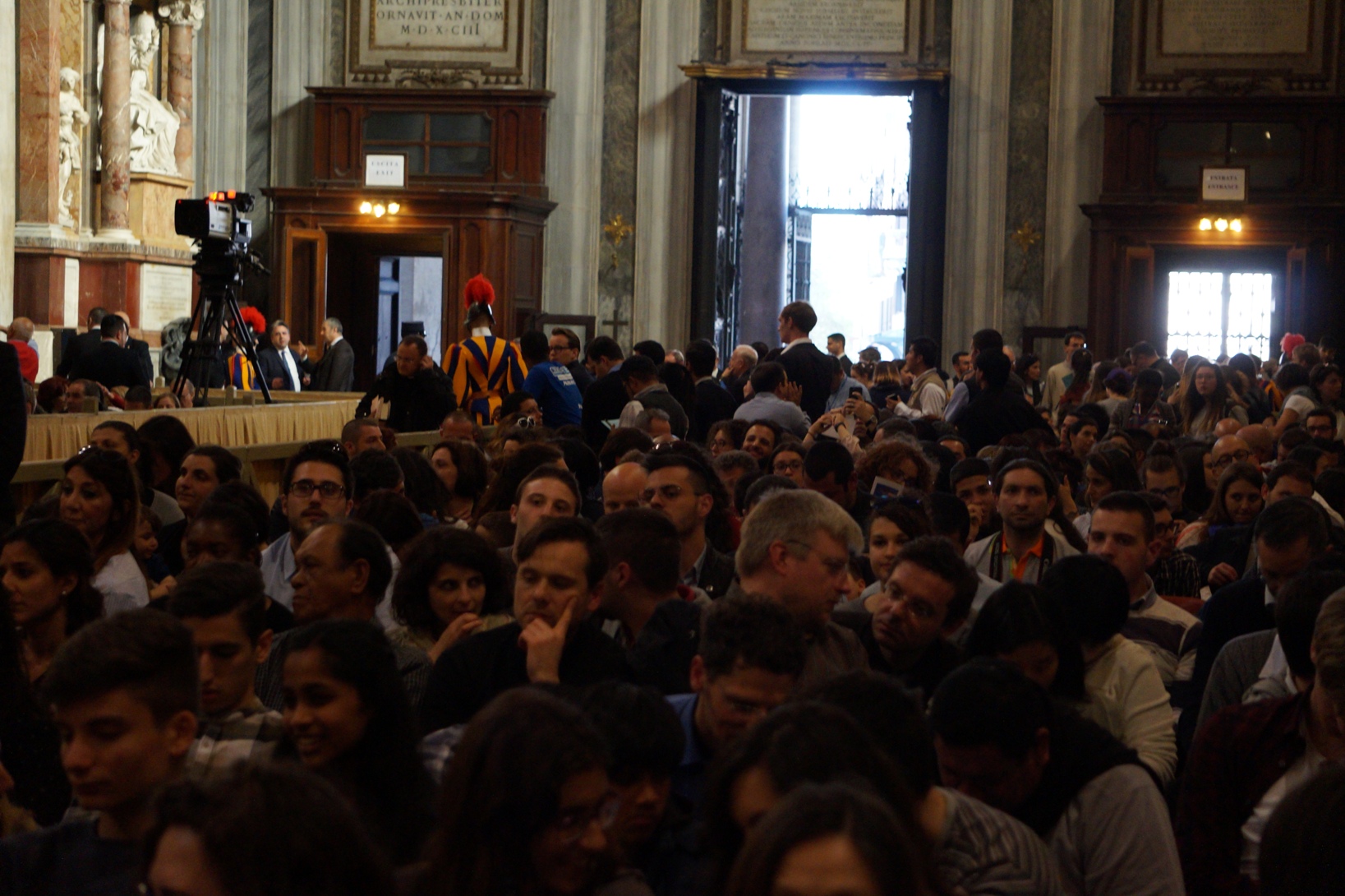 Diretti subito dopo verso la Basilica di Santa Maria Maggiore, prima dell’arrivo del Pontefice, durante la cosiddetta “preveglia”, è stato recitato il rosario in diverse lingue intervallato da canti, testimonianze e dalla lettura della lettera di Papa Francesco ai giovani nel giorno del indizione del sinodo su “I giovani, la fede e il discernimento vocazionale”. L’arrivo del Santo Padre è stato salutato dalle grida dei tantissimi ragazzi provenienti da tutte le diocesi del Lazio. Il Papa ha ascoltato le testimonianze di una giovane suora e di un ragazzo campione di nuoto sulla sedia a rotelle.