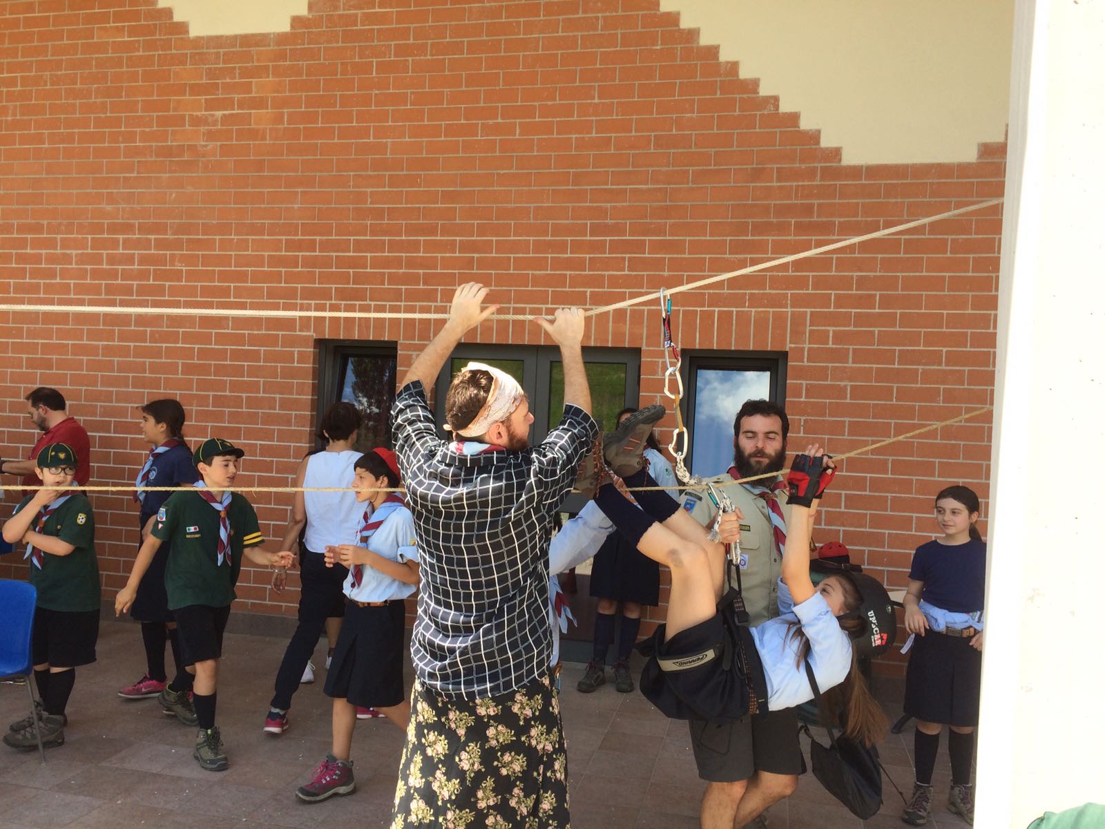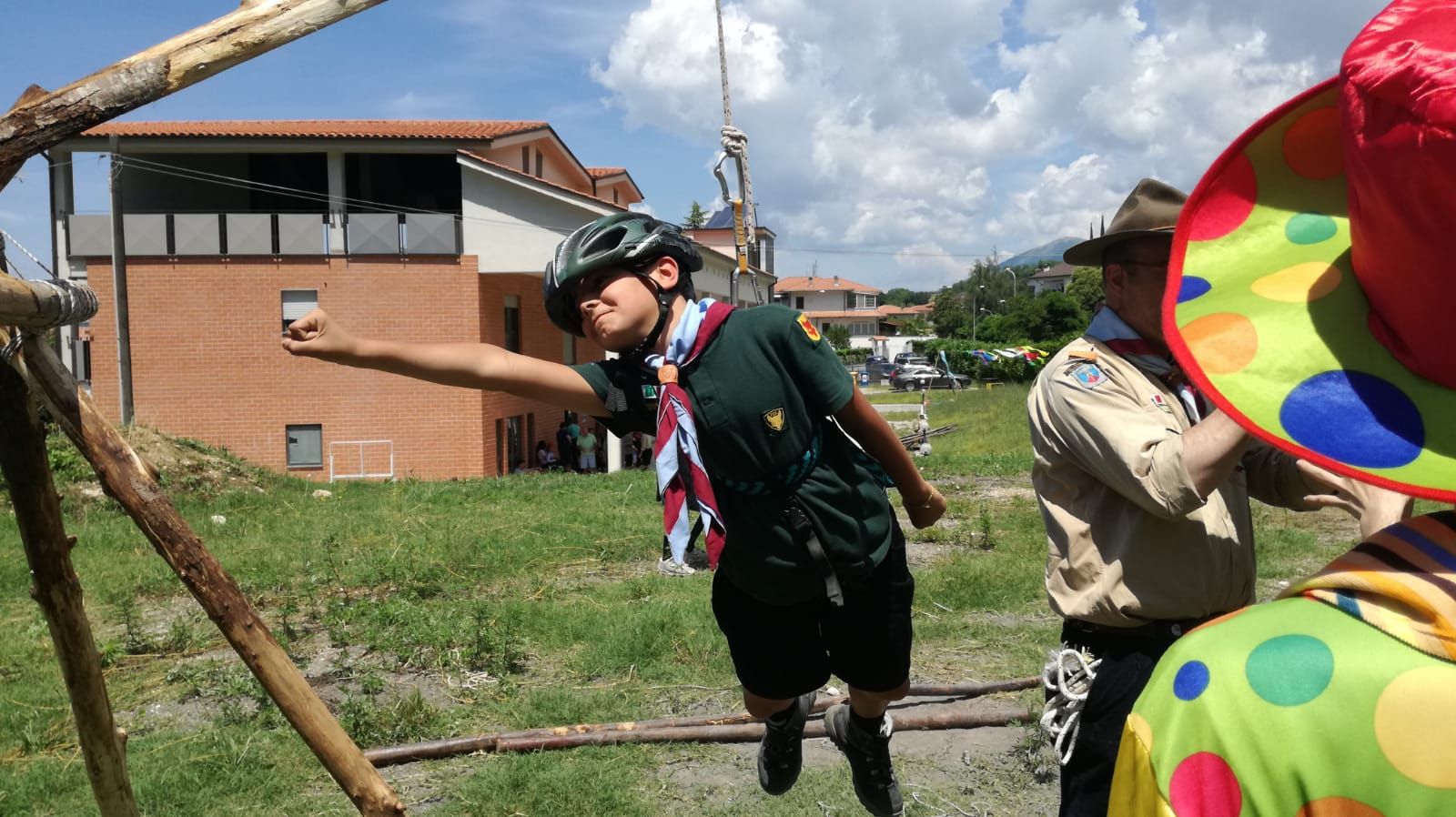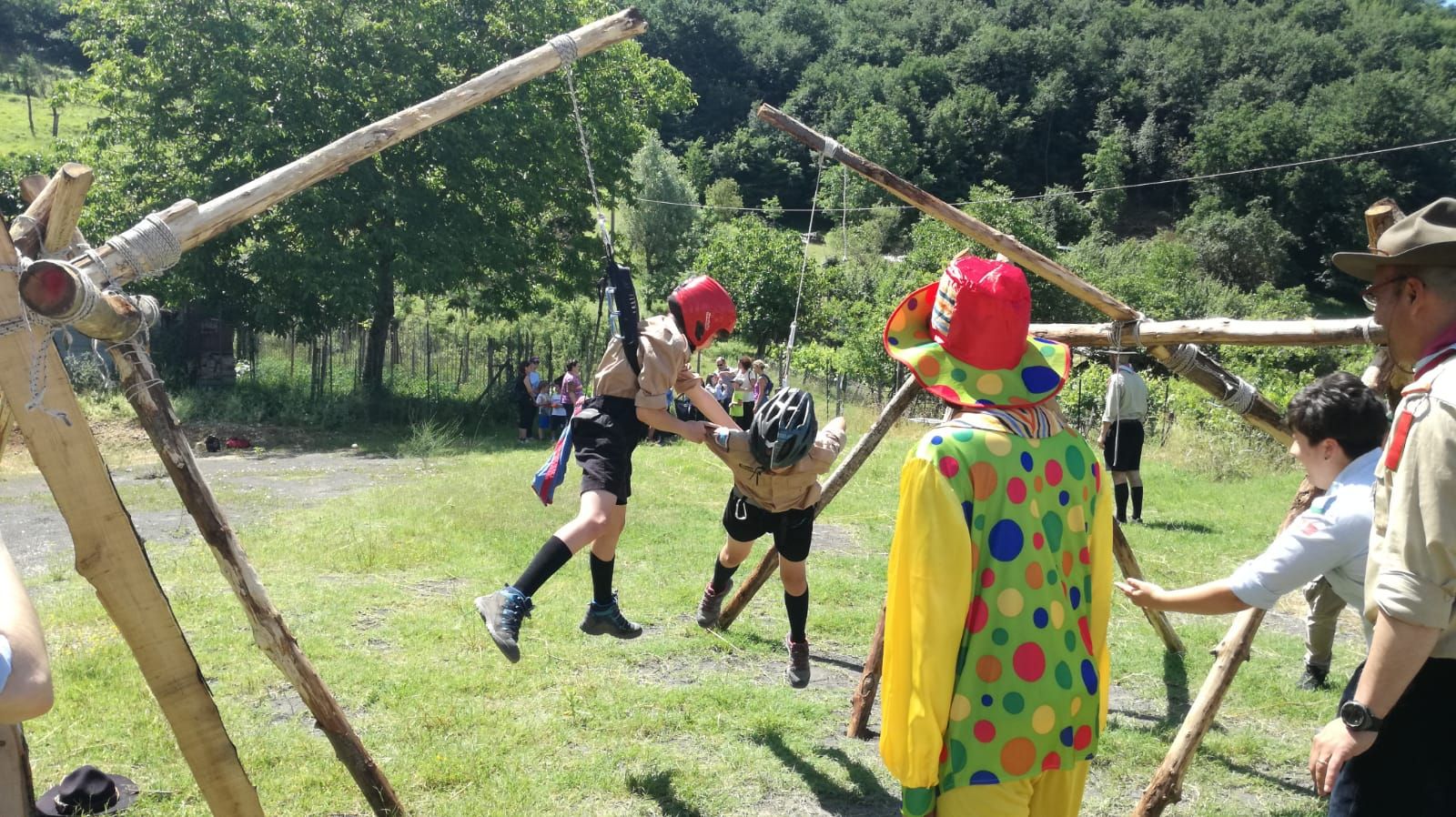 Una grossa tenda dai vari colori costituiva l’ingresso della strabiliante ambientazione circense. All’interno si scoprivano fantastici personaggi e attrazioni. C’erano i pagliacci con la loro giostra scout furbona, una donna cannone con la sua salita e discesa in corda, un’equilibrista con il suo ponte tibetano, dei giocolieri con i loro scalpi volanti.