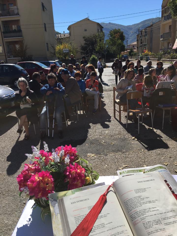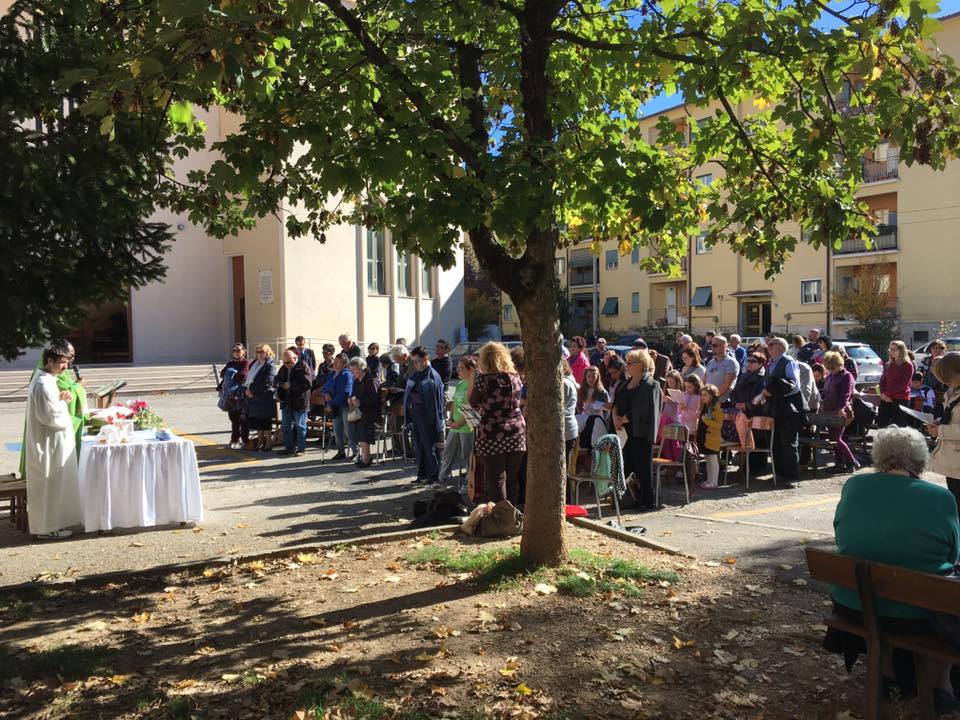 «Allora non ci spaventano gli avversi eventi sismici per quanto minacciosi e devastanti possano essere: “Anche se dovessi camminare in una valle oscura non temo alcun male, perché tu sei con me. Il tuo bastone ed il tuo vincastro mi danno sicurezza”» ha concluso don Jean Baptiste, riassumendo del pensiero spirituale condiviso con i parrocchiani durante la S. Messa celebrata all’aperto.