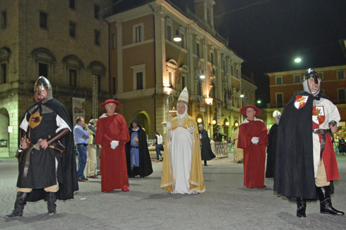 Si è tenuta domenica 2 settembre la Rievocazione della Canonizzazione di San Domenico. Giunta alla quinta edizione, l’iniziativa si presenta come un grande evento in costume storico nella scenografia della Rieti medievale. 300 i figuranti in abiti duecenteschi, grande la massa sonora delle chiarine e dei tamburini, notevole l’abilità degli sbandieratori e degli artisti del fuoco: nelle strade e nelle piazze della città la forza di un’allegria festosa.