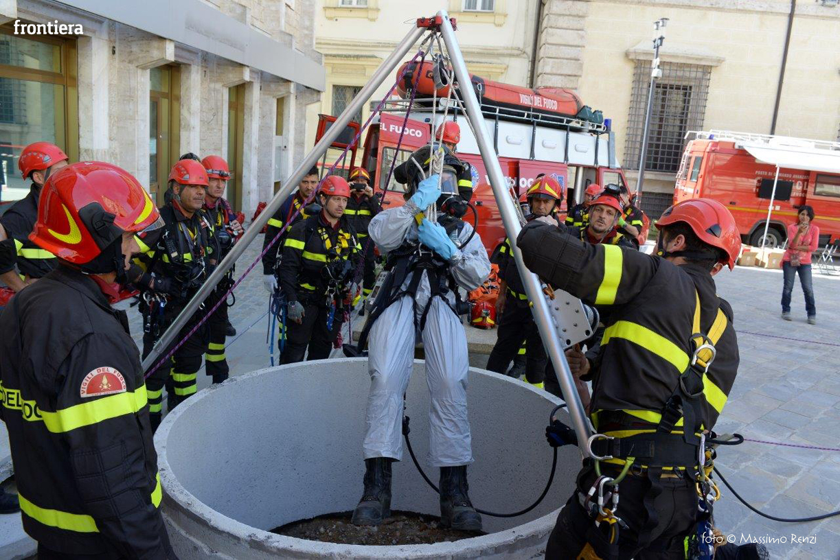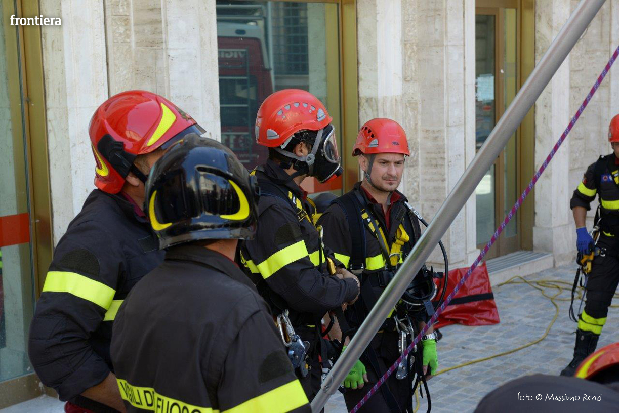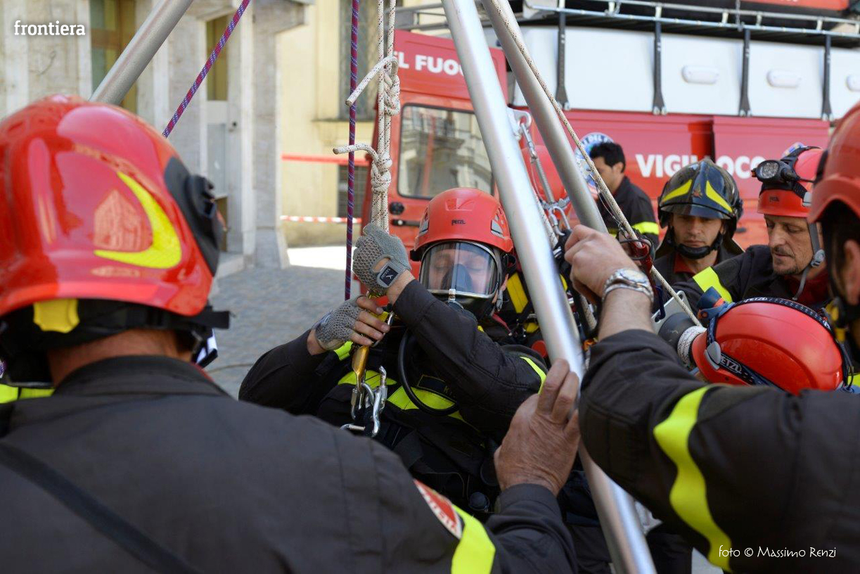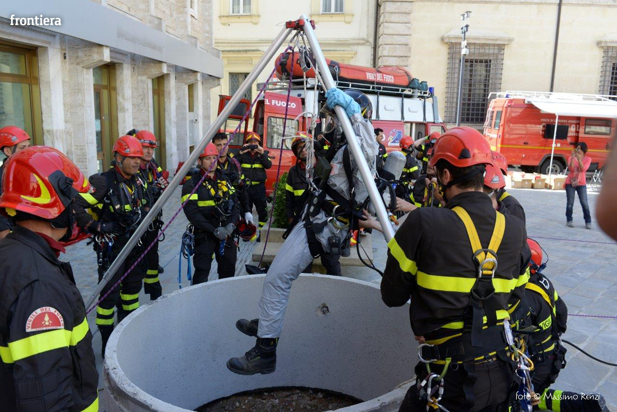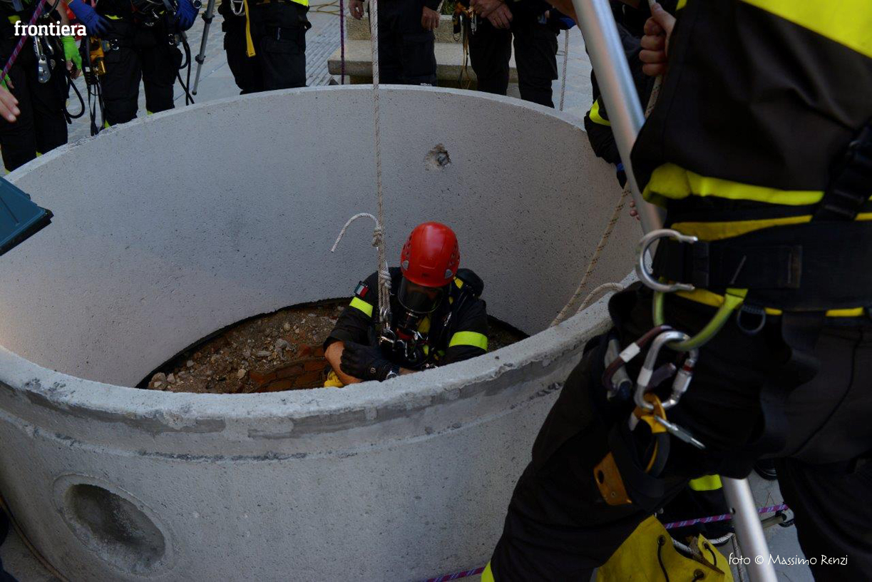 Operazioni di ispezione per il rifugio antiaereo sotto piazza Cesare Battisti e piazza Vittorio Emanuele. Foto © Massimo Renzi.
