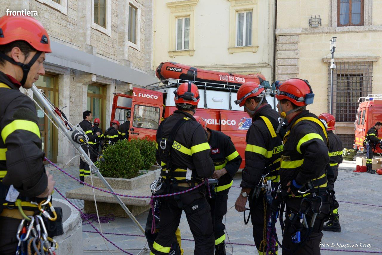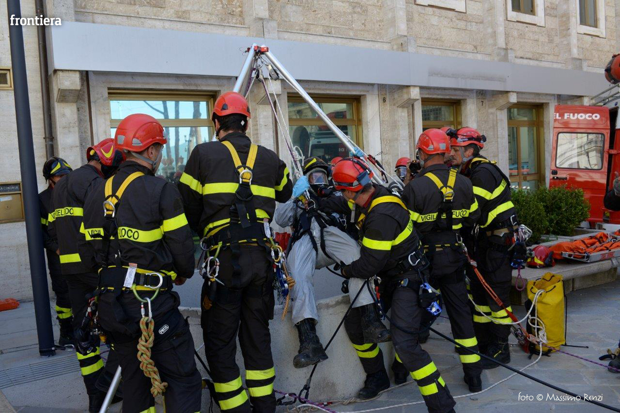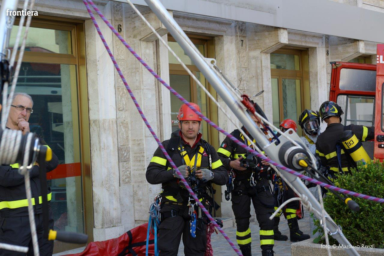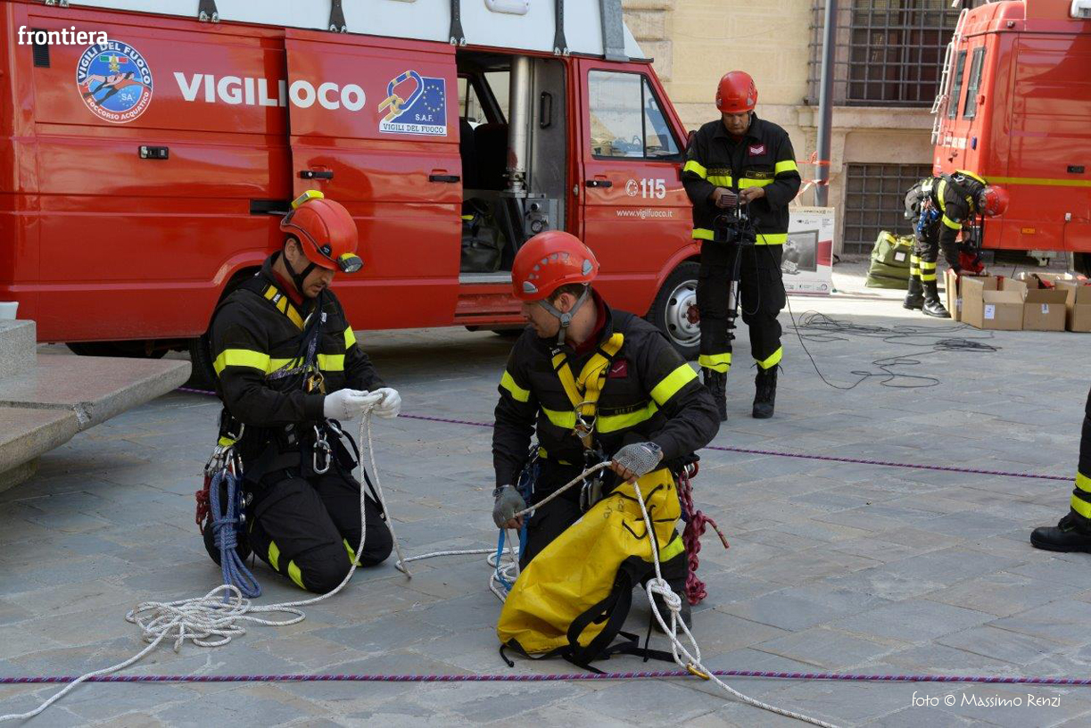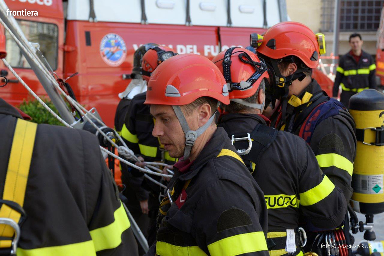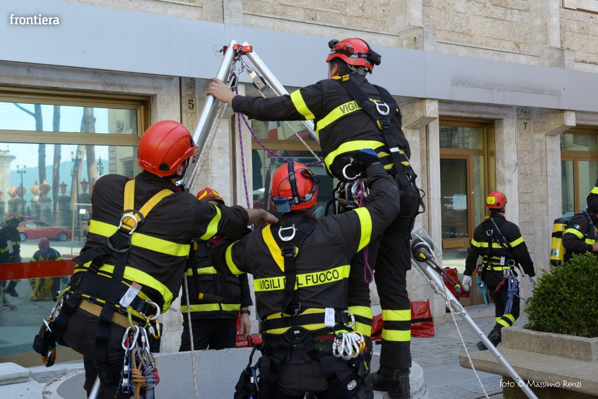 Operazioni di ispezione per il rifugio antiaereo sotto piazza Cesare Battisti e piazza Vittorio Emanuele. Foto © Massimo Renzi.