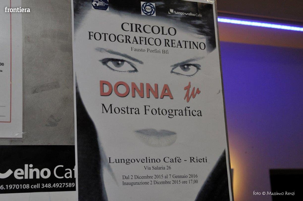 È stata inaugurata il 2 dicembre presso il Lungovelino Café a Rieti la mostra fotografica dal titolo “Donna tu” del Circolo Fotografico Reatino “Fausto Porfiri” BFI. Si tratta di un’esposizione di immagini per rendere omaggio ad una creatura gentile, romantica, bella e sognatrice. Ma non solo. Infatti la collettiva dei soci del sodalizio fotografico reatino, cerca di indagare e scandagliare anche il percorso femminile di emancipazione troppo spesso sconosciuto e misconosciuto. E poi la questione dello sfruttamento della donna ritratta in momenti di lavoro nei quali essa, in società diverse dalle nostre, è impegnata in mansioni pensanti e logoranti. Ma c’è anche la donna mamma che, nonostante tutto, supera le amarezze della vita grazie al sorriso delle figlie e dei figli.
