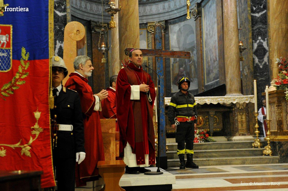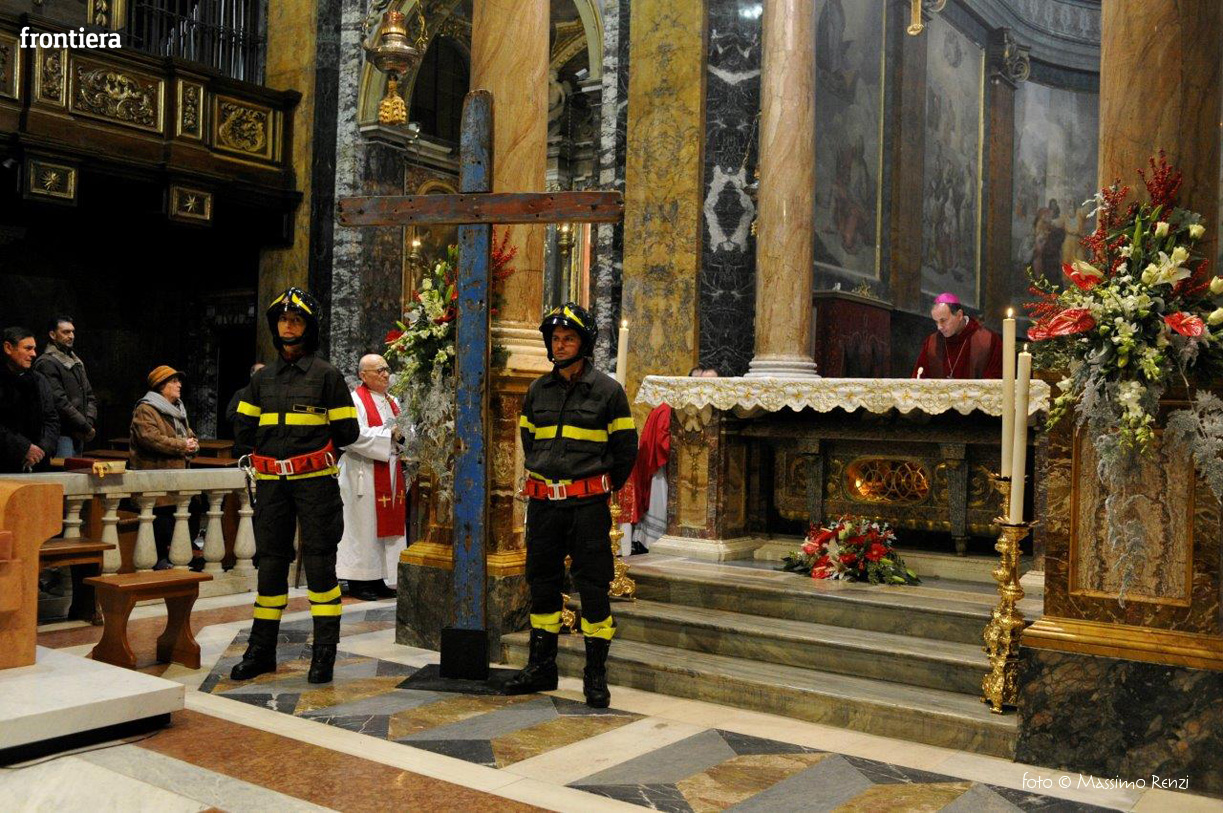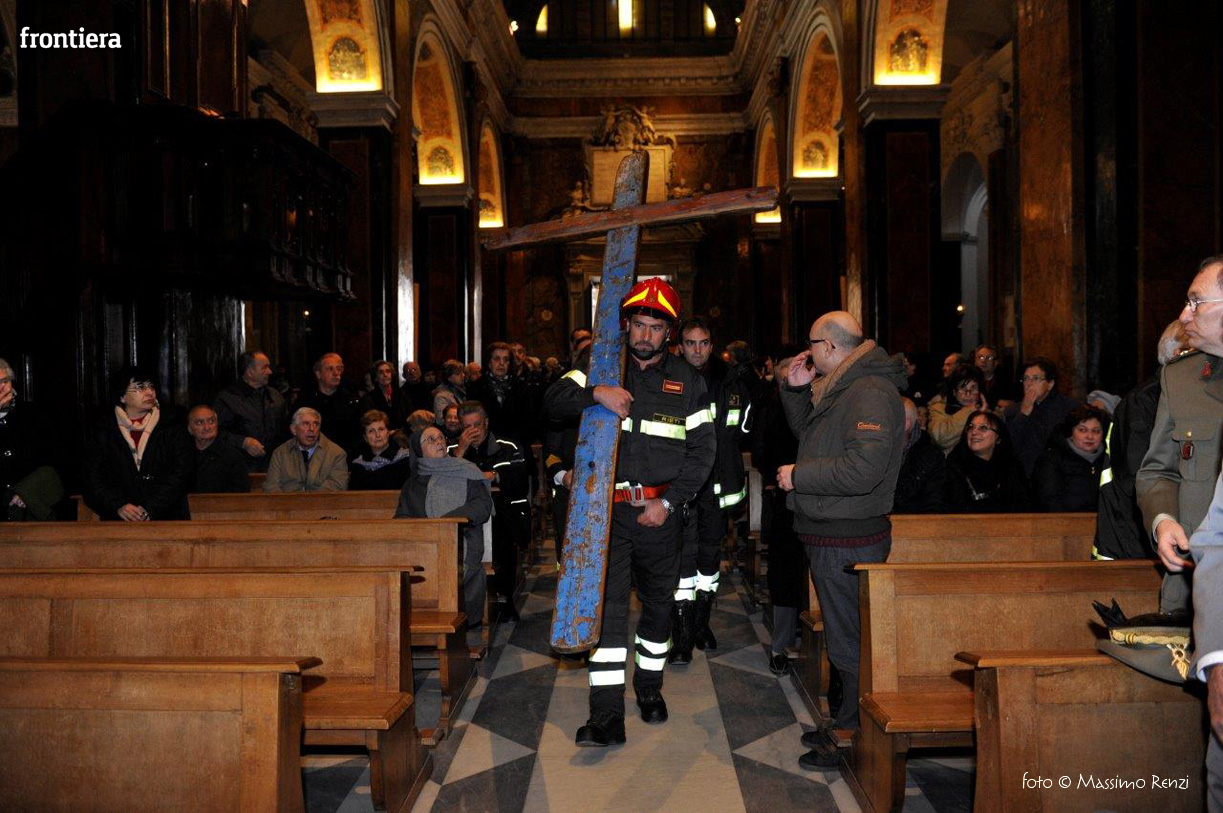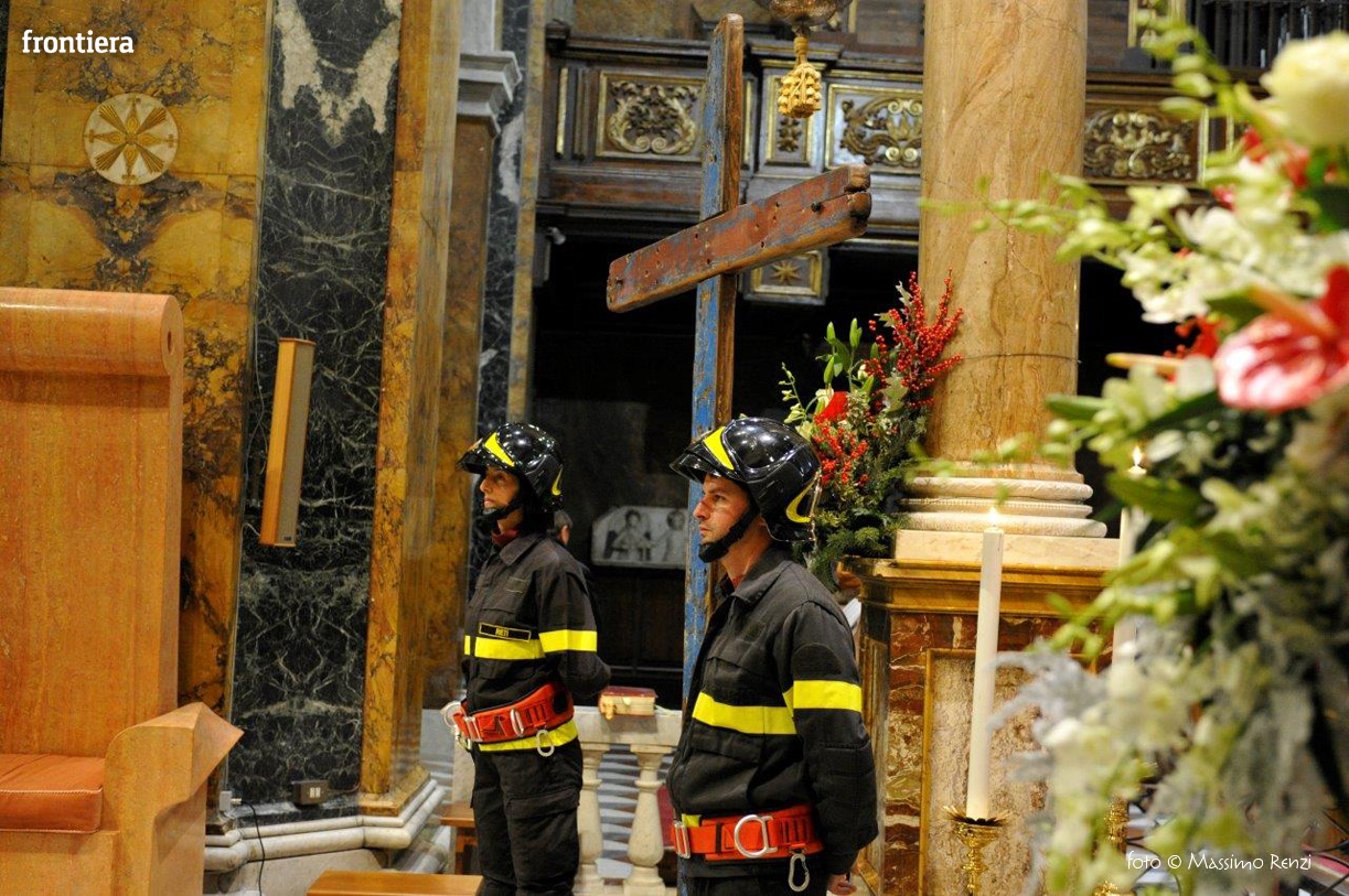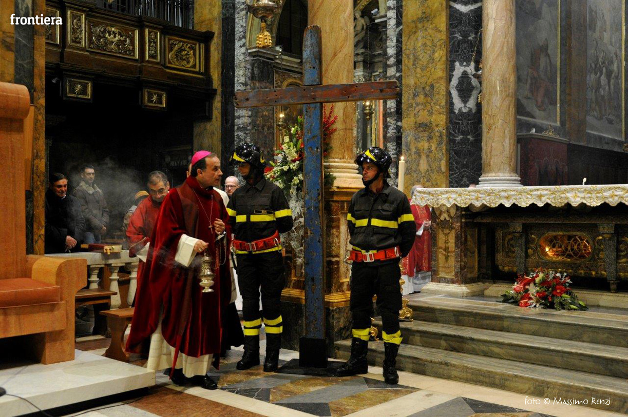 Presa in consegna dalla Confraternita di Misericordia di Rieti presso la chiesa di Santa Lucia al Borghetto nella Val di Pesa, a Tavarnelle, nell’Arcidiocesi di Firenze e trasportata a Rieti, la “Croce di Lampedusa” benedetta da Papa Francesco e costruita con due assi di legno prelevate dai barconi dei migranti sbarcati nell’isola di Lampedusa è stata consegnata agli studenti del Liceo Scientifico “Carlo Jucci” nel giorno della processione sul fiume di Santa Barbara: un passaggio di consegna di forte carica simbolica, con l’indicazione alle giovani generazioni di portare sempre con sé i valori dell’accoglienza, del rispetto e della misericordia.