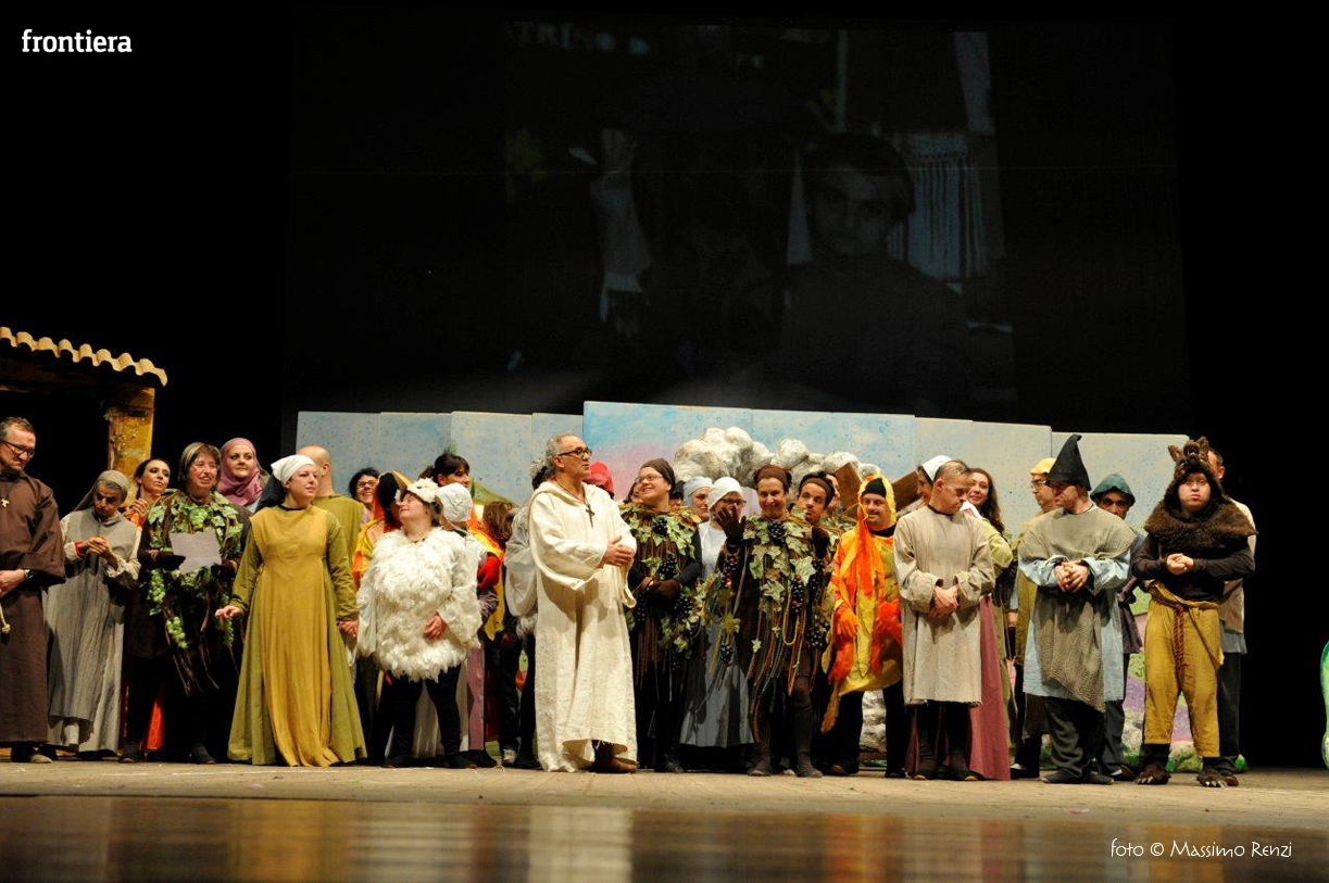 È andato in scena al Teatro Flavio Vespasiano, programmato all’interno del cartellone di Santa Barbara nel Mondo, “La terra di Barbara e Francesco”, musical a cura dei ragazzi diversamente abili del Centro “ARFH” dedicato a Papa Francesco, con il coordinamento di Elenio Giovannelli.