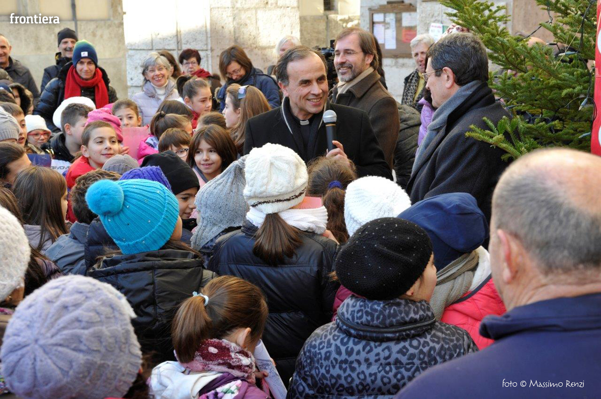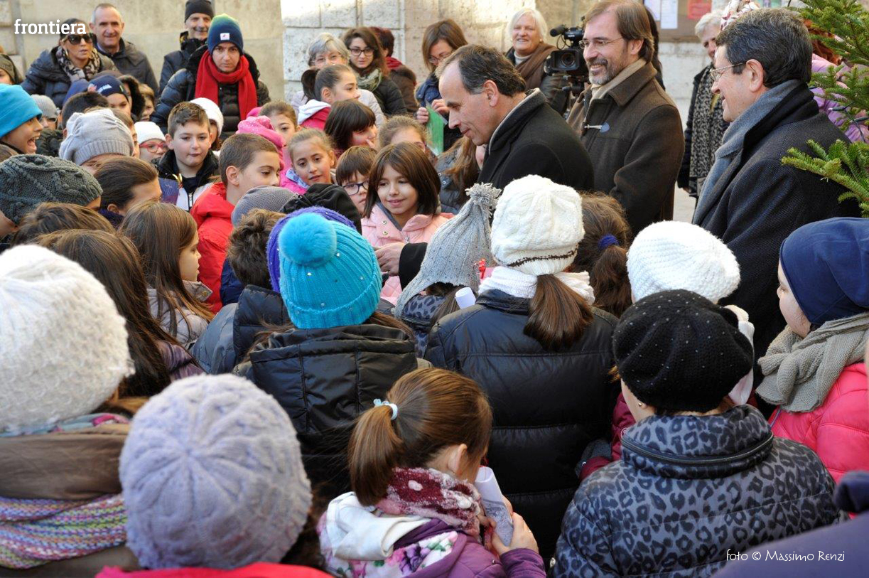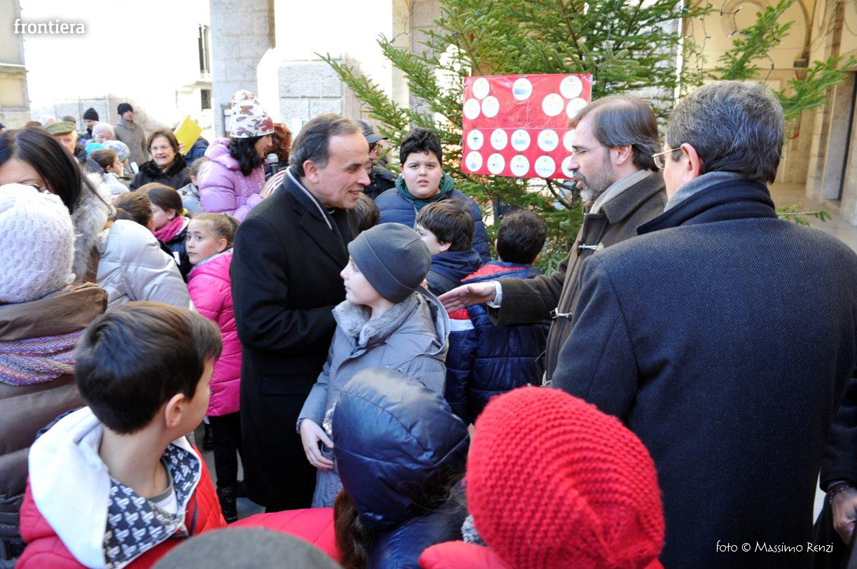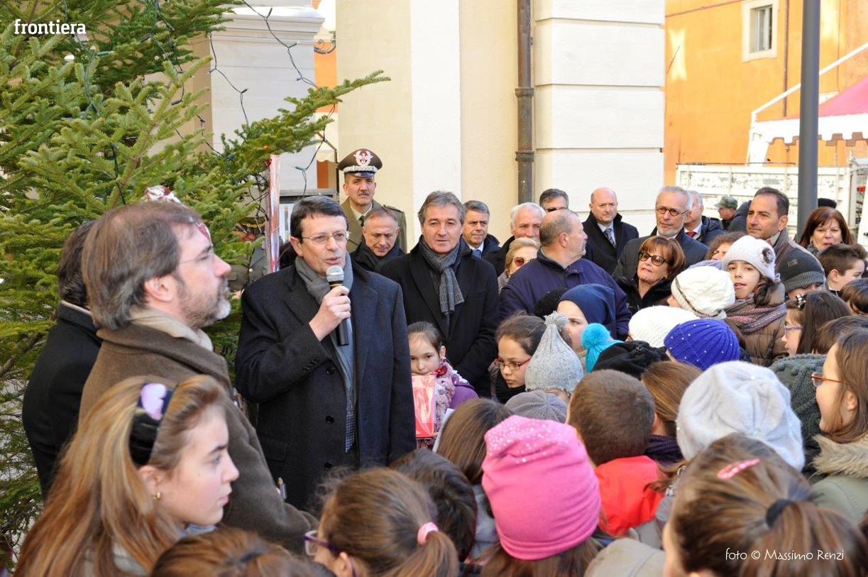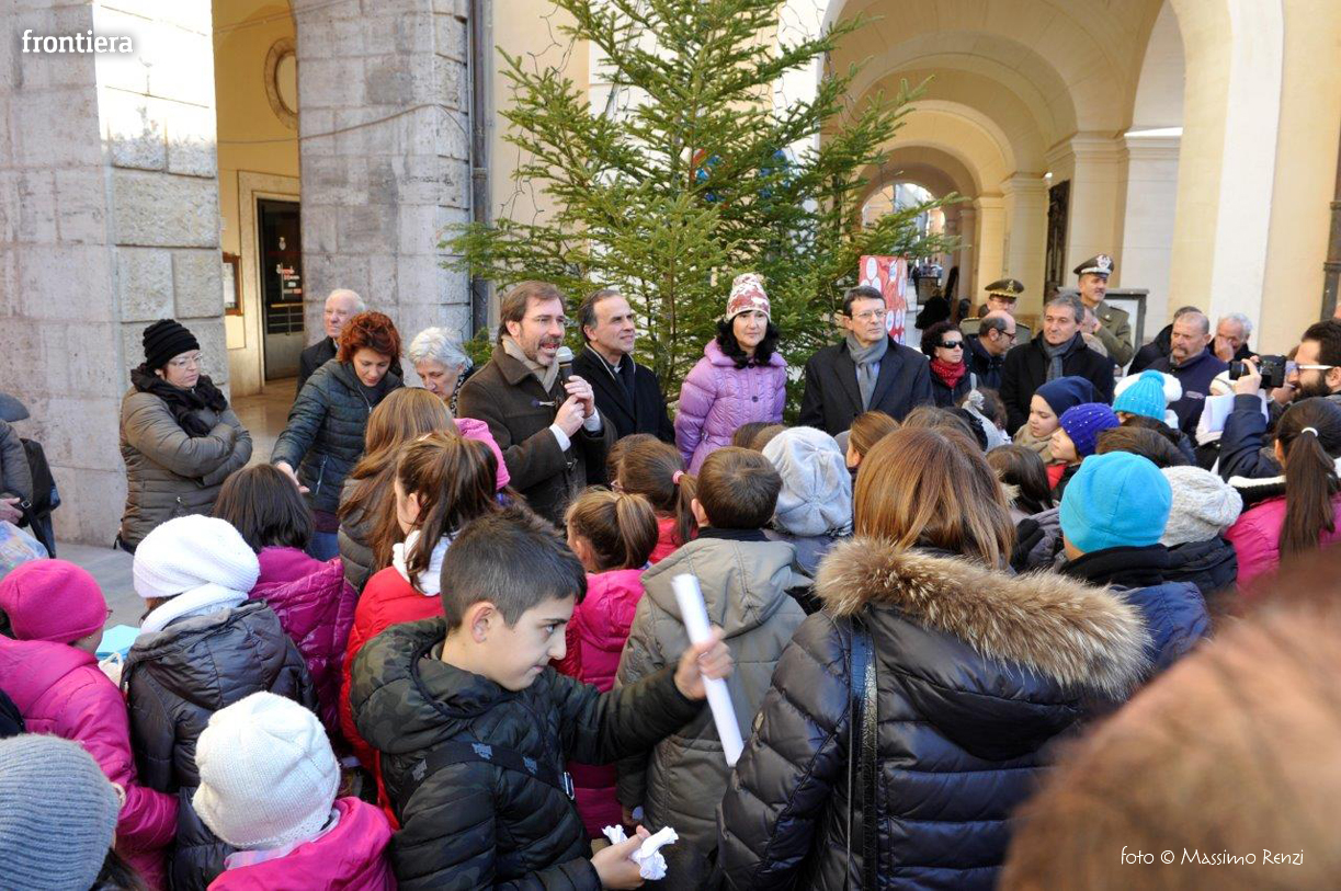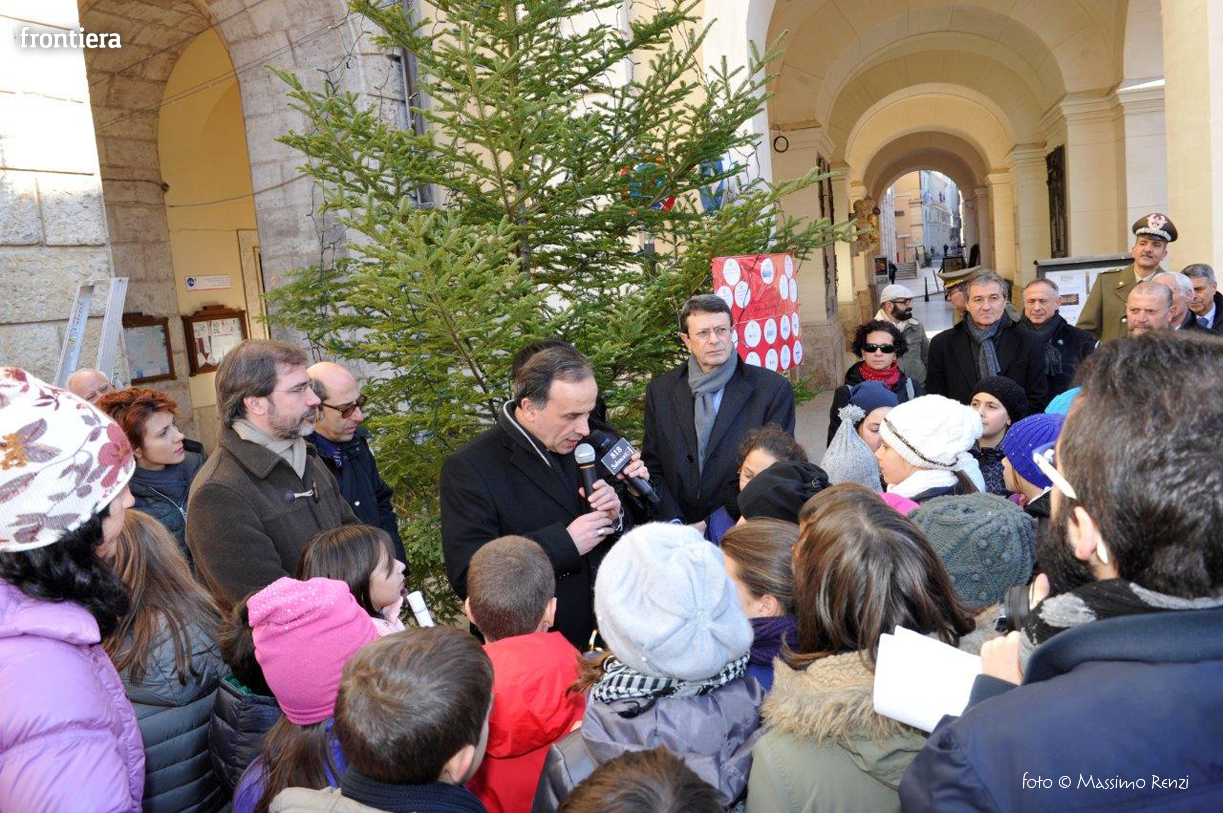 La piccola cerimonia con cui è stato acceso l’albero di Natale ha visto la presenza del Vescovo Domenico Pompili, del prefetto Paolo Grieco e del sindaco Simone Petrangeli.
