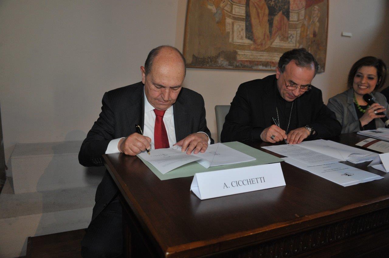 Prima della firma del protocollo che ha sancito l’accordo, anche la riflessione del sindaco di Rieti Antonio Cicchetti, che ha ribadito la volontà di sancire e sottoscrivere un accordo congiunto per portare avanti l’importante progetto di valorizzazione dell’intuizione di Francesco: «Da Rieti può partire un messaggio di serenità di rapporti, dobbiamo fare di questa città un punto di incontro distensivo. Noi siamo un esempio di come le civiltà possano essere compatibili, per guardare avanti insieme, perchè la pace non è solo frutto di buoni sentimenti e buone intenzioni, ma spesso è la risultante dell’assenza di interessi prevalenti che spingono verso la guerra: dobbiamo fare di questa città un punto di incontro distensivo, dove si possa guardare alla cultura degli altri con serenità. Quello che ci è mancato finora non sono solo le strade: ma dobbiamo ritrovare i motivi per venire a Rieti, per andare in un luogo che abbia un significato, che eserciti un richiamo. Noi vogliamo lavorare per questo».
