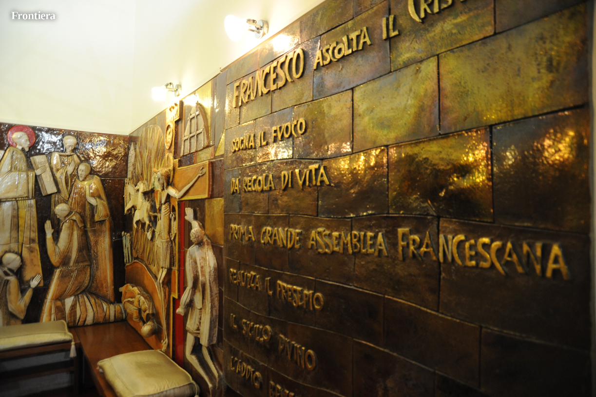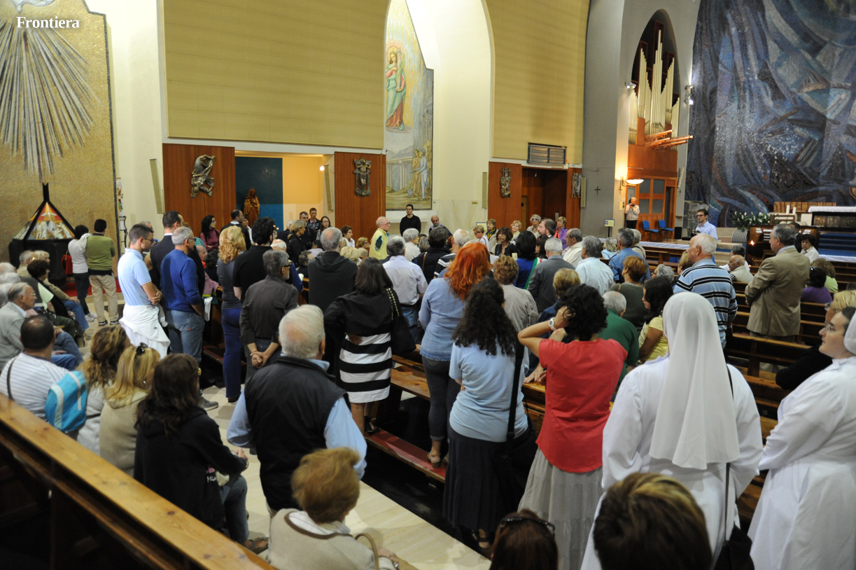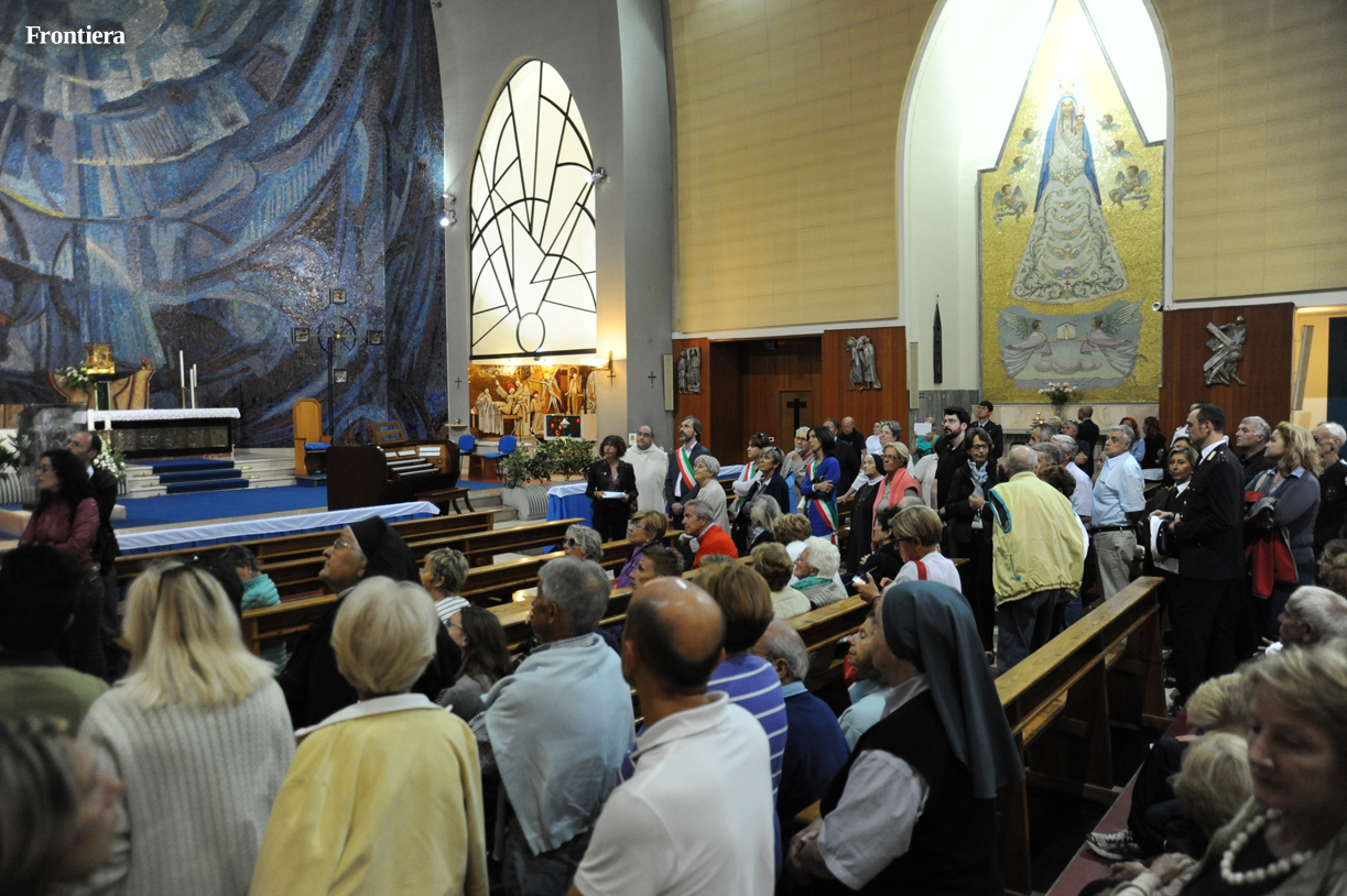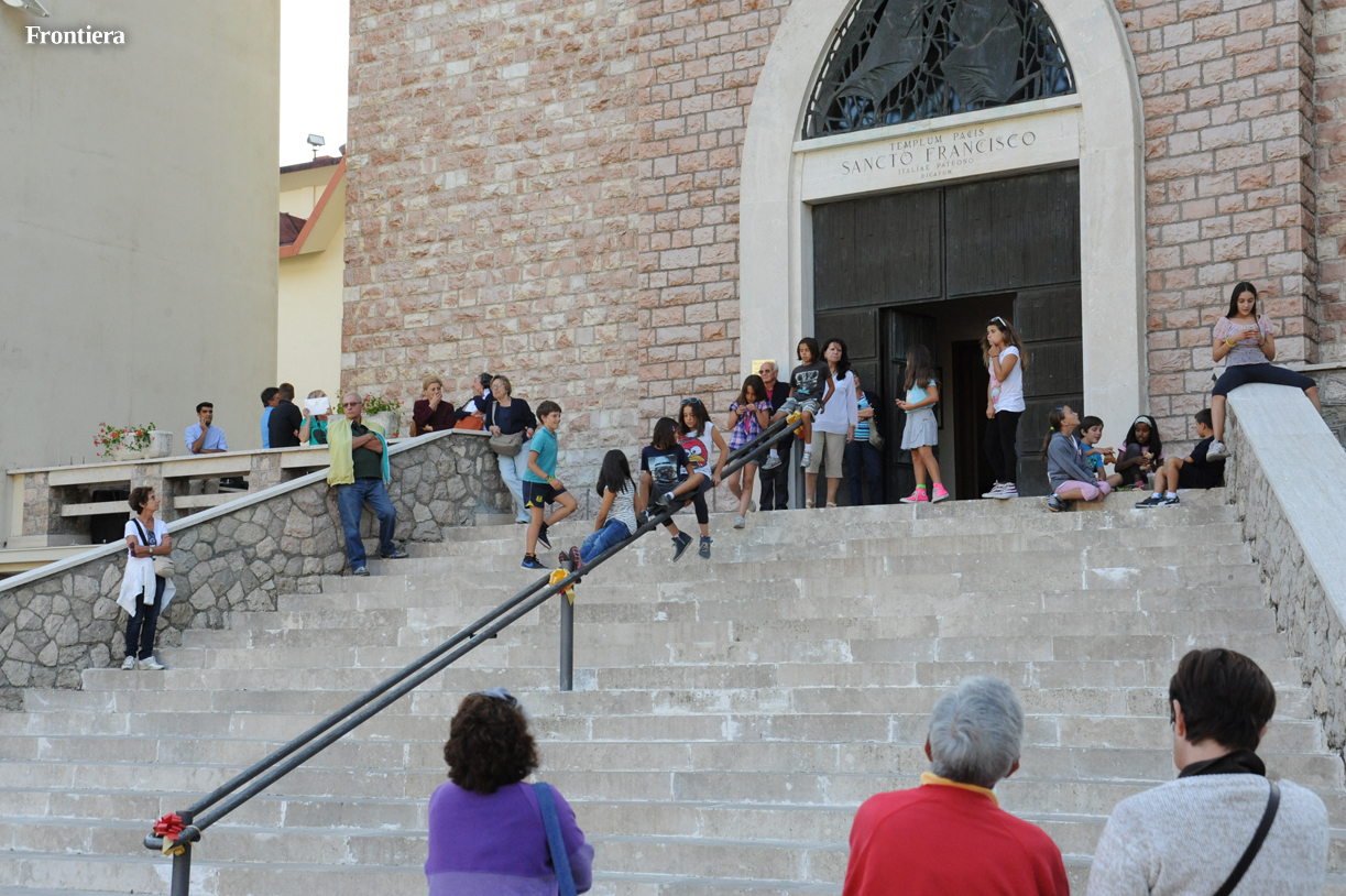 Il Templum Pacis, prima chiesa intitolata a San Francesco dopo la proclamazione a patrono d’Italia, e tra le poche a disporre di una autentica reliquia del poverello, festeggia infatti i cinquant’anni dalla dedicazione. E per l’occasione la parrocchia ha giustamente pensato di tenere da parte il trionfalismo, l’attenzione ai grandi personaggi, per concentrarsi su chi fa la storia con il sudore della fronte, sostenendone materialmente il peso sulle proprie spalle.