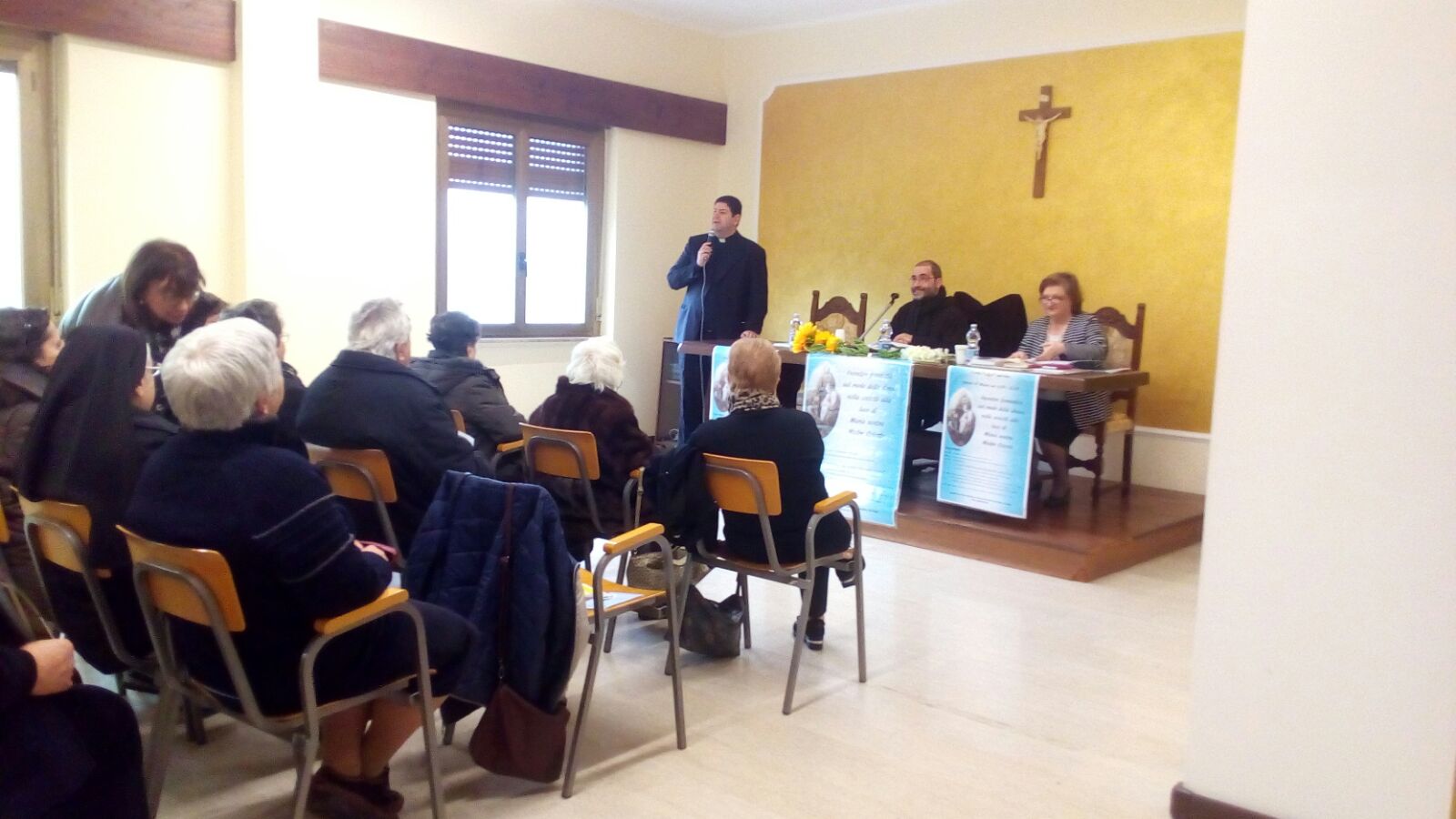 Centrale la relazione su “La missione della donna nella famiglia nella sequela di Maria”, tenuta dal vice parroco di San Michele Arcangelo, padre Luca Genovese. Nel 30° anniversario della lettera apostolica Mulieris dignitatem, il religioso ha delineato in modo approfondito e coinvolgente la missione della donna nella famiglia e nella società a partire dalla prospettiva biblica della figura di Maria Santissima e sulla base delle riflessioni dei Santi Padri. «La Vergine – ha affermato padre Luca – ha vissuto e sublimato il grande ideale della maternità. Non solo l’ha accolta, ma le ha dato il valore eterno di generatrice di Dio per il mondo. Il laboratorio della fede, come direbbe San Giovanni Paolo II, passa per il grembo di Maria».