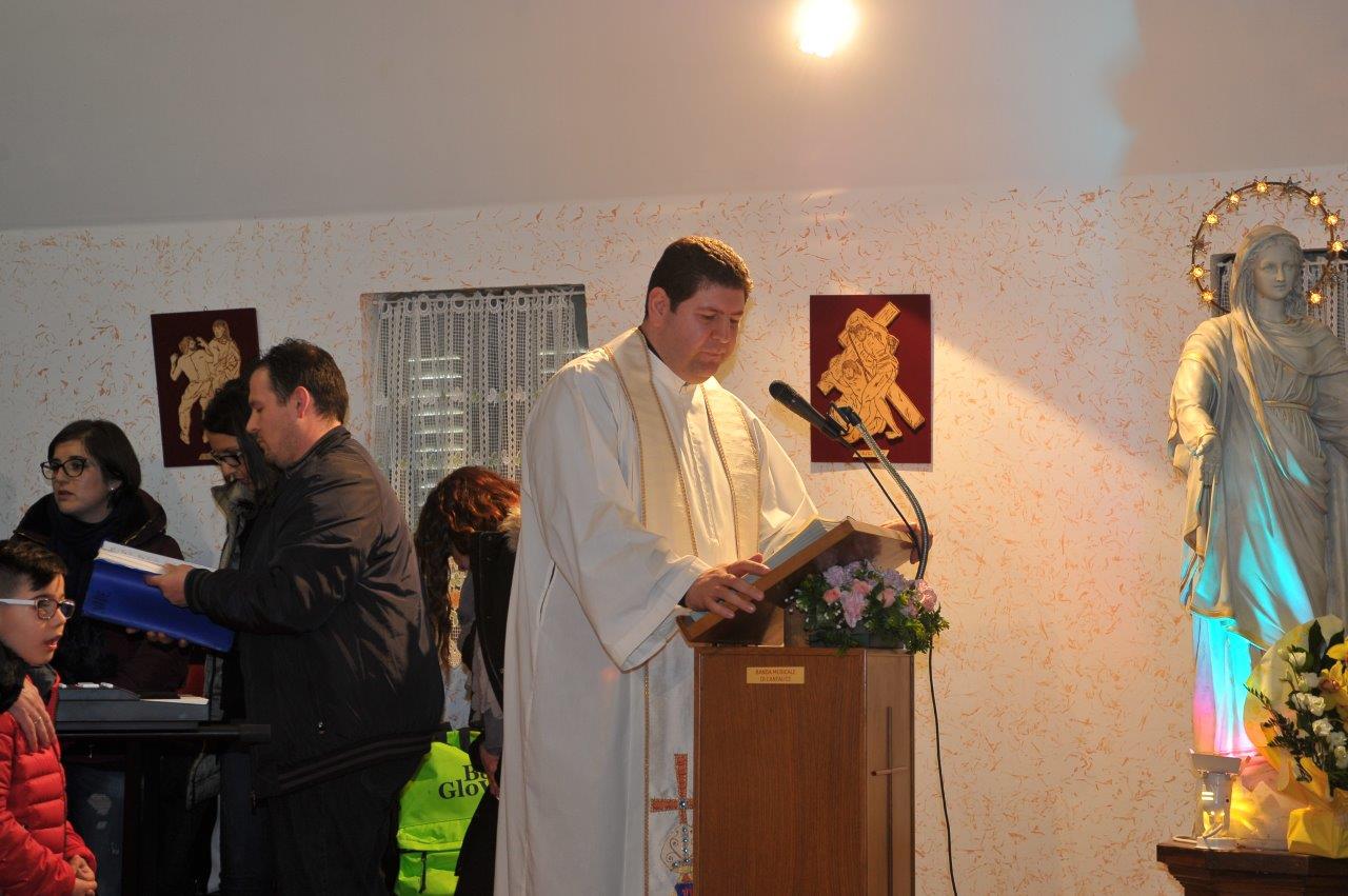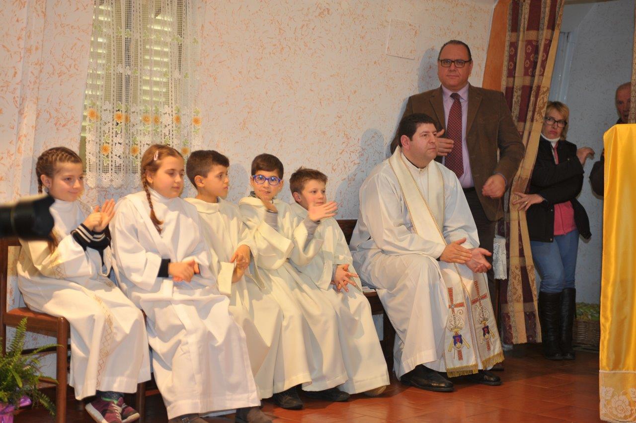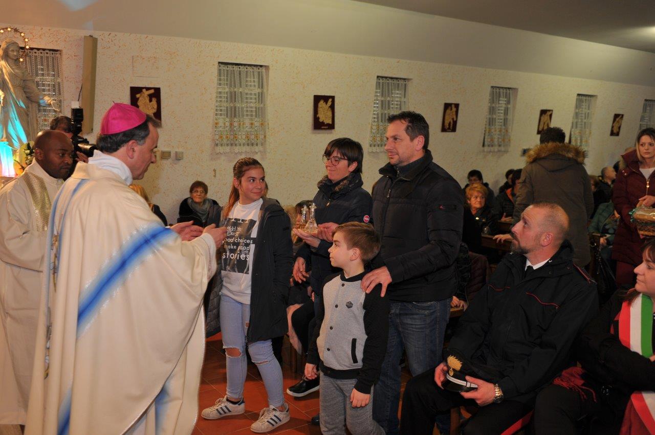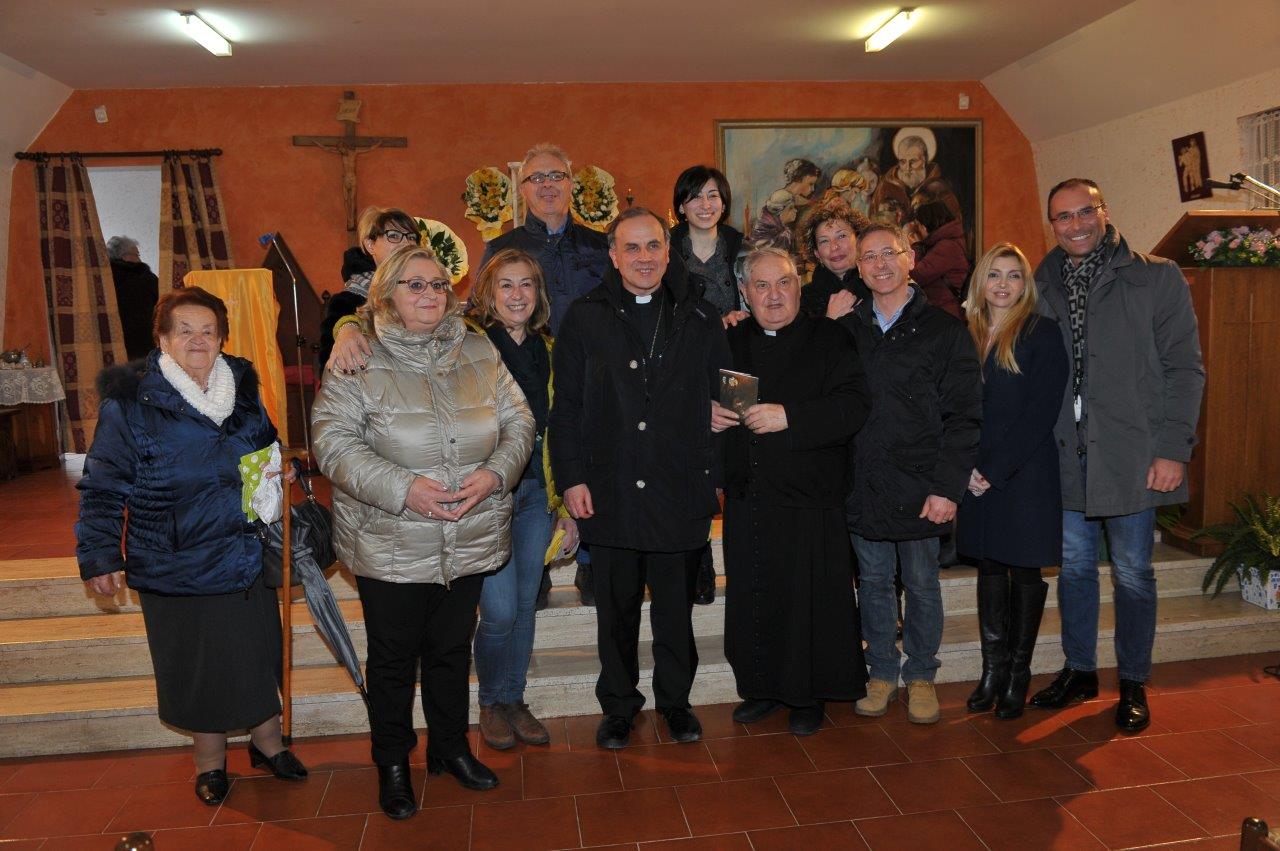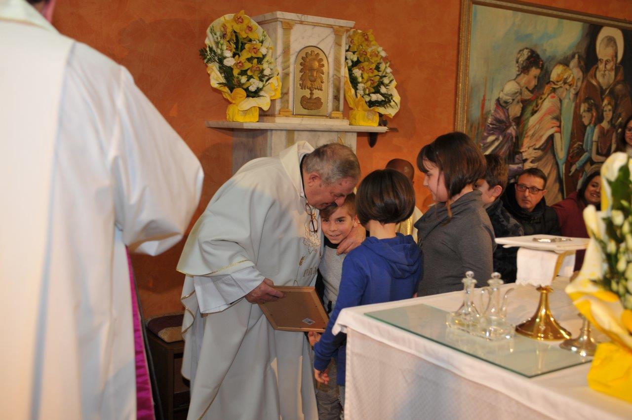 Ha voluto essere segnato anche lui con l’olio degli infermi, visto che il peso degli anni si fa sentire e qualche acciacco non manca: senectus ipsa est morbus, «la vecchiaia è per sé stessa una malattia», dice la celebre sententia dello scrittore latino Terenzio. E don Patacchiola la fatica fisica ora comincia a sentirla e ha voluto anche lui chiedere un po’ di forza divina. Ma quello che ancora ben lo sorregge è l’energia morale e spirituale. Quella che lo ha portato, in gran parte del suo mezzo secolo di ministero presbiterale, a dividersi fra il servizio di parroco, prima a Marcetelli poi nella sua Cantalice, e l’attività di cerimoniere vescovile e direttore dell’Ufficio liturgico diocesano. Ora che in pianta stabile risiede alla Casa Buon Pastore e ricopre l’ufficio di canonico del Duomo, la parrocchia cantaliciana continua, pendolare dalla città, a curarla, anche se don Nicola l’ha “alleggerito” delle pendici del paese. Non è venuto meno, però, in lui che a Cantalice ha recuperato vari spazi che hanno arricchito la storia religiosa della cittadina, il grande legame con questa cappella ai piani dedicata a san Giuseppe, con tanto sacrificio e tanta passione don Gottardo realizzò dal nulla all’interno di un container, creandovi un’aula liturgica più che dignitosa e un punto di ritrovo importante per gli abitanti della zona compresa tra Santa Margherita e la salita che va verso il paese. Legame manifestato con grande benevolenza dai parrocchiani, che al termine della messa hanno rivolto a don Gottardo un saluto affettuoso, scritto in un’apposita pergamena letta dalla rappresentante del Comitato di San Giuseppe e in una bella poesia proposta dai bambini.