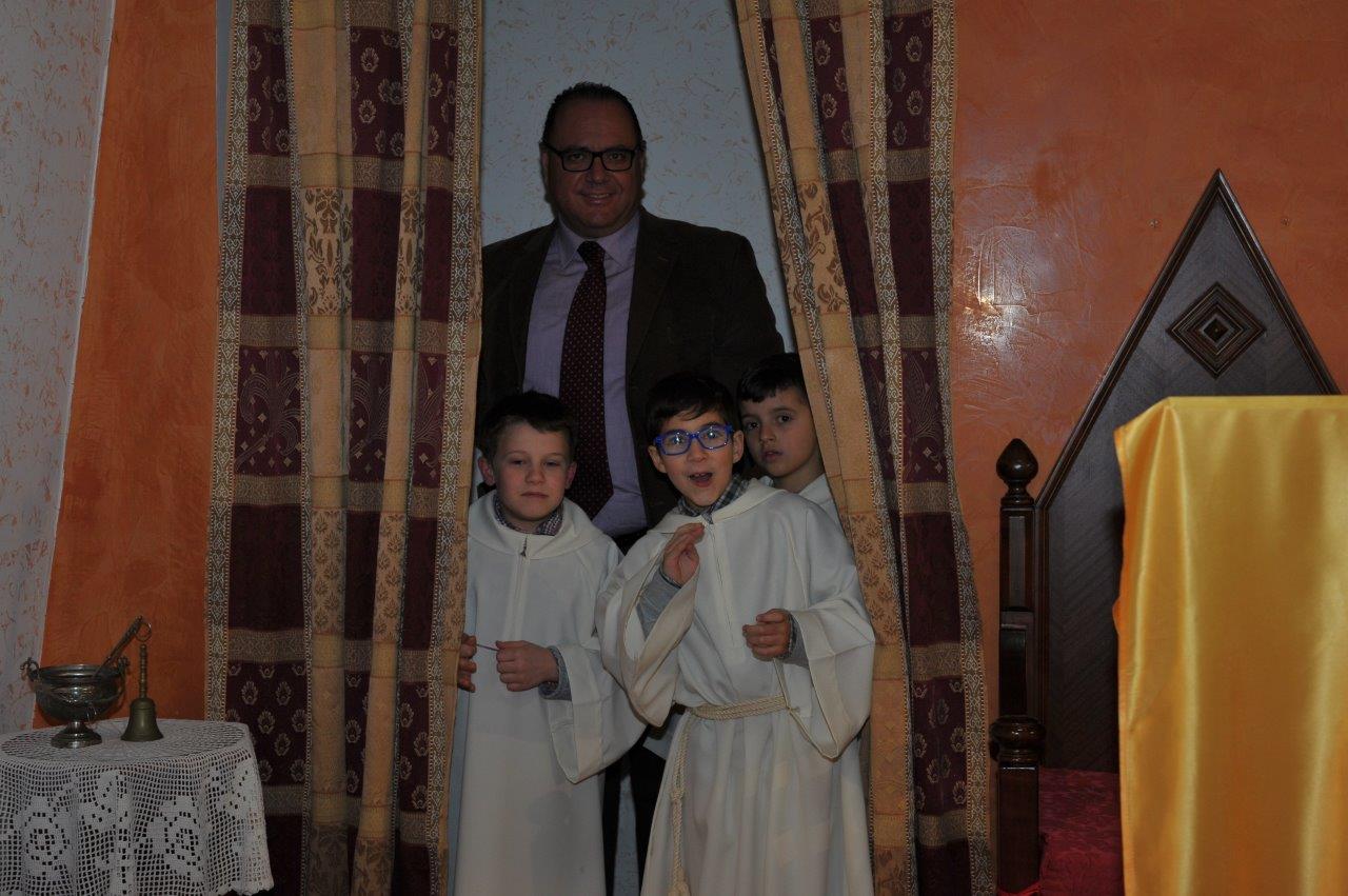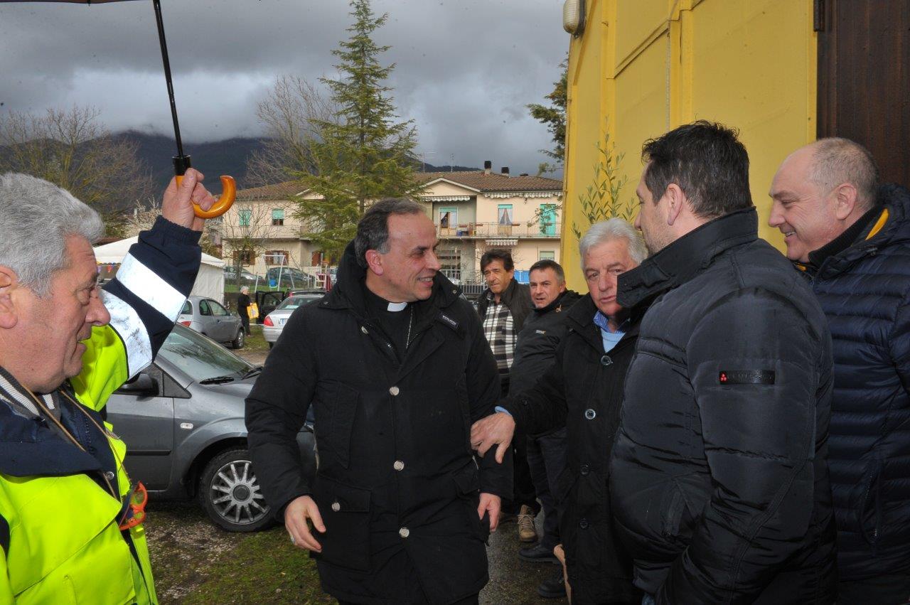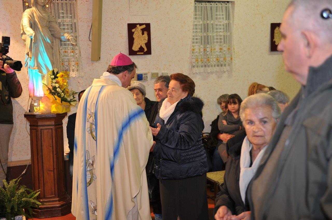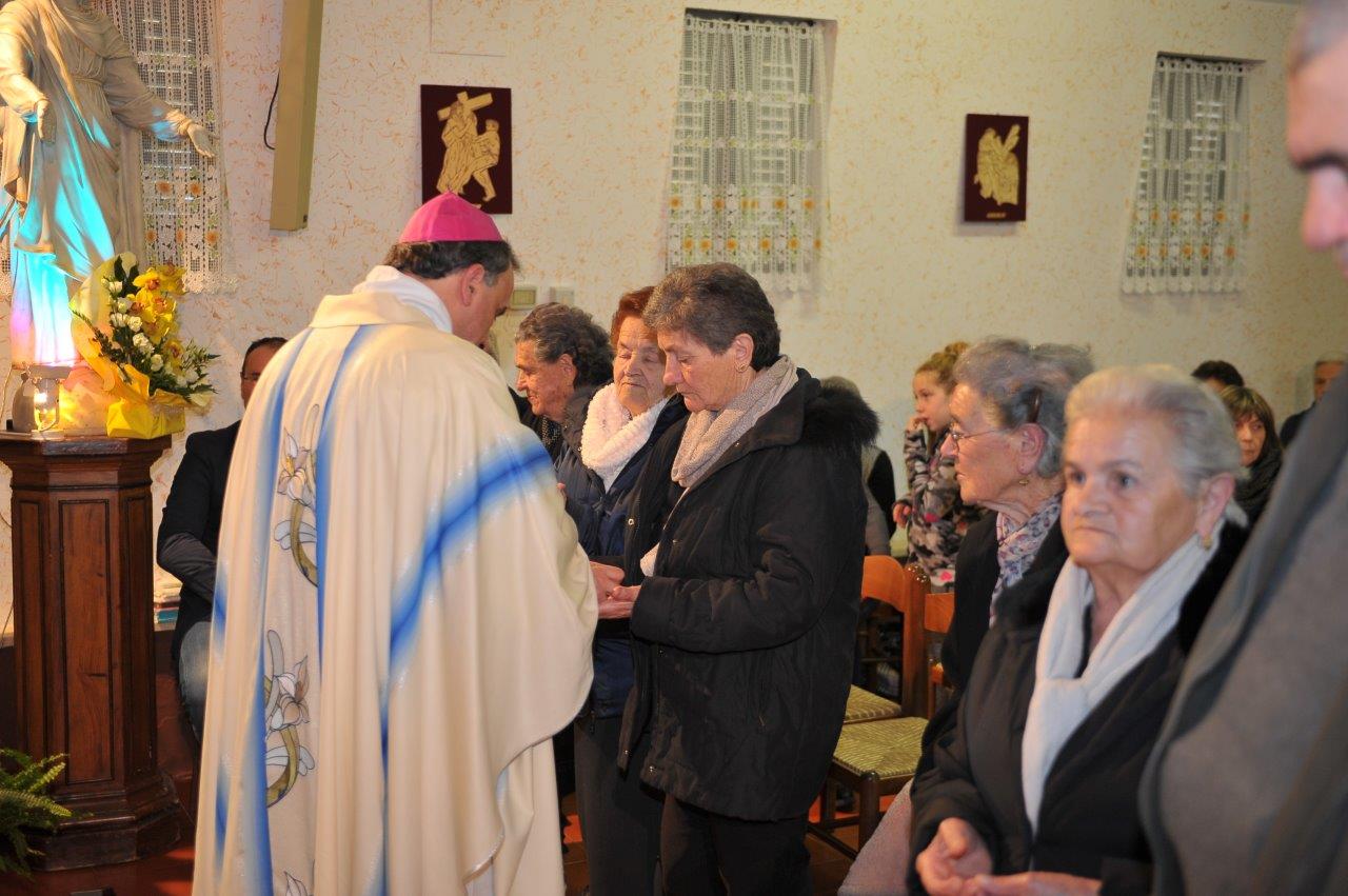 Ha voluto essere segnato anche lui con l’olio degli infermi, visto che il peso degli anni si fa sentire e qualche acciacco non manca: senectus ipsa est morbus, «la vecchiaia è per sé stessa una malattia», dice la celebre sententia dello scrittore latino Terenzio. E don Patacchiola la fatica fisica ora comincia a sentirla e ha voluto anche lui chiedere un po’ di forza divina. Ma quello che ancora ben lo sorregge è l’energia morale e spirituale. Quella che lo ha portato, in gran parte del suo mezzo secolo di ministero presbiterale, a dividersi fra il servizio di parroco, prima a Marcetelli poi nella sua Cantalice, e l’attività di cerimoniere vescovile e direttore dell’Ufficio liturgico diocesano. Ora che in pianta stabile risiede alla Casa Buon Pastore e ricopre l’ufficio di canonico del Duomo, la parrocchia cantaliciana continua, pendolare dalla città, a curarla, anche se don Nicola l’ha “alleggerito” delle pendici del paese. Non è venuto meno, però, in lui che a Cantalice ha recuperato vari spazi che hanno arricchito la storia religiosa della cittadina, il grande legame con questa cappella ai piani dedicata a san Giuseppe, con tanto sacrificio e tanta passione don Gottardo realizzò dal nulla all’interno di un container, creandovi un’aula liturgica più che dignitosa e un punto di ritrovo importante per gli abitanti della zona compresa tra Santa Margherita e la salita che va verso il paese. Legame manifestato con grande benevolenza dai parrocchiani, che al termine della messa hanno rivolto a don Gottardo un saluto affettuoso, scritto in un’apposita pergamena letta dalla rappresentante del Comitato di San Giuseppe e in una bella poesia proposta dai bambini.