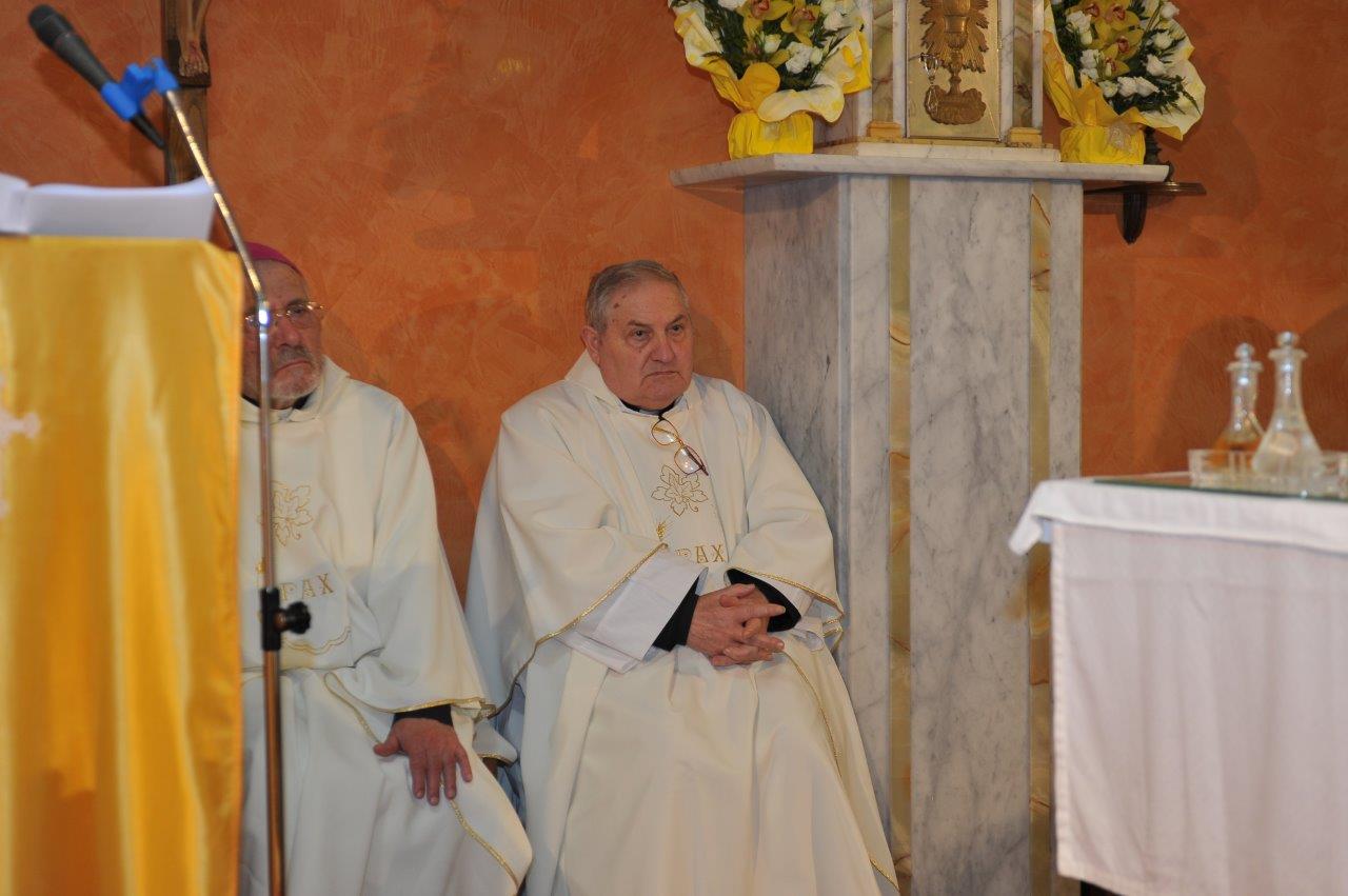 A guidare la comunità dei piani di Cantalice, assieme alla frazione San Liberato (e, nel vicino comune di Rivodutri, Apoleggia) è ora don Nicolae Zamfirache, mentre mons Gottardo Patacchiola “governa” ancora la parte alta della patria di san Felice. E nell’organizzare i festeggiamenti in onore del titolare del luogo di culto non ha mancato di prevedere, nel pomeriggio domenicale che vede tradizionalmente il vescovo raggiungere la cappella del Bivio, un momento per lui. Così, nella celebrazione arricchita dalla presenza delle membra più deboli della comunità, ai quali mons Pompili ha amministrato il sacramento dell’Unzione dei malati, non mancava il festeggiato: quel cantaliciano “doc” – cognome Patacchiola non mente! – che, il 19 di marzo del 1968, nella Cattedrale di Rieti veniva ordinato prete dal vescovo Nicola Cavanna.