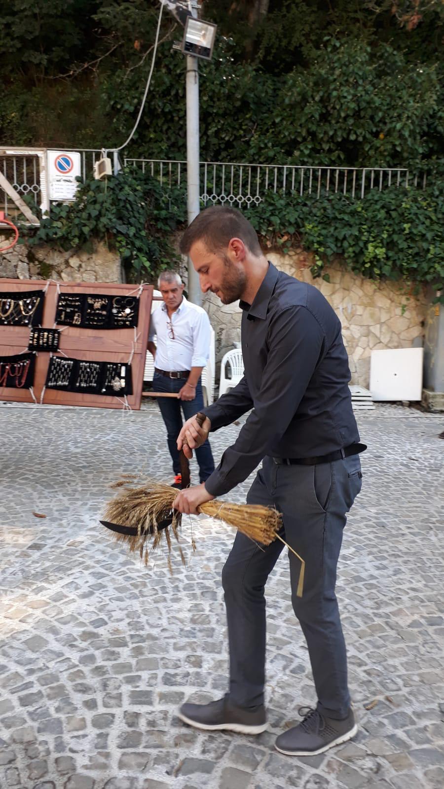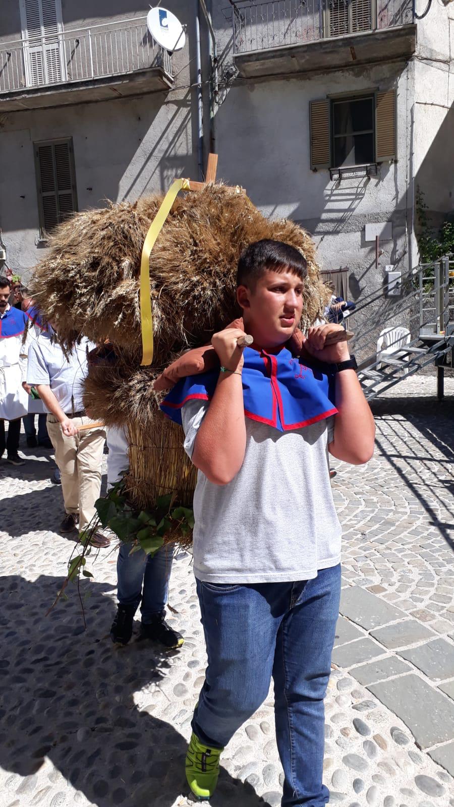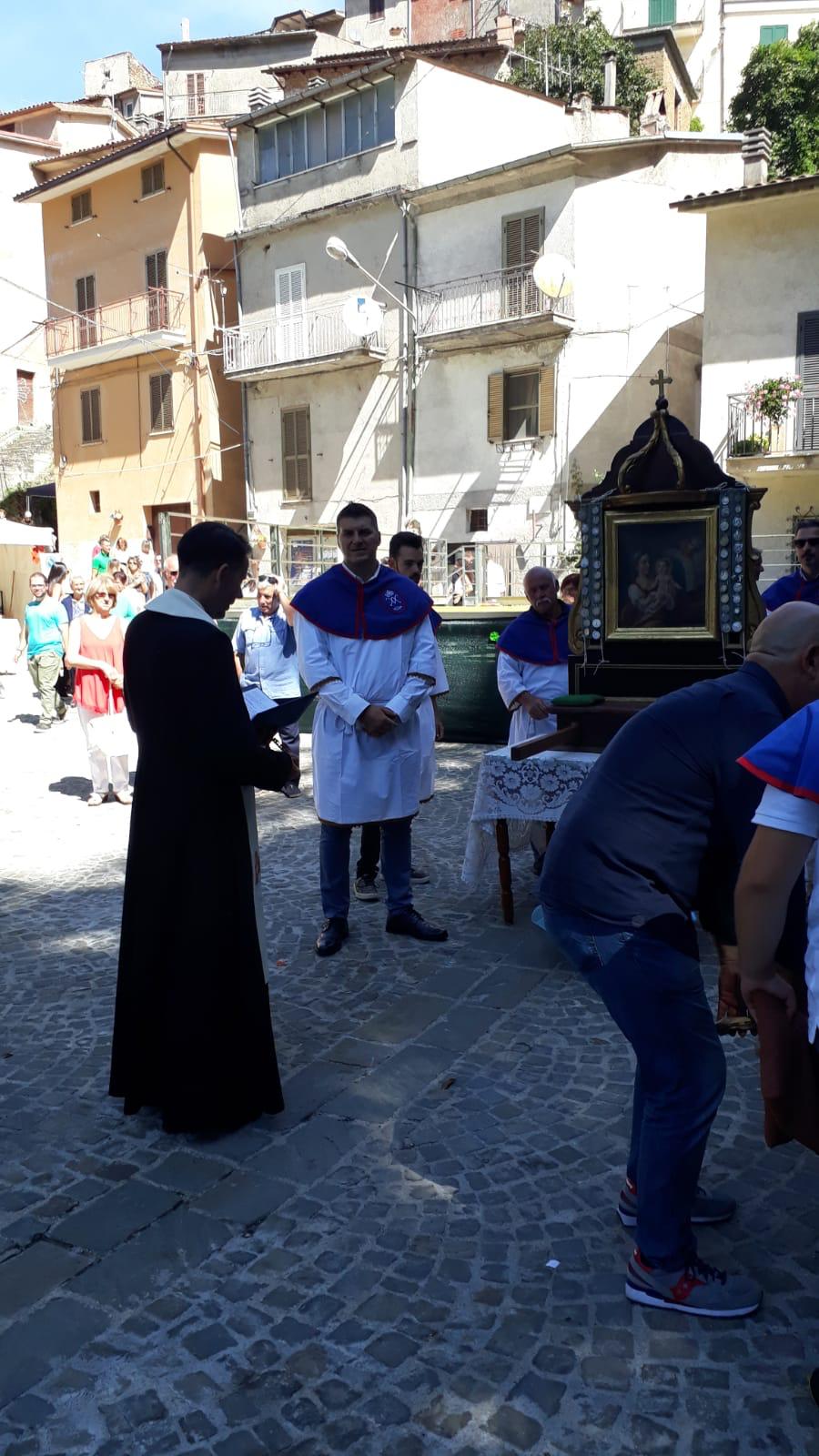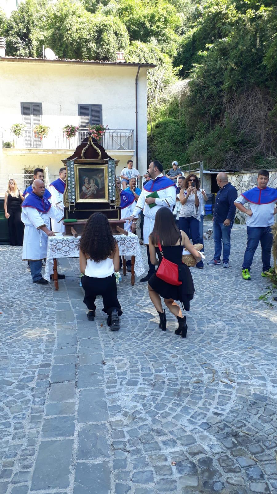 Si organizza da sempre una processione molto partecipata nella quale si rievoca l’accompagnamento della Madonna dal “ Manocchio” che rappresenta il grano che diventa pane offerto.