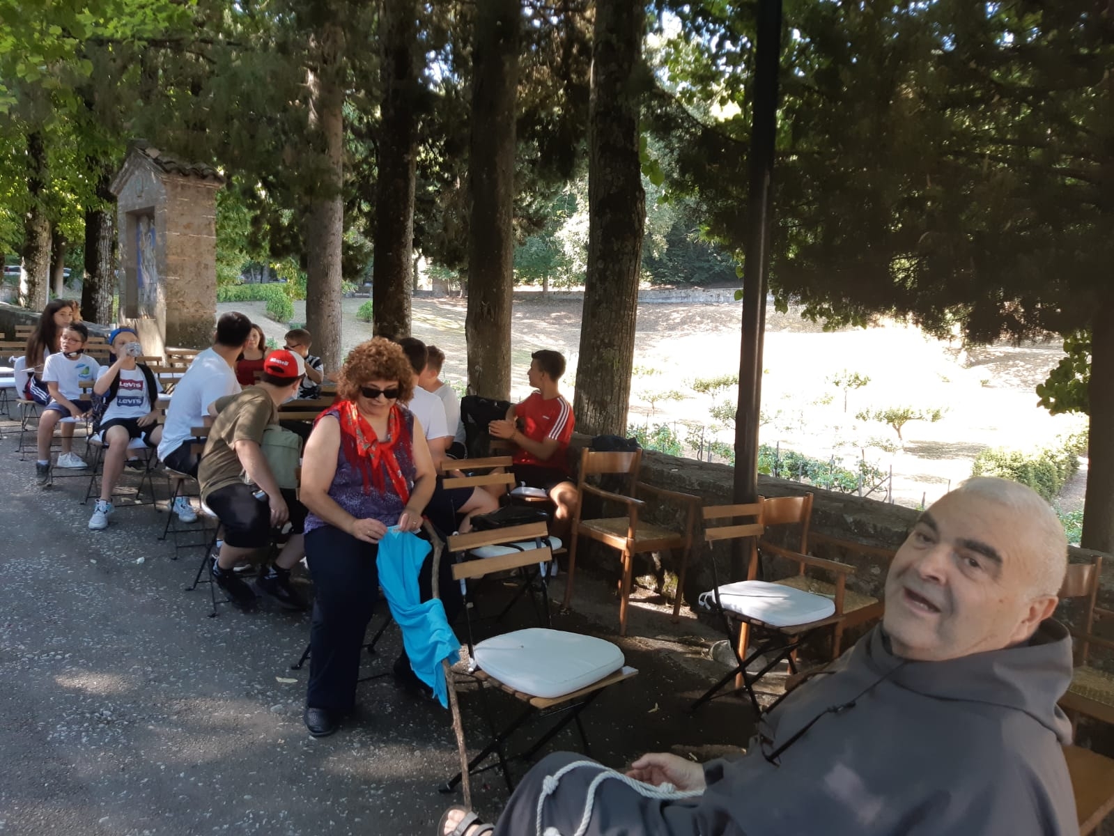 Un gruppo di ragazzi e parrocchiani capitanati dal loro parroco don Francesco Salvi, sono partiti dalla parrocchia e, respirando aria pura e godendo delle bellezze della natura, hanno usato il sentiero che dalla località Acquamartina porta fin il santuario. Ad accogliere il gruppo è stato padre Luigi Faraglia, che ha ha fatto sentire ai ragazzi l’attualità della storia di san Francesco, giovane come loro che scopre Gesù e lo segue. Non è mancato, naturalmente, il racconto della sua presenza a La Foresta, del miracolo dell’uva e l’indicazione della grotta nella quale dormiva, dove entrardo uno alla volta i ragazzi sono rimasti affascinati.