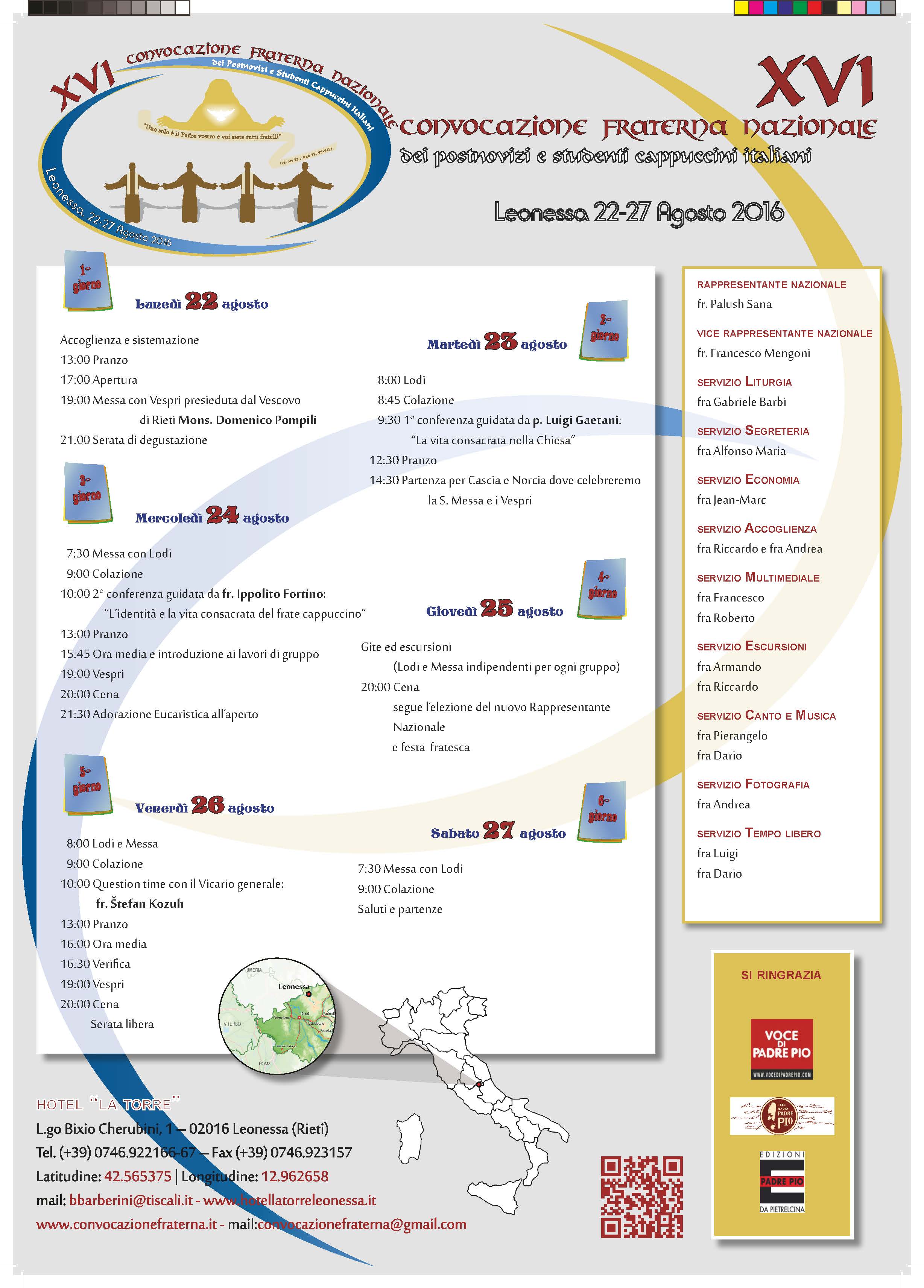Si svolgerà dal 22 al 27 agosto a Leonessa il raduno che i frati Cappuccini svolgono da sedici anni a questa parte a livello nazionale, includendo tutti gli studenti postnovizi e gli studenti teologi, per discutere su alcuni temi caratteristici del carisma francescano-Cappuccino, quali la povertà, il lavoro, la preghiera.