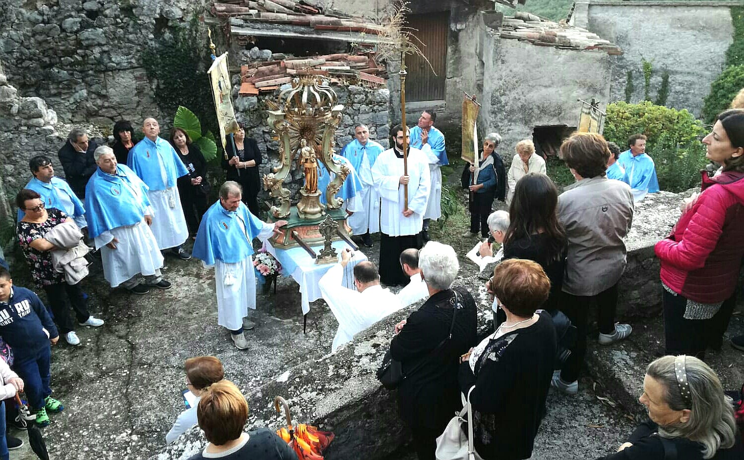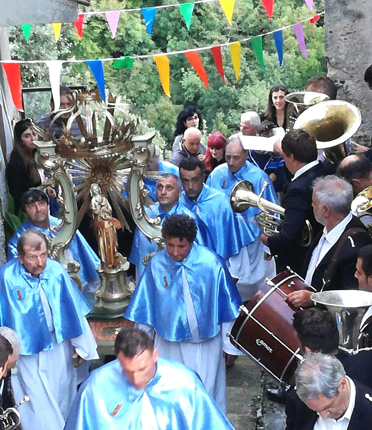 Subito dopo, grazie a una provvidenziale pausa del maltempo, anche quest’anno, come avviene da tempo immemorabile, è stato possibile procedere alla tradizionale processione attorno al paese e per le sue ripide stradine, ricche di memorie storiche e religiose.