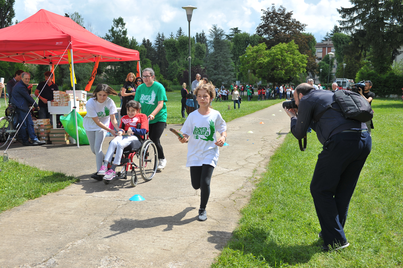 Un parco. I bambini. Un testimone speciale. È stata una mattinata piena di gioia quella trascorsa in nome dello sport e del rispetto dell’ambiente al parco di via Liberato di Benedetto. Dopo aver toccato moltissime città d’Italia, la staffetta di “Libera la Natura” è arrivata anche a Rieti, insieme al suo fondatore don Luigi Ciotti: «tramite le nostre attività sui terreni confiscati alla mafia sono nati rapporti con il Corpo Forestale dello Stato e con il suo gruppo sportivo. Così abbiamo avuto l’idea di unire sport e natura. Promuoviamo una pratica sportiva fatta di semplicità che non esclude nessuno e serve a fare comunità. In questi anni, in Italia, migliaia di ragazzi sono stati resi protagonisti di un momento di sosta e riflessione, ma anche di gioco, sperimentando il bello di stare insieme in un’atmosfera di accoglienza reciproca».