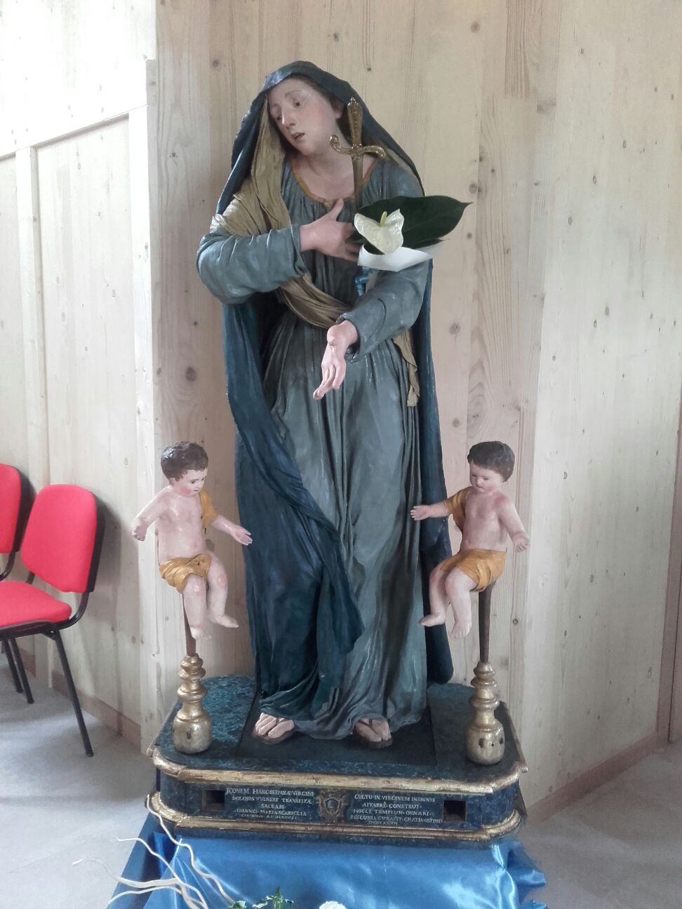 «È tornata lei, ed è già tanto». Non trattengono le lacrime gli accumolesi quando alle 14.38 del pomeriggio di sabato 13 gennaio la statua della Madonna dell’Addolorata è scesa dal furgone della diocesi di Rieti per essere sistemata sul piedistallo della nuova chiesa prefabbricata finanziata dalla Caritas.