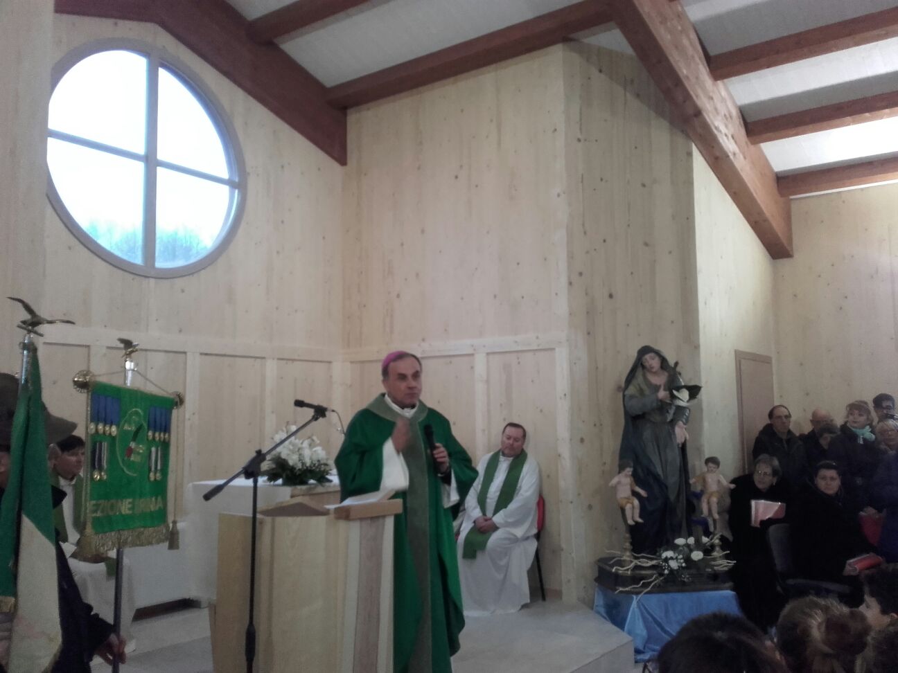 La comunità riparte piano piano, tassello dopo tassello, anche quando si pensava di aver toccato il fondo della disperazione, ed è lo stesso vescovo Domenico a sottolinearlo durante l’omelia: «D’improvviso però, in questa situazione squallida e senza speranza, l’appello di Dio si fa strada. Anche in mezzo alla condizione più negativa c’è sempre una possibilità insperata. Ciò è possibile se ci arrendiamo ad un fatto: non tutto dipende da noi. A noi sta di cogliere le chiamate che la vita ci pone in forme impreviste, distinguendo in esse il senso con un cuore attento, ma soprattutto pronto. Il contrario è ‘vegetare’ e subire tutto, senza farsi interrogare da quello che ci è capitato. Questa struttura prefabbricata è un segno che tutto può venir meno, meno la certezza che siamo chiamati a ricominciare. E si ricomincia a partire da Dio che ci convoca sempre di nuovo».
