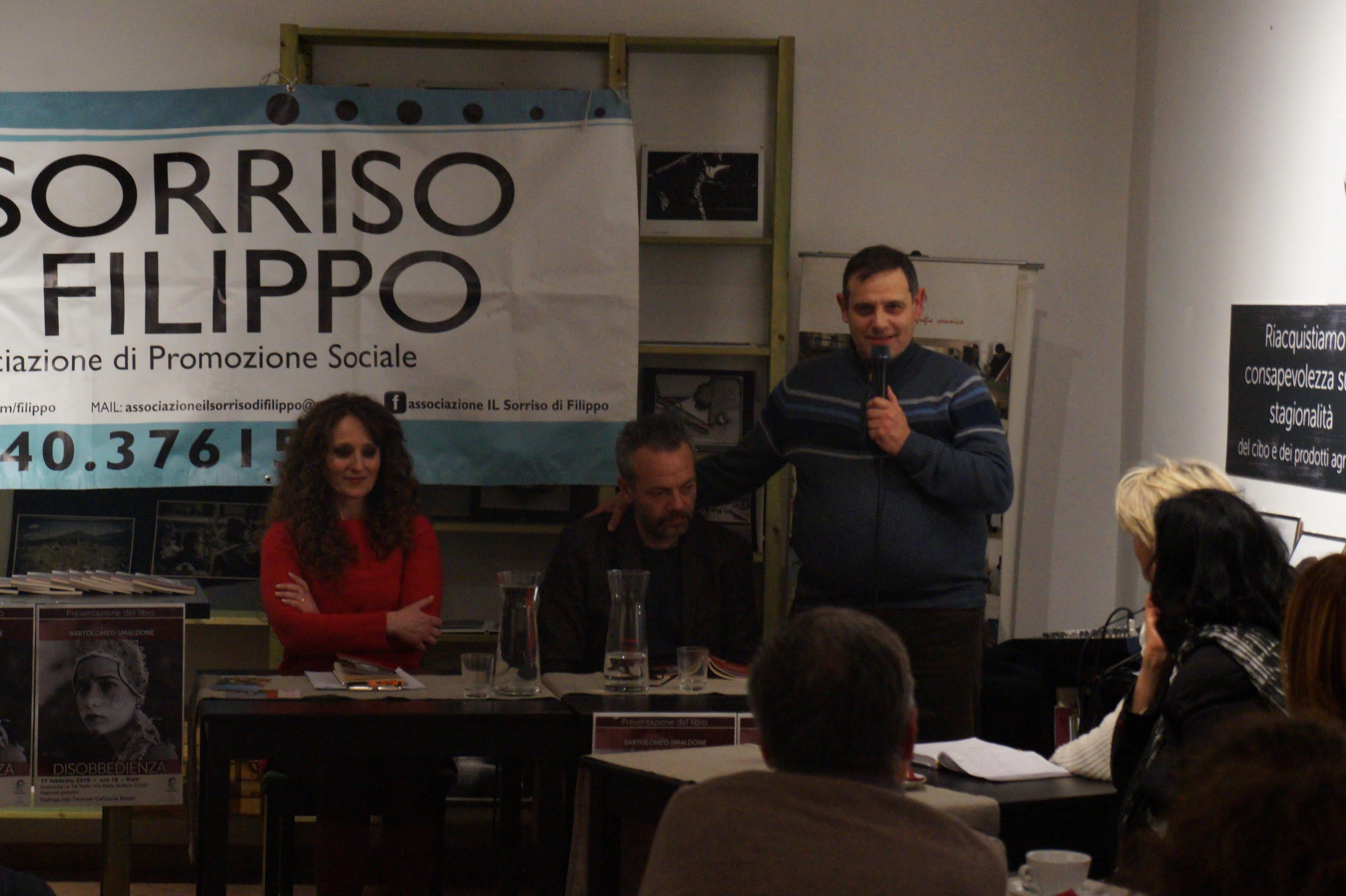 Domenica 17 febbraio, presso il ristorante “Le tre porte”, è stata presentata la raccolta di poesie Disobbedienza di Bartolomeo Smaldone. L’evento è stato promosso dall’Associazione di Promozione Sociale “Il sorriso di Filippo”.