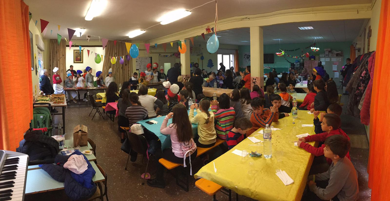 Il pranzo, ancora una volta, ha visto la partecipazione di oltre cento persone tra adulti e bambini, un’occasione concreta in cui i piccoli hanno fatto esperienza vera di cosa stia a significare far parte di una comunità parrocchiale, hanno sperimentato cosa voglia dire mettersi a servizio e collaborare, partendo innanzitutto dagli esempi di collaborazione tra adulti e tra educatori e genitori.