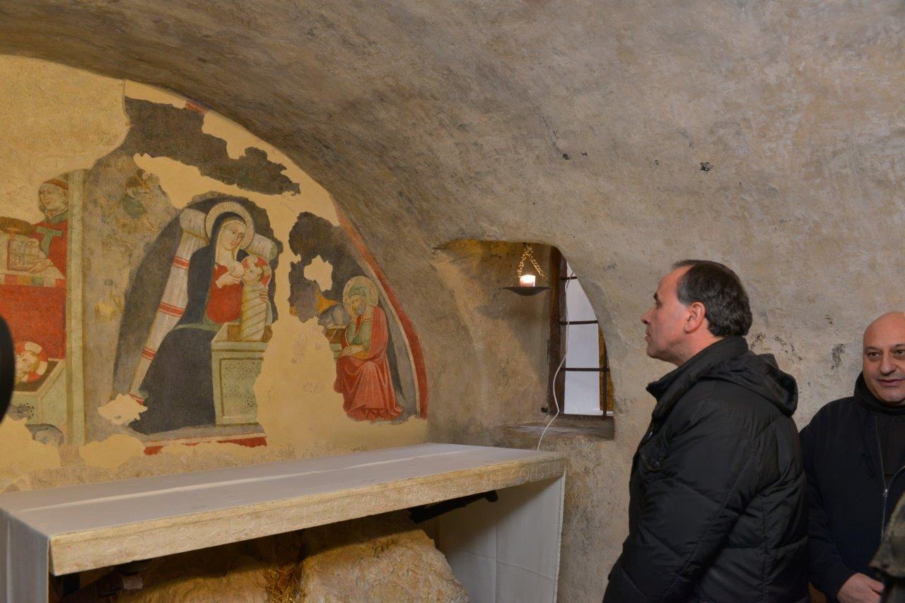A più di 600 anni dalla sua esecuzione ritorna all’antico splendore l’affresco del presepe di Greccio (Rieti) nel Santuario in cui San Francesco, nella notte del Natale del 1223, rappresentò con personaggi viventi la natività. È un piccolo, simbolico contributo che contribuisce a riportare fiducia e normalità nei territori colpiti dal terremoto, per far tornare a vivere le comunità anche nelle loro tradizioni più vive e radicate.