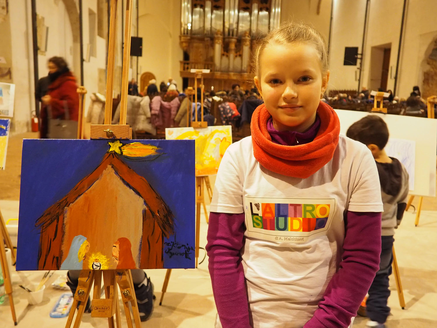 Il secondo premio, un kit per dipingere, è stato assegnato al promettente e dotato giovane studente dell’Artistico Igli Ranxha, il quale avrà l’opportunità di cimentarsi nel prossimo contest dedicato agli artisti Madonnari per il presepe domenica 17 dicembre nella chiesa di San Domenico, sperimentandosi a fianco di artisti madonnari di tutta Italia. Il terzo premio è stato assegnato a Michela Pezzarossa, compagna di classe di Chiara, premiata con un kit di colori a olio.