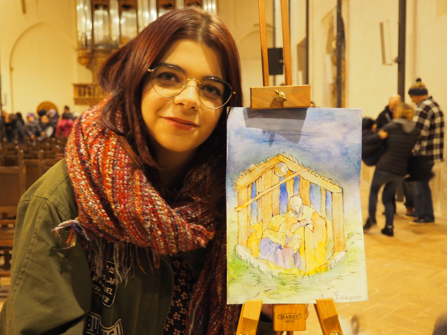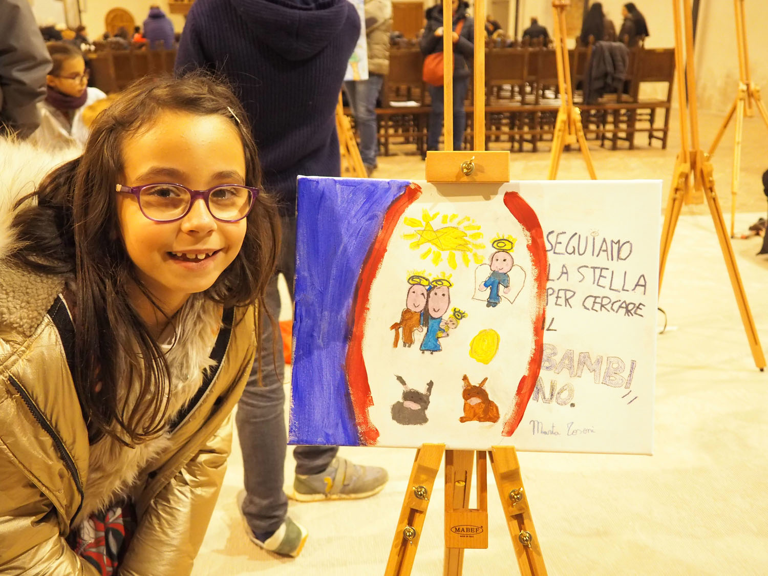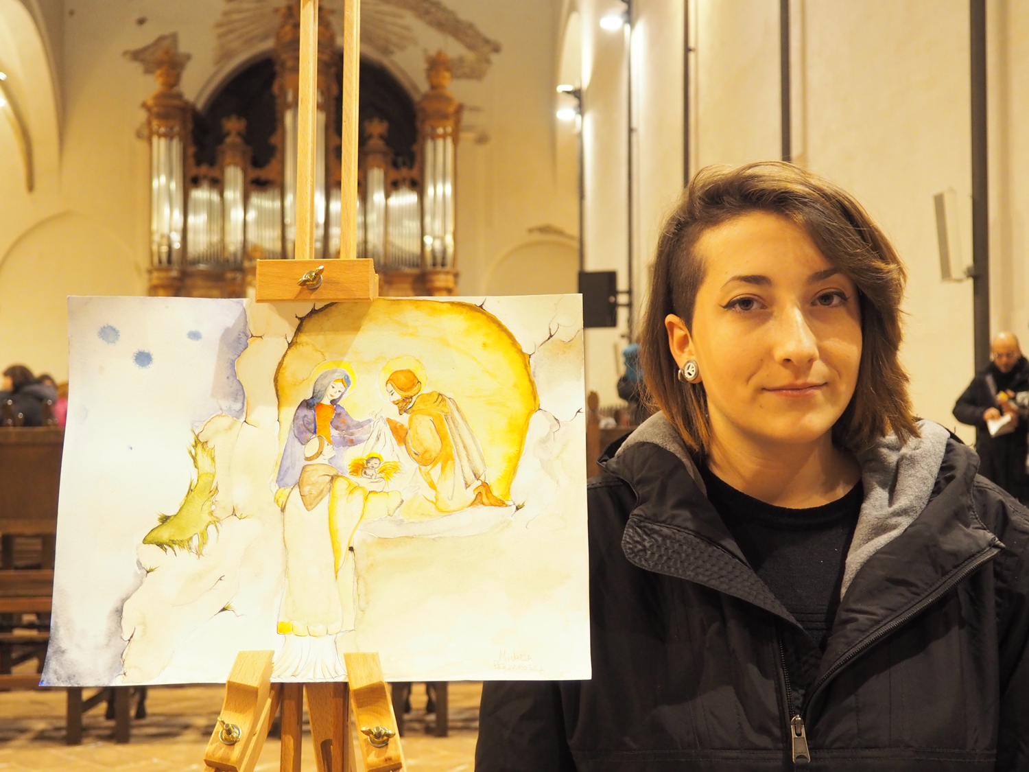 «Ho cercato di restituire il senso della semplicità della nascita, senza elementi decorativi o accessori», ha dichiarato commossa e felice la studentessa. «Il mio acquerello ridotto all’essenziale, alla sola delicatezza e trasparenza dei colori, voleva il più possibile essere semplice, aderente al messaggio assoluto di S. Francesco che a Greccio mise in scena il Primo Presepe della storia. E’ stato un lavoro in levare, piuttosto che in mettere».