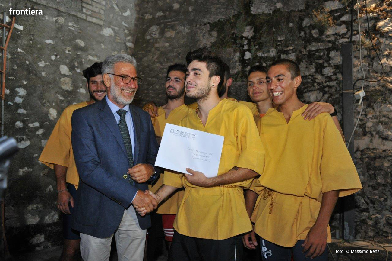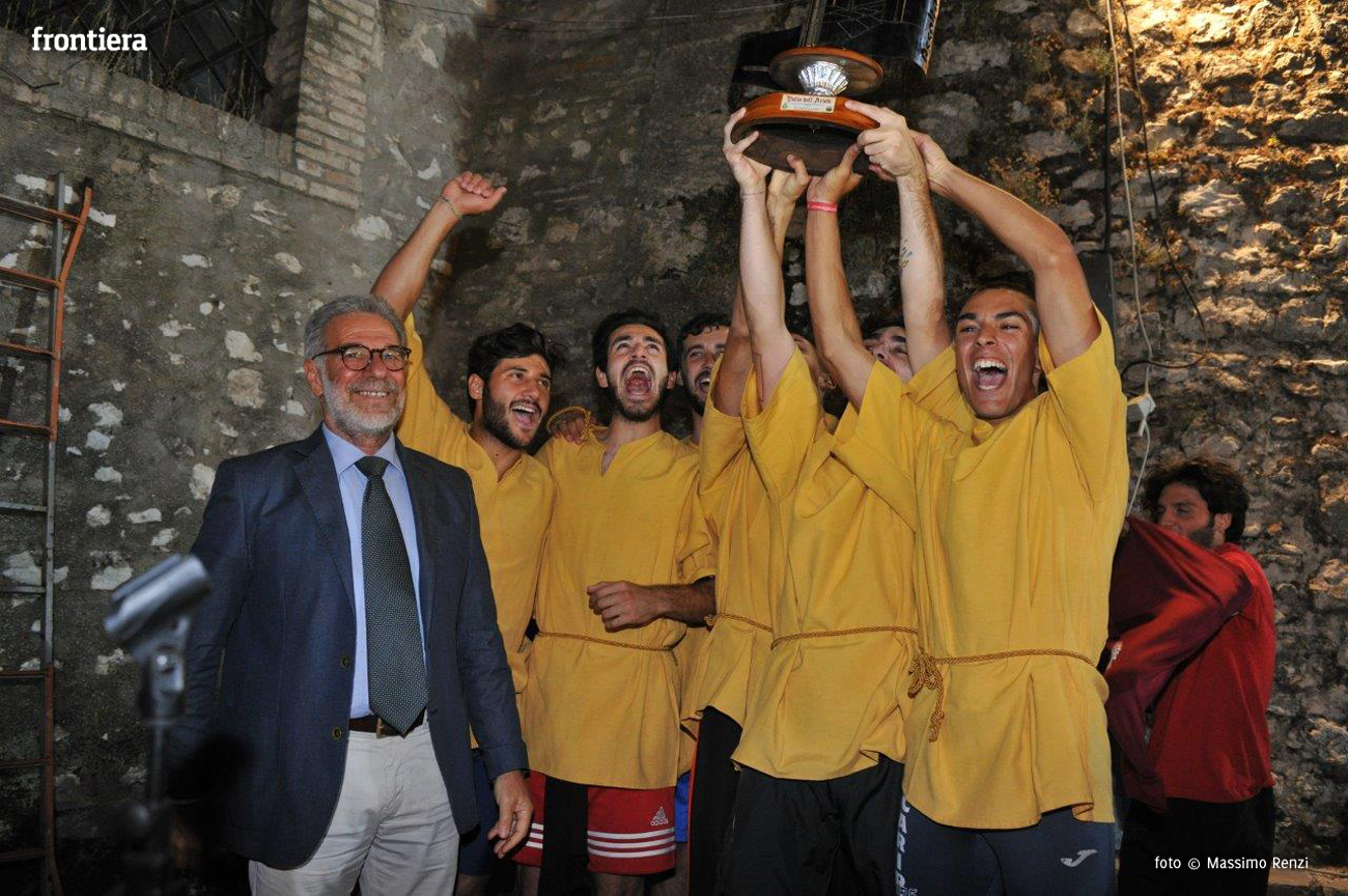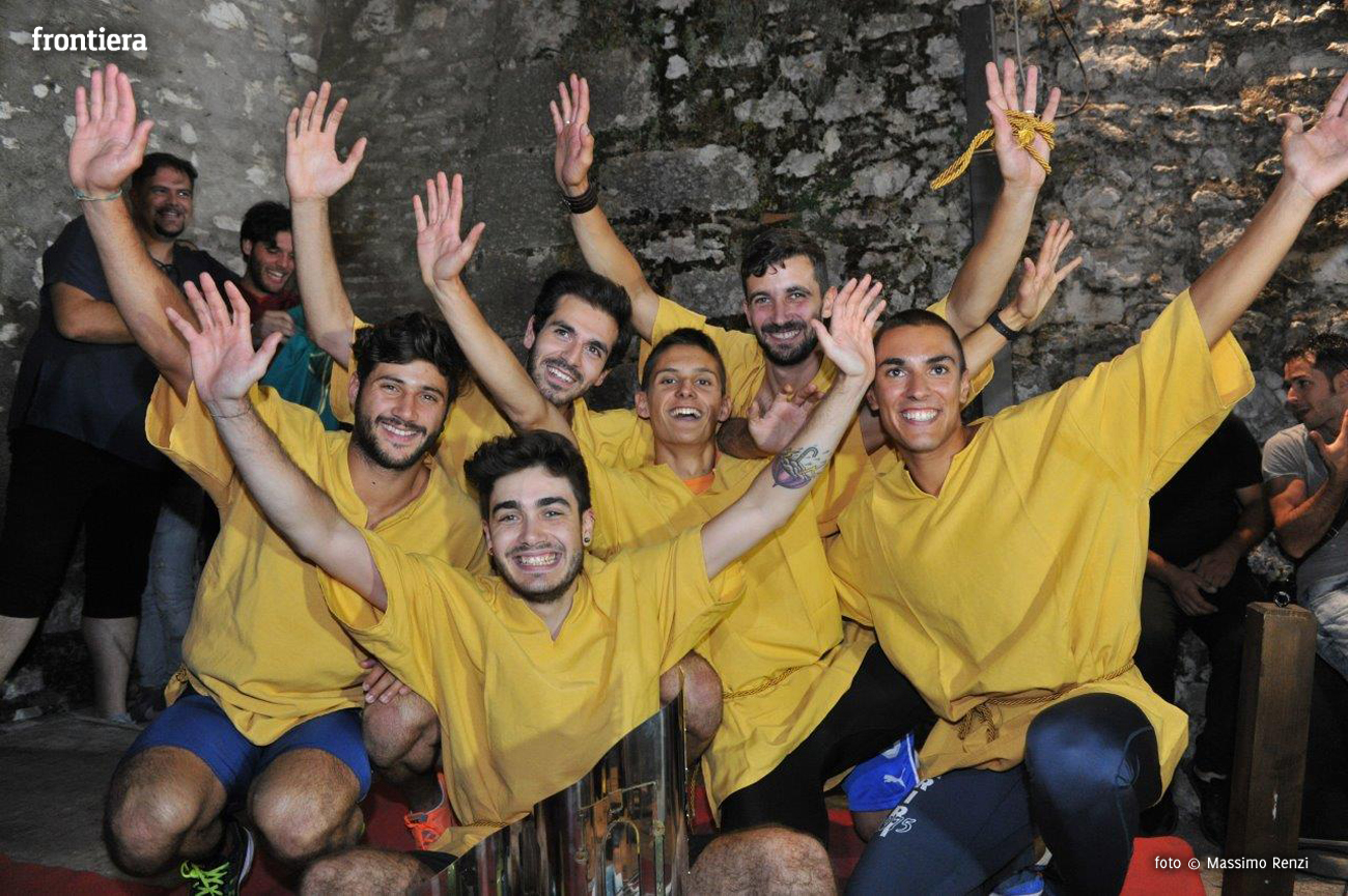È stato il rione Belvece ad aggiudicarsi il Palio dell’Ariete della tradizionale rassegna dell’Assalto al Castello di Contigliano. I ragazzi in maglia gialla hanno affrontato la salita con il tempo di 17”67.