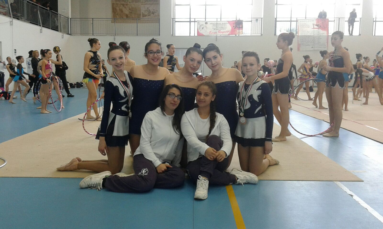 Un altro importante appuntamento si e svolto a Velletri domenica scorsa: il Trofeo regionale di ginnastica ritmica. La coppia allieve 2 fascia Tatiana Pochini e Natalia Marrelli conquistano il terzo gradino del podio con l’esercizio alla fune. La squadra allieve seconda fascia Gaia Papò, Elisa Benedetti e Beatrice Fusacchia nell’esercizio con i cerchi si aggiudicano il nono posto in classifica generale. Tutte brave alla loro prima gara dell’anno.