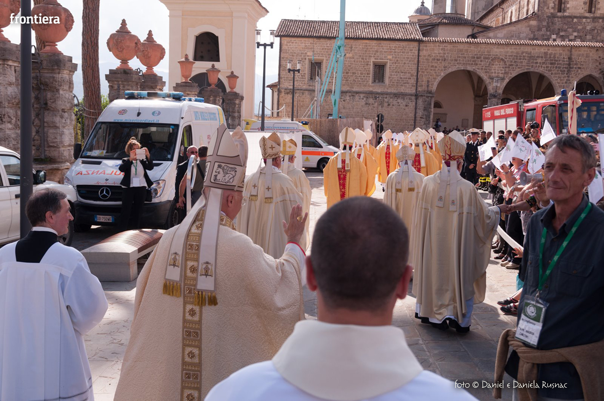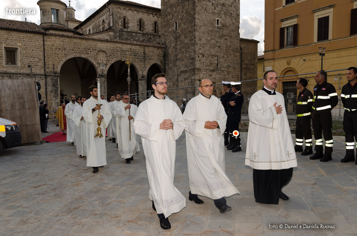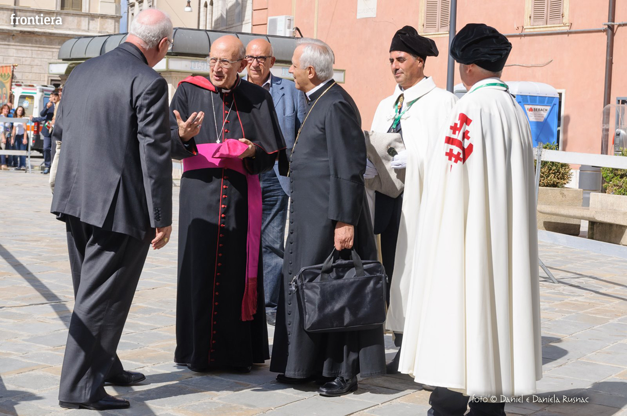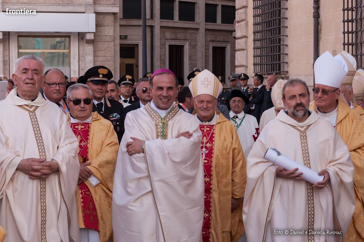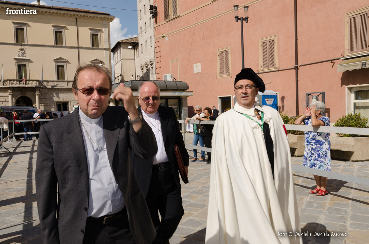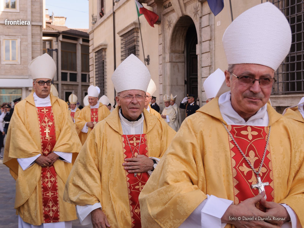 «Riceverai una paternità nuova che ispirerà il tuo modo di pensare e di amare, di guardare il tuo popolo, il tuo clero, la vita», ha aggiunto il cardinal Bagnasco, mentre gli applausi scrocianti salutavano con entusiasmo ed attenzione il neo Pastore, grati al suo predecessore (anche lui, commosso), mons. Delio Lucarelli. In molti sono arrivati dalla diocesi di Anagni-Alatri (Chiesa da cui proviene mons. Pompili, ndr), dalla CEI e dalle zone limitrofe: hanno concelebrato ben quattro cardinali – oltre a Bagnasco, anche il cardinale vicario di Roma, Agostino Vallini, l’arcivescovo di Firenze, Giuseppe Betori, e quello di Perugia-Città della Pieve, Gualtiero Bassetti – numerosi Acivescovi e Vescovi, e un centinaio di sacerdoti.