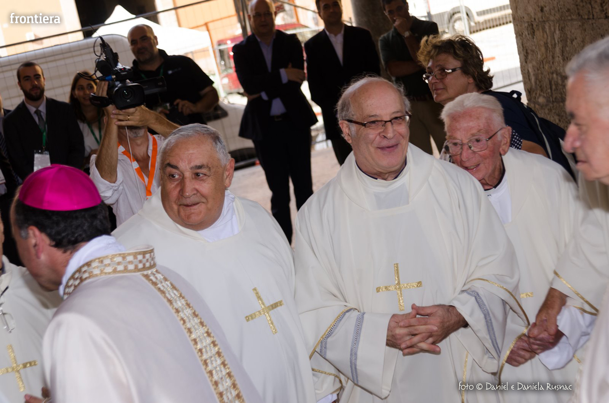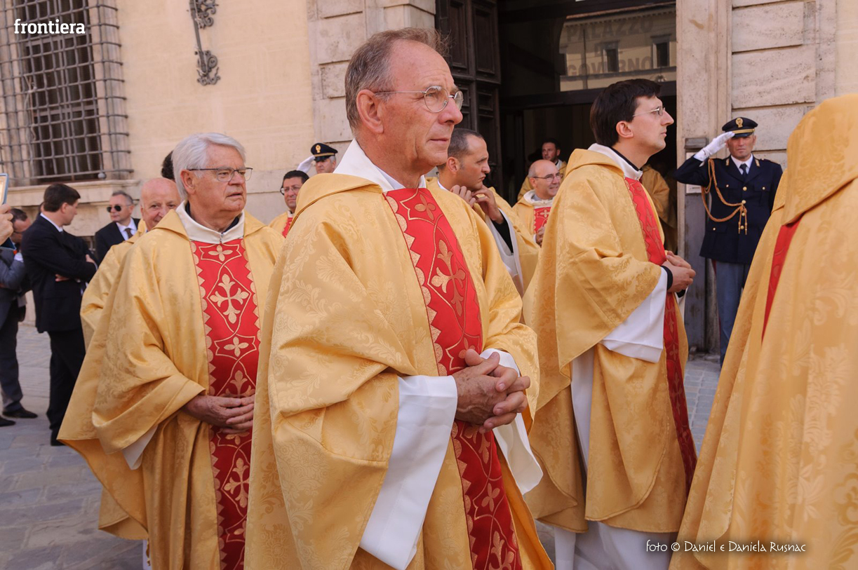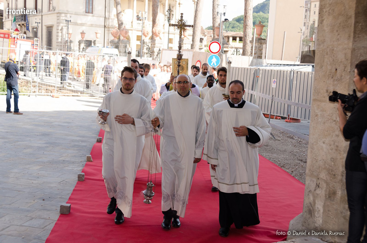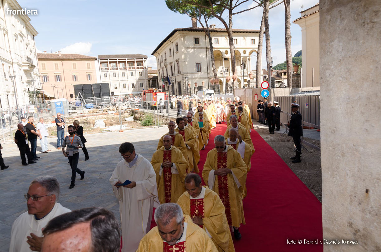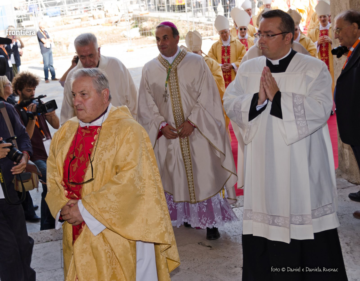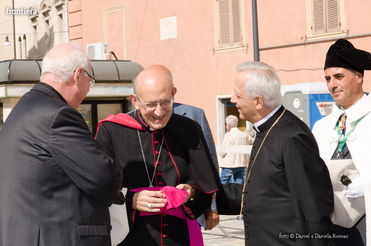 «Riceverai una paternità nuova che ispirerà il tuo modo di pensare e di amare, di guardare il tuo popolo, il tuo clero, la vita», ha aggiunto il cardinal Bagnasco, mentre gli applausi scrocianti salutavano con entusiasmo ed attenzione il neo Pastore, grati al suo predecessore (anche lui, commosso), mons. Delio Lucarelli. In molti sono arrivati dalla diocesi di Anagni-Alatri (Chiesa da cui proviene mons. Pompili, ndr), dalla CEI e dalle zone limitrofe: hanno concelebrato ben quattro cardinali – oltre a Bagnasco, anche il cardinale vicario di Roma, Agostino Vallini, l’arcivescovo di Firenze, Giuseppe Betori, e quello di Perugia-Città della Pieve, Gualtiero Bassetti – numerosi Acivescovi e Vescovi, e un centinaio di sacerdoti.