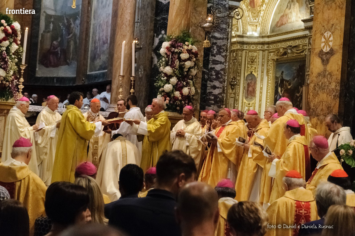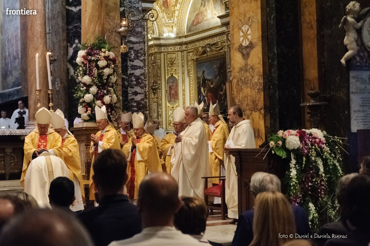 Sono risuonate come parole cariche di affetto e riconoscenza quelle pronunciate dal cardinal Angelo Bagnasco, durante l’omelia, sabato 5 settembre, per l’ordinazione episcopale e l’ingresso nella Diocesi di Rieti di un Vescovo caro nel cuore di molti fedeli e colleghi giornalisti di tutta Italia: monsignor Domenico Pompili. Non è bastata la cattedrale reatina stracolma all’inverosimile – presenti molte autorità locali e nomi di spicco della politica italiana – per contenere la gioia della gente nell’abbracciare il suo nuovo Pastore, «che è stato per non pochi anni intelligente e generoso collaboratore della CEI in qualità di direttore dell’Ufficio Comunicazioni Sociali e di sottosegretario», come sottolineato dal presidente della Conferenza Episcopale Italiana.