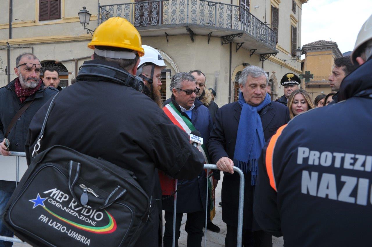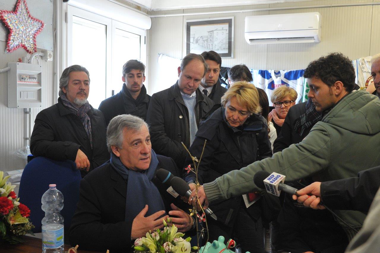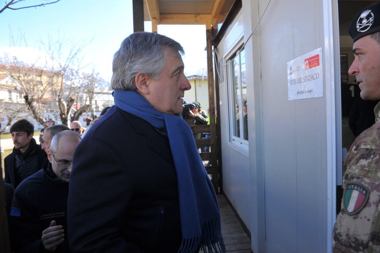 Il presidente del Parlamento europeo, Antonio Tajani, ieri mattina ha fatto visita alle popolazioni del centro Italia colpite dal terremoto. E dopo gli sfollati di Accumoli, in trasferta forzata a San Benedetto del Tronto, si è recato ad Amatrice, senza tralasciare Arquata del Tronto.
