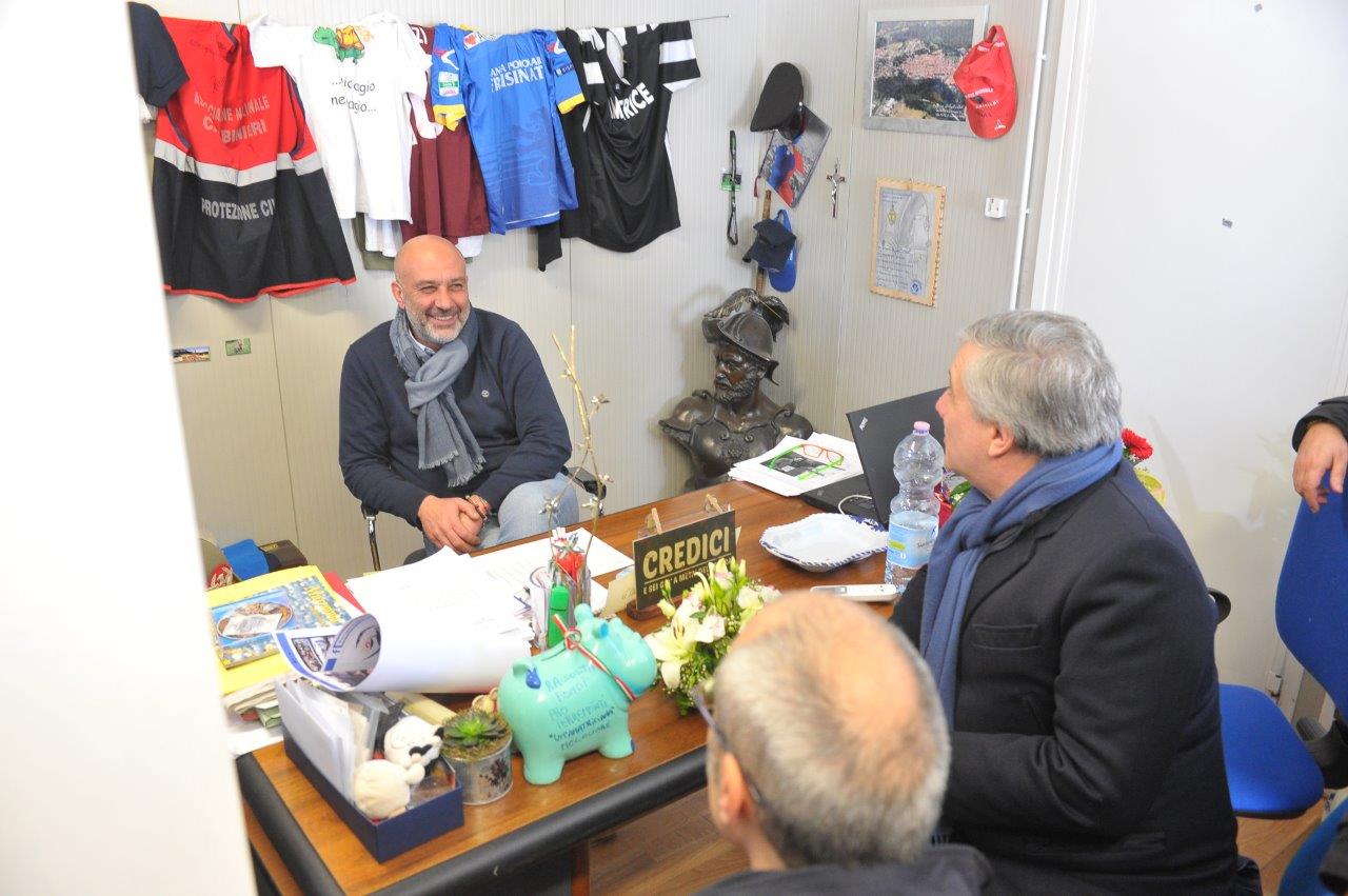 Un dialogo con i sindaci proseguito ad Amatrice con Sergio Pirozzi, a margine del quale Tajani ha detto che bisogna fare di tutto per permettere alle imprese di riattivarsi e di creare occupazione e si è impegnato in prima persona, anche con un appello al Governo, «affinché intervenga in questa direzione, perché tutti i sindaci mi dicono che questo è il problema principale».