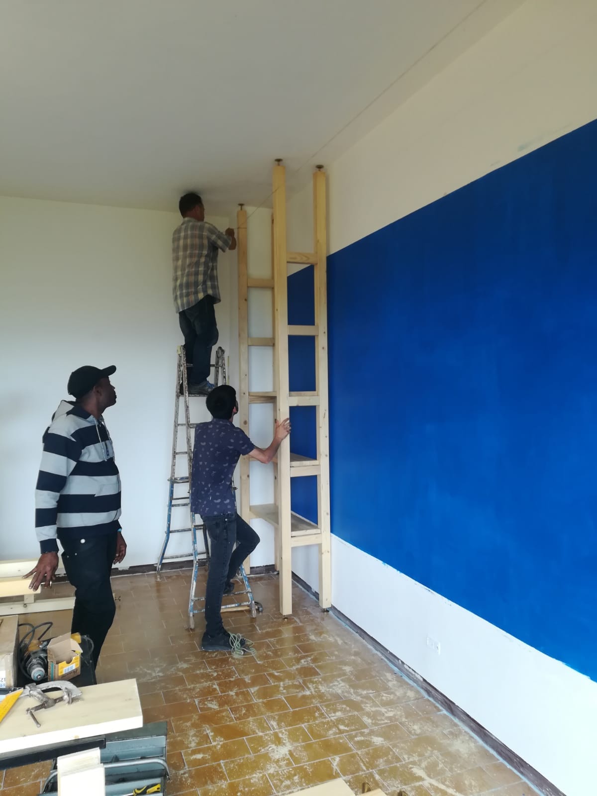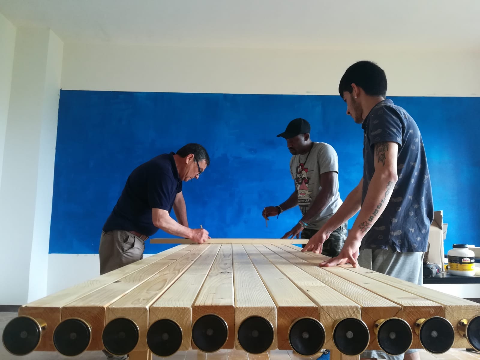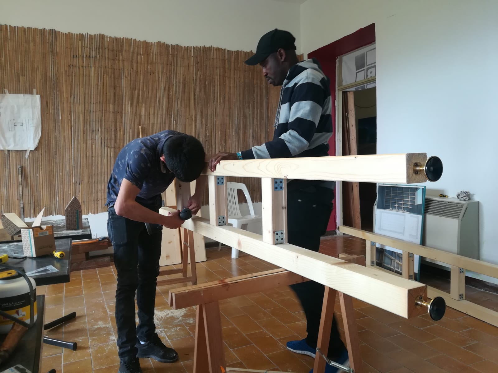 Durante il laboratorio sono state svolte attività sia teoriche che pratiche, sulle basi di falegnameria grazie ai quali hanno appreso le tecniche principali di lavorazione e riciclaggio del legno. Si è provveduto alla catalogazione, all’archiviazione e alla gestione della biblioteca. Le lezioni sono state integrate da visite guidate nel territorio e dall’interazione con la comunità locale, che è stata coinvolta con incontri e con il reperimento del materiale librario e audiovisivo.
