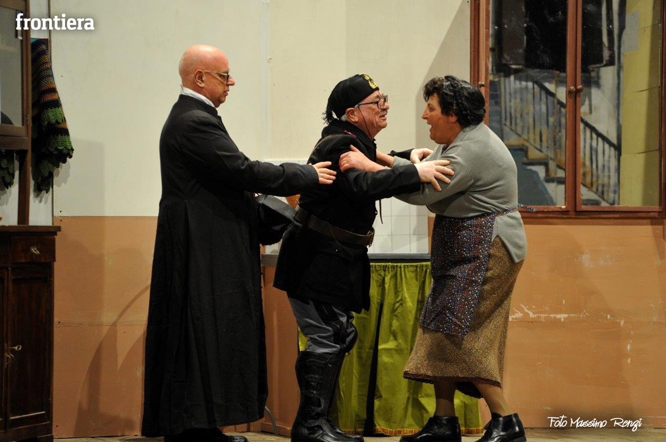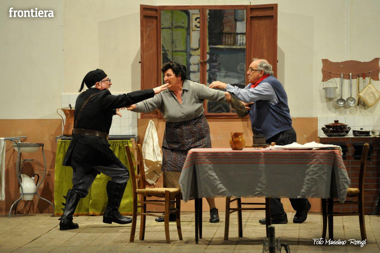 Lo scorso fine settimana, il gruppo teatrale “Gli Amici Cantaliciani” ha messo in scena al Teatro Flavio Vespasiano la commedia “Chi piagne e chi rie”, scritta e diretta da Aldo Patacchiola. Con i suoi tre atti, il lavoro in vernacolo, è ambientato nel periodo della seconda guerra mondiale, del quale sottolinea gli aspetti drammatici, tanto di chi è al fronte, quanto per chi è a casa. Al centro la vicenda di Lisetta, una mamma costretta con la sua bambina ad affrontare una vita di miseria e stenti dopo la chiamata alle armi per suo marito Antonio. Una storia che fa riflettere con il sorriso sul dramma della guerra.