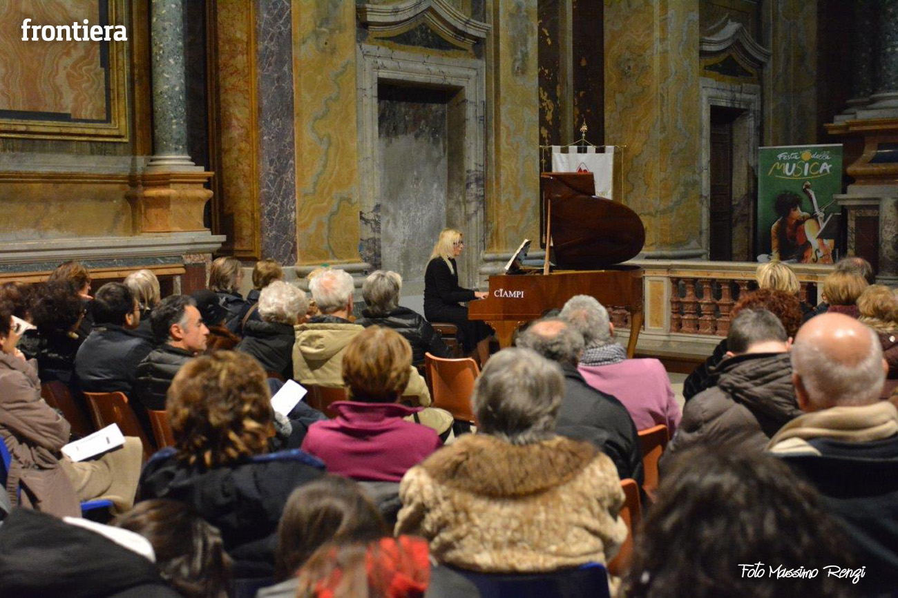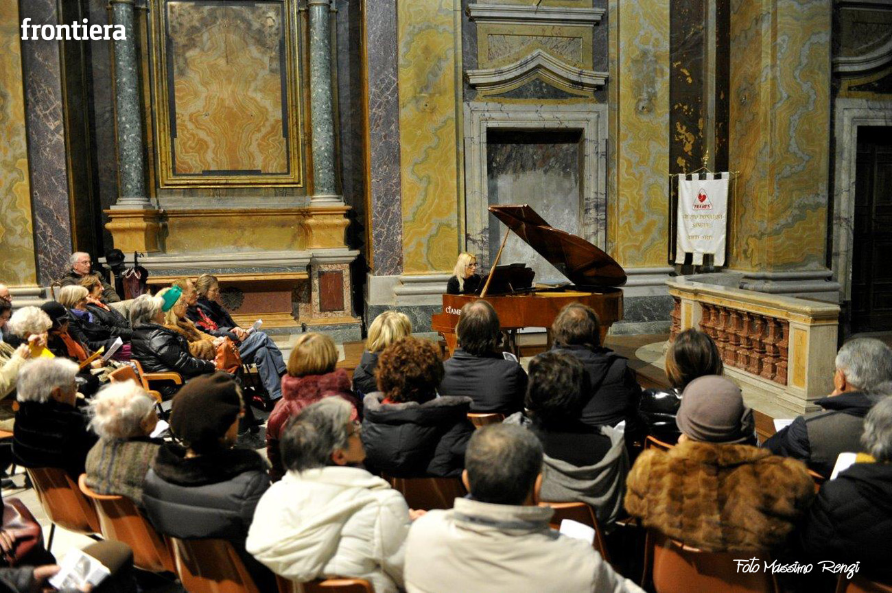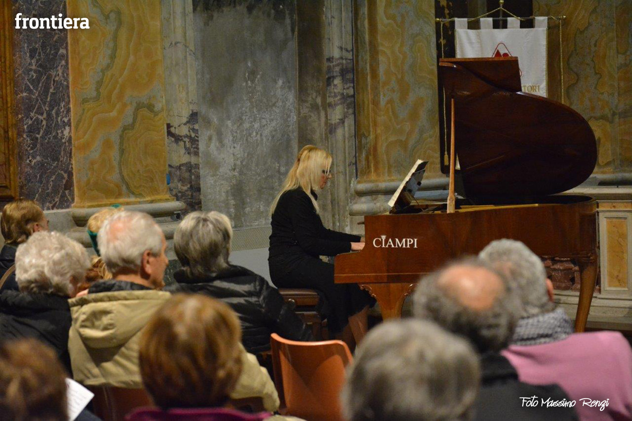 Sul “codino” messo permanentemente a disposizione della sala dalla Confraternita di Misericordia e dall’Associazione di promozione sociale Musikologiamo, la concertista e docente presso il Conservatorio di Perugia ha proposto una scelta ragionata di Preludi, Notturni, Valzer e Studi di Fryderyk Chopin. L’evento è stato organizzato dall’Università della Terza età “Unitre” e compreso nel ciclo di iniziative “Passaggio attraverso la Passione” proposto dalla Confraternita di Misericordia e dal Gruppo di Donatori di Sangue Fratres di Rieti.